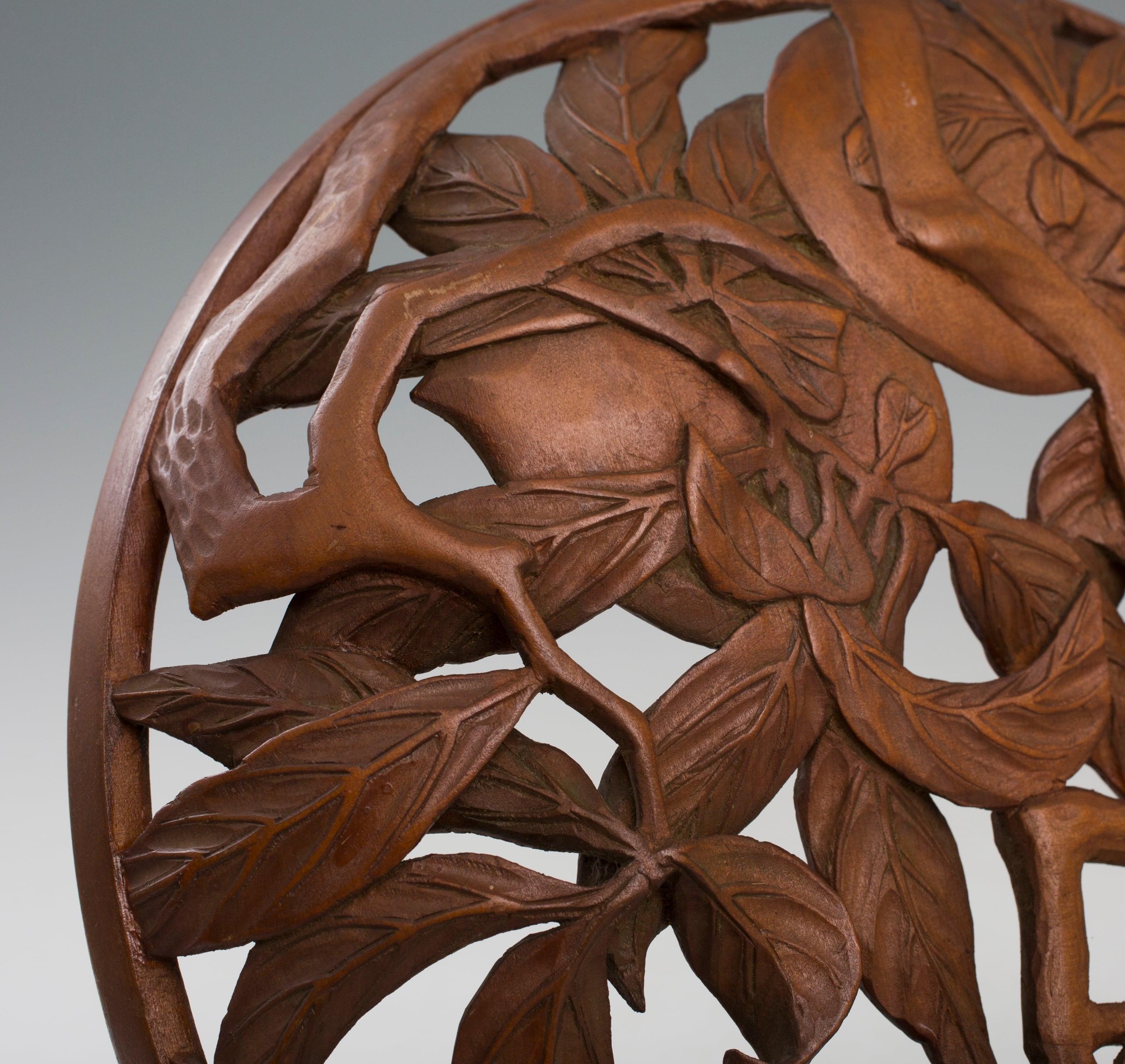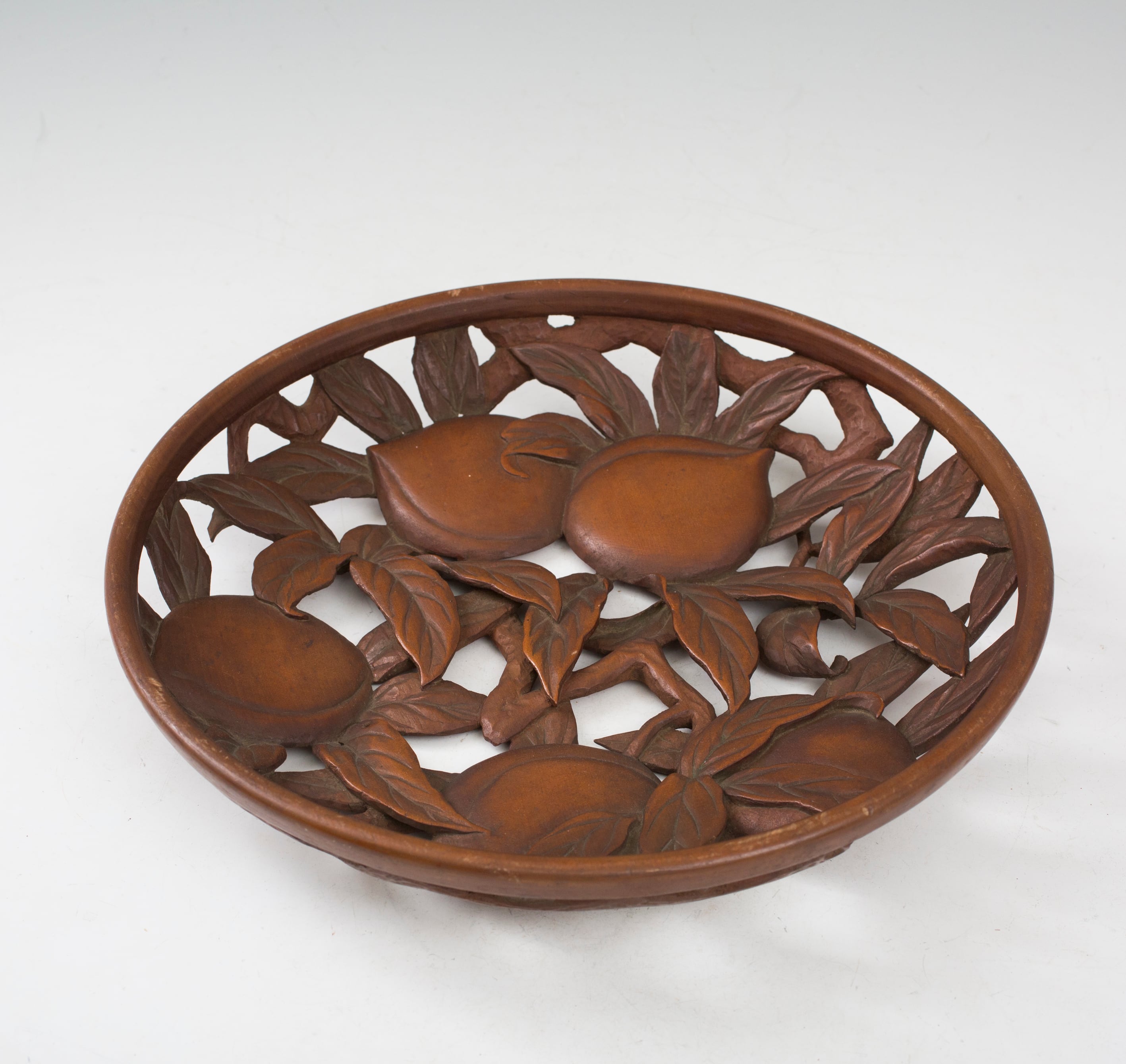 桃 木彫 透かし彫り 飾り皿 インテリア 置物 オブジェ 床の間飾り 喜久子 在銘 銘有 木工芸 日本美術 茶会 室礼 吉祥文様 ハレの調度品として【BC65】