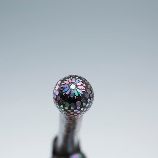 【スタッフから一言】筆は付属していません。箱に「青貝矢立」の表書・「南京青貝矢立」の貼り紙あり。経年による剥落が少しありますが角度によって青貝がキラキラと輝いて綺麗です。江戸~明治頃。