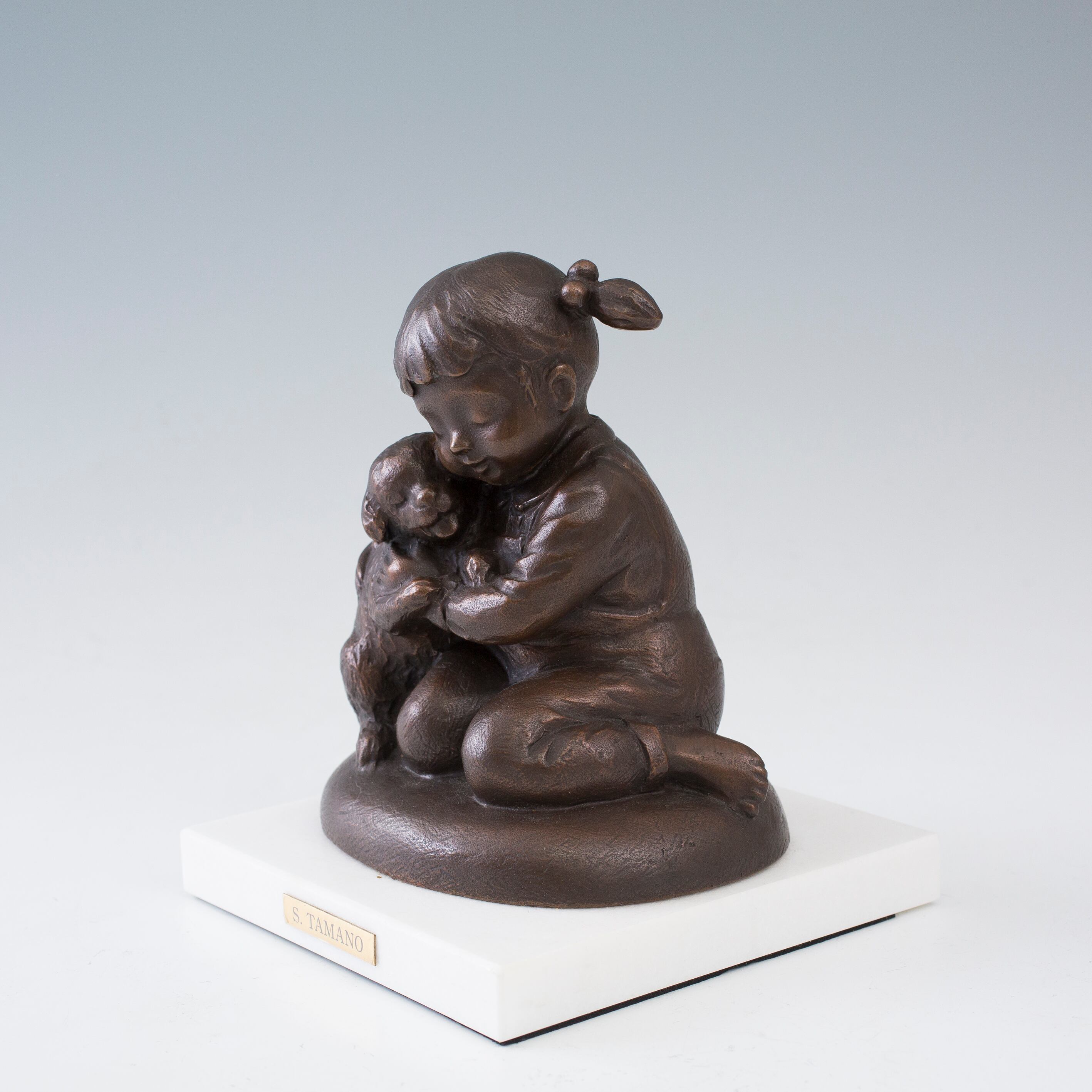 玉野勢三 ブロンズ 置物 なかよし 置物 オブジェ インテリア 銅製 犬と子ども 金属工芸 日本の作家 日本美術 アート【BE501】