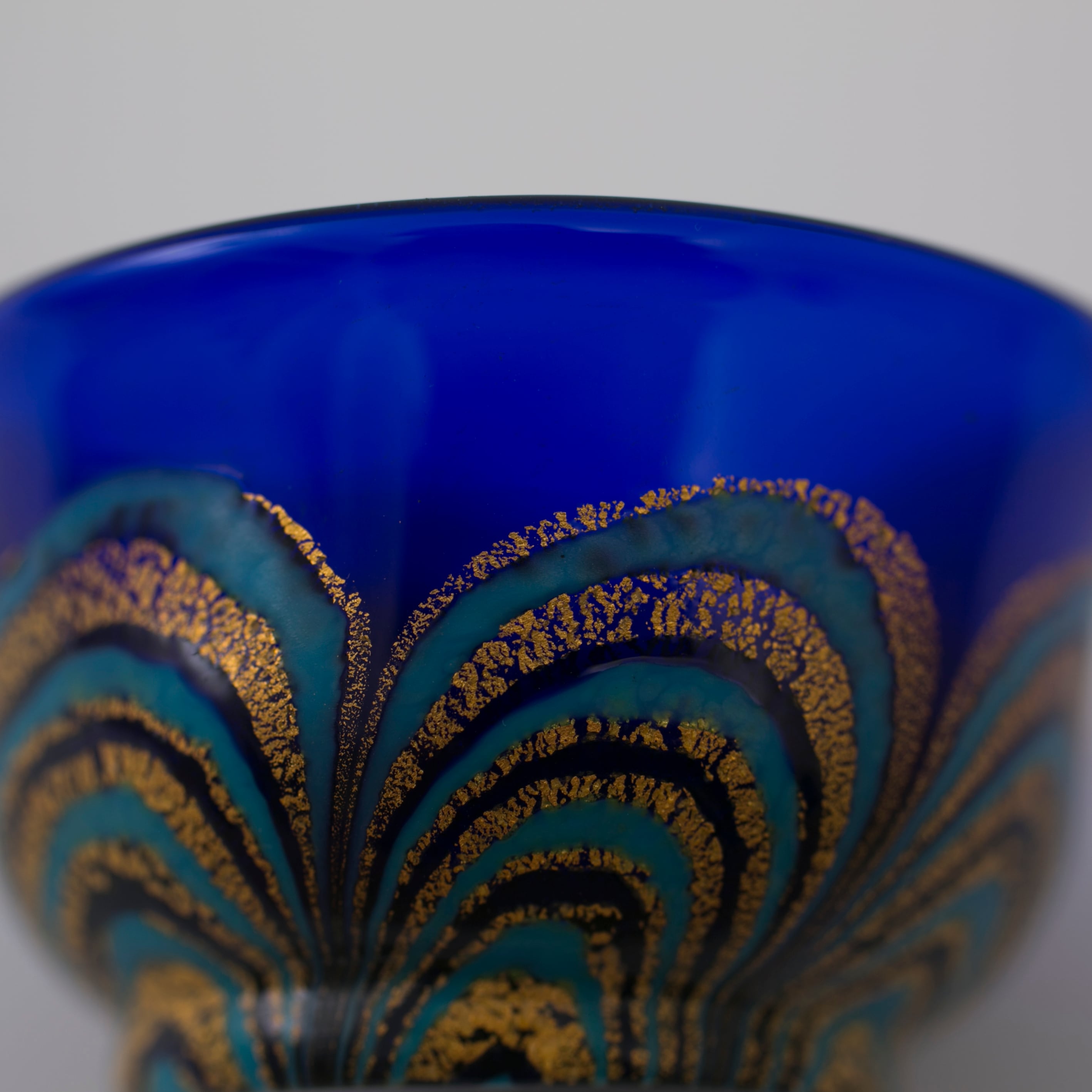 岩田久利 金彩 マーブル 青 紺 水色 硝子 ガラス 盃 猪口 酒器 ぐい呑み おちょこ 共箱 作家物 ガラス作家 検/ 岩田藤七 岩田硝子 岩田ガラス【BB152】 | 3hige antique store | 京都・古門前の古美術店 | 三髭堂