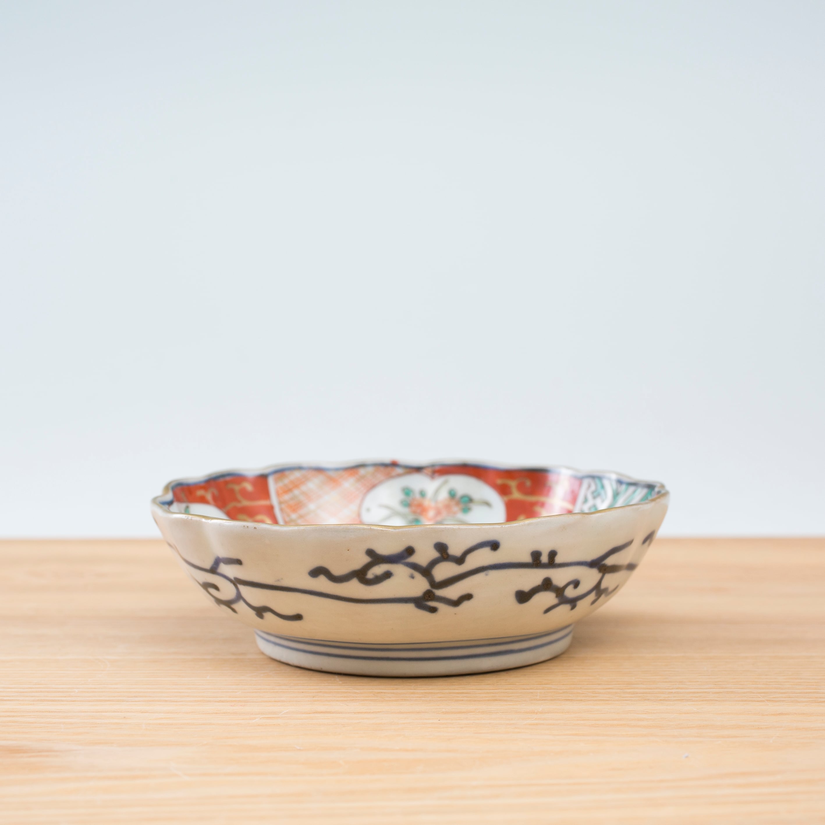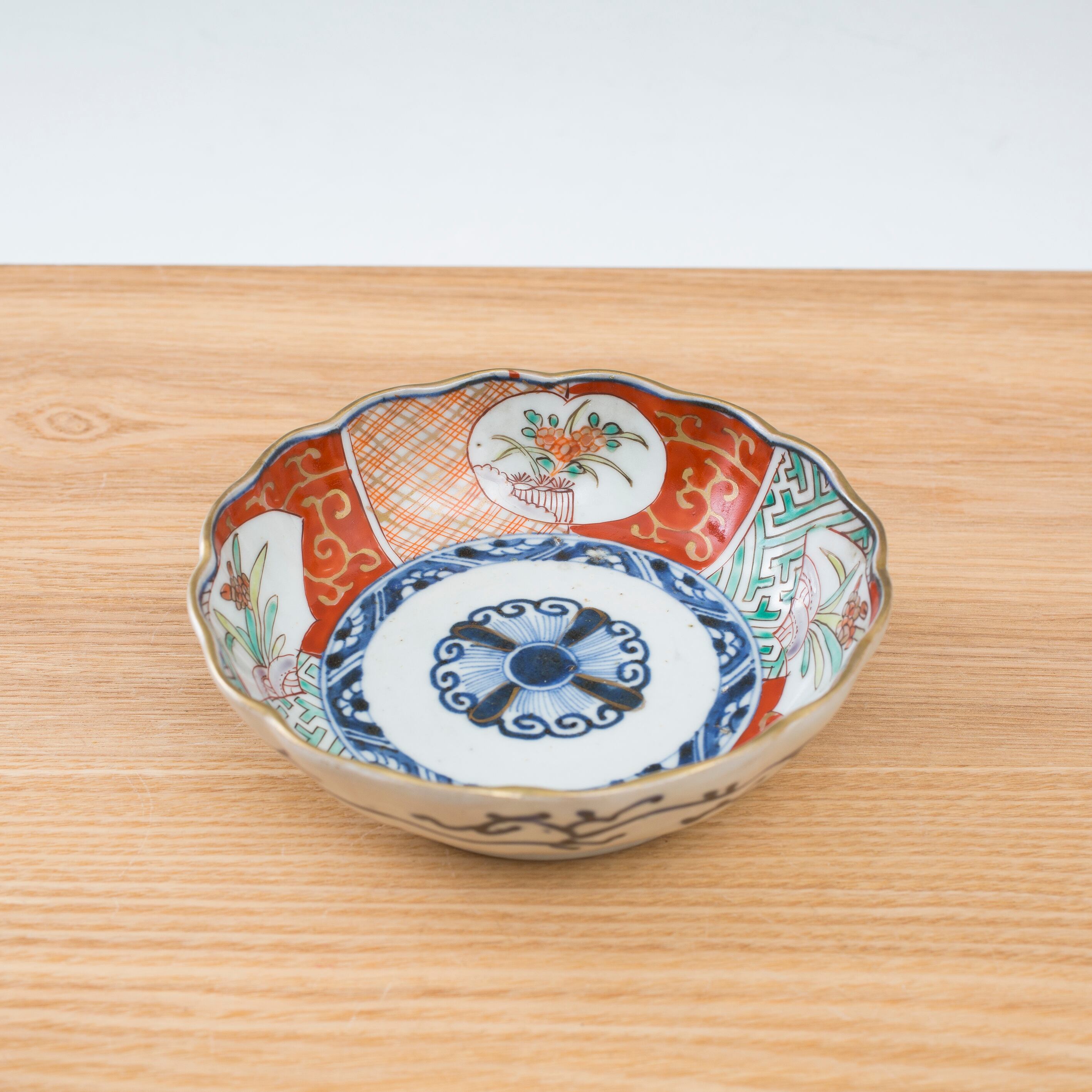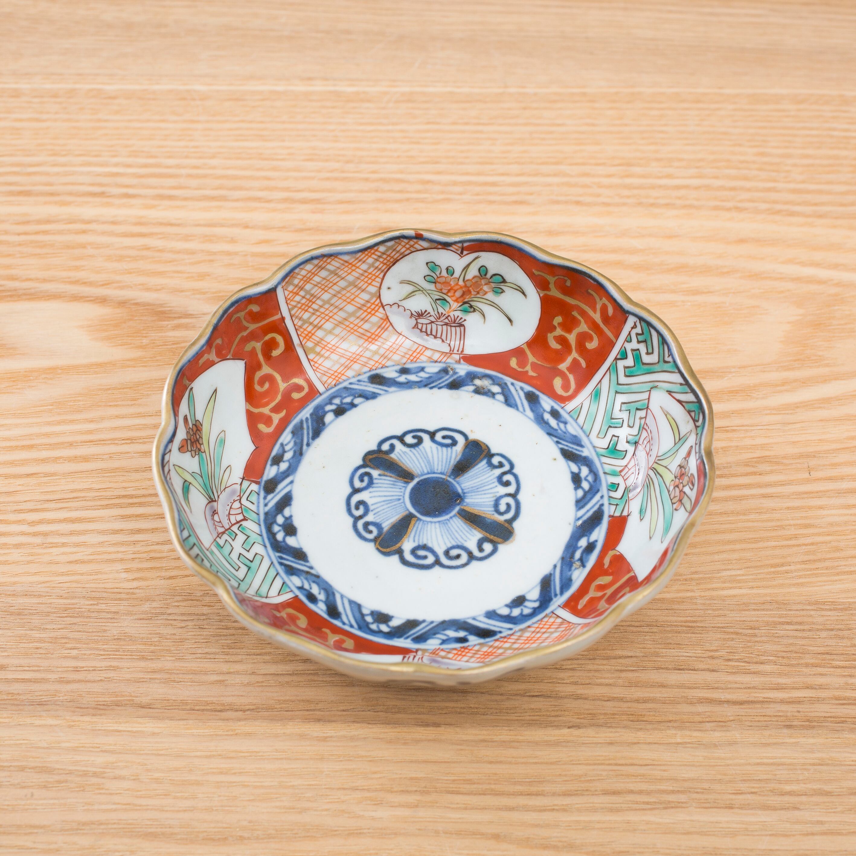 伊万里 色絵金彩 草花文 膾皿 なます皿 窓絵 紗綾形 唐草文 日常使い 生活骨董 和骨董 和食器 アンティーク テーブルコーディネート【BC181】 | 3hige antique store | 京都・古門前の古美術店 | 三髭堂