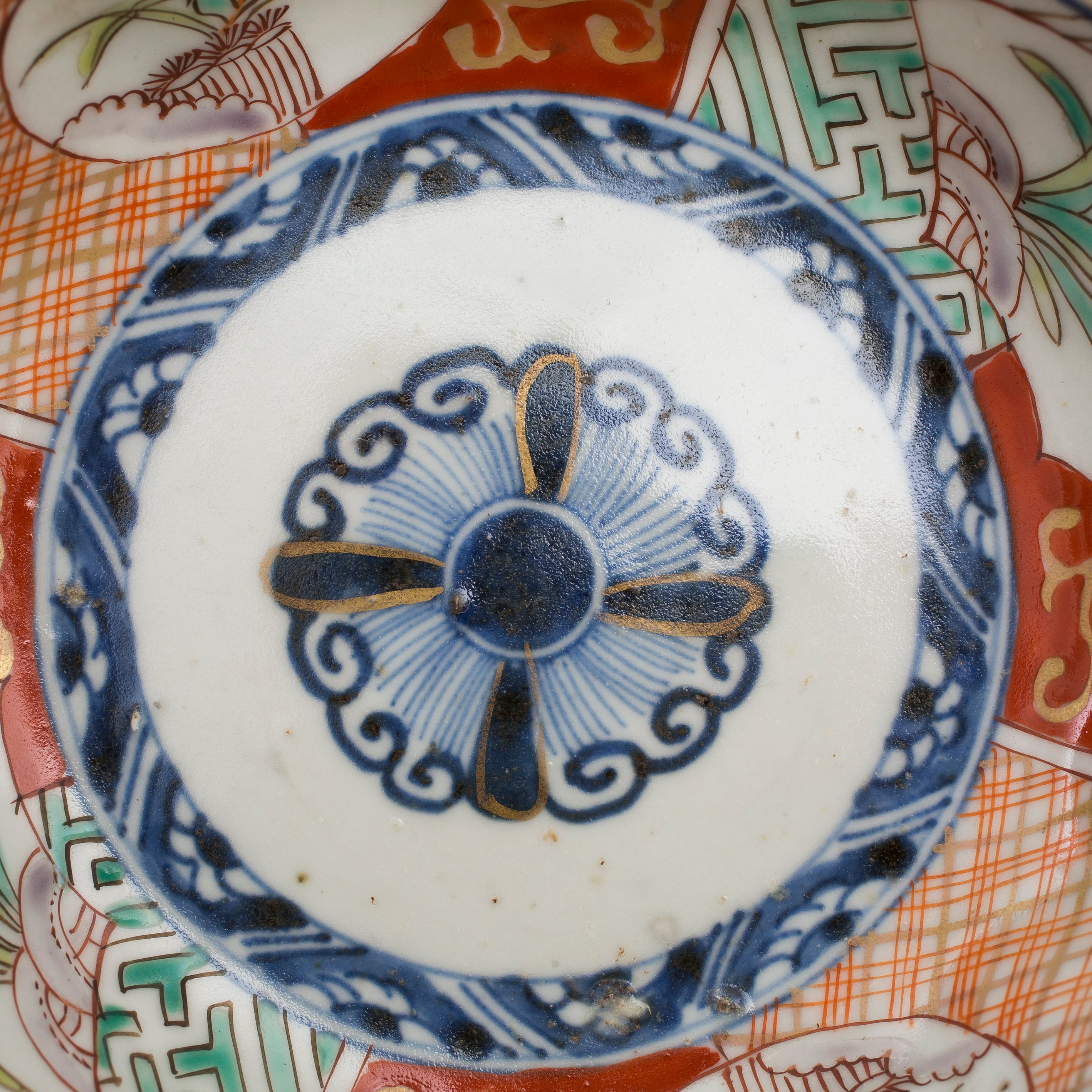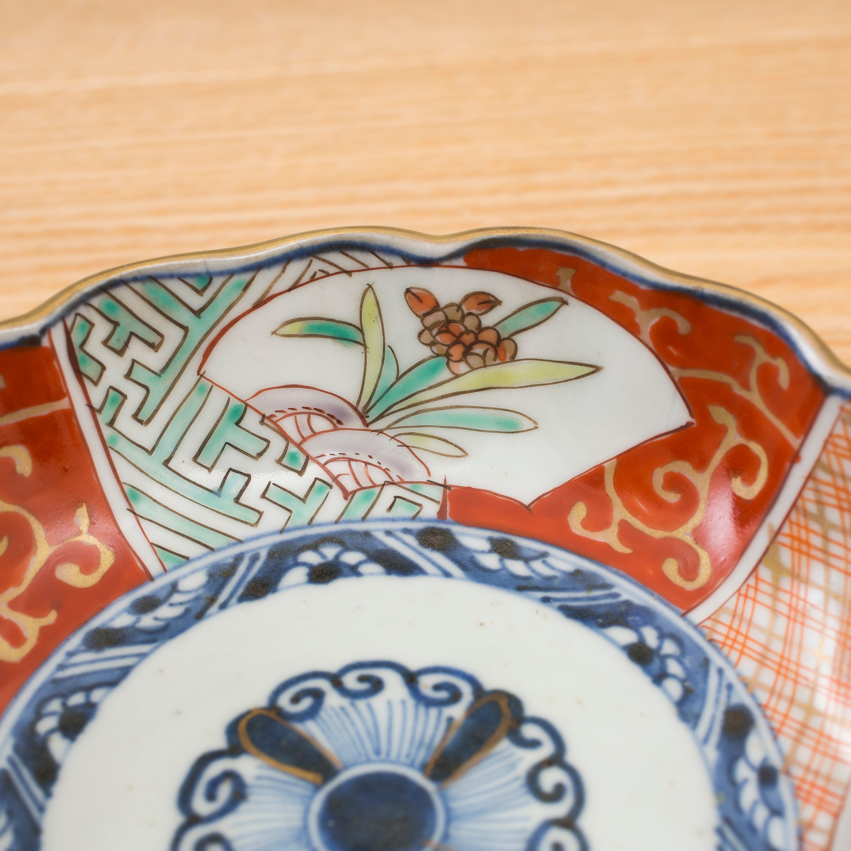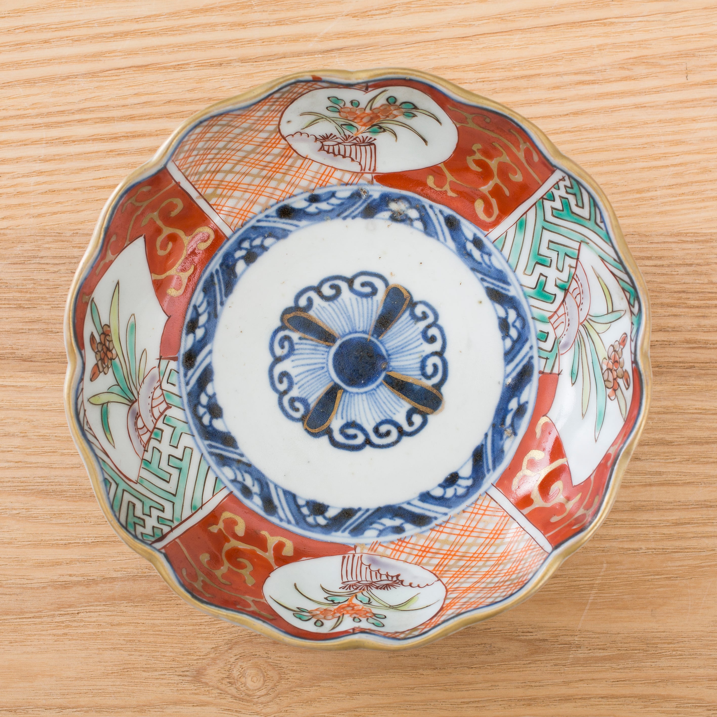 伊万里 色絵金彩 草花文 膾皿 なます皿 窓絵 紗綾形 唐草文 日常使い 生活骨董 和骨董 和食器 アンティーク テーブルコーディネート【BC181】 | 3hige antique store | 京都・古門前の古美術店 | 三髭堂