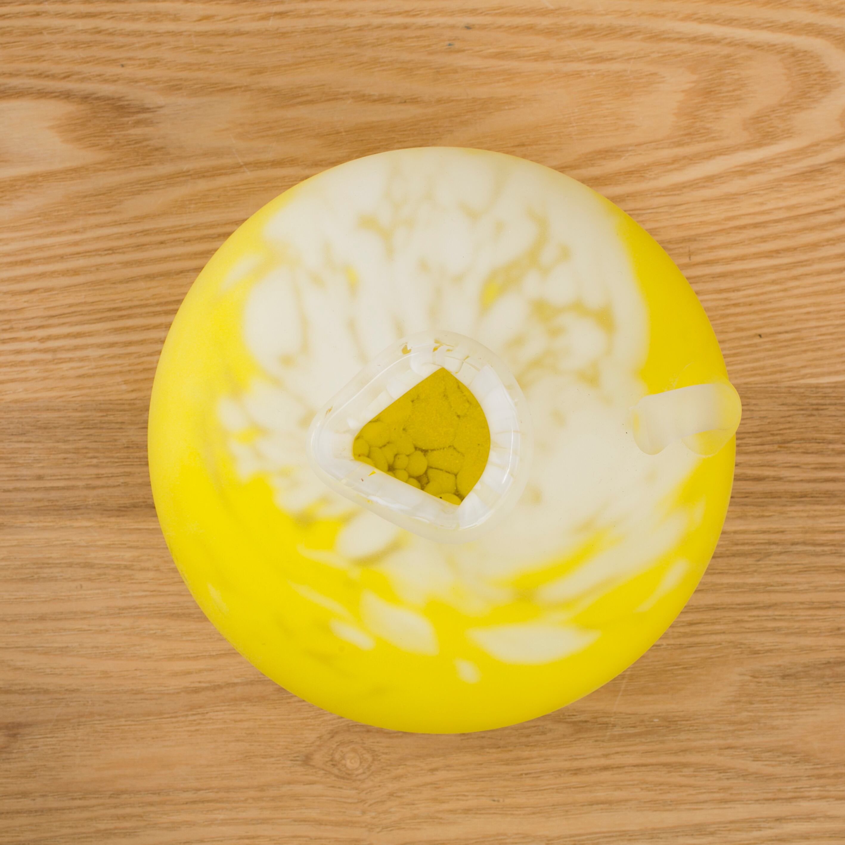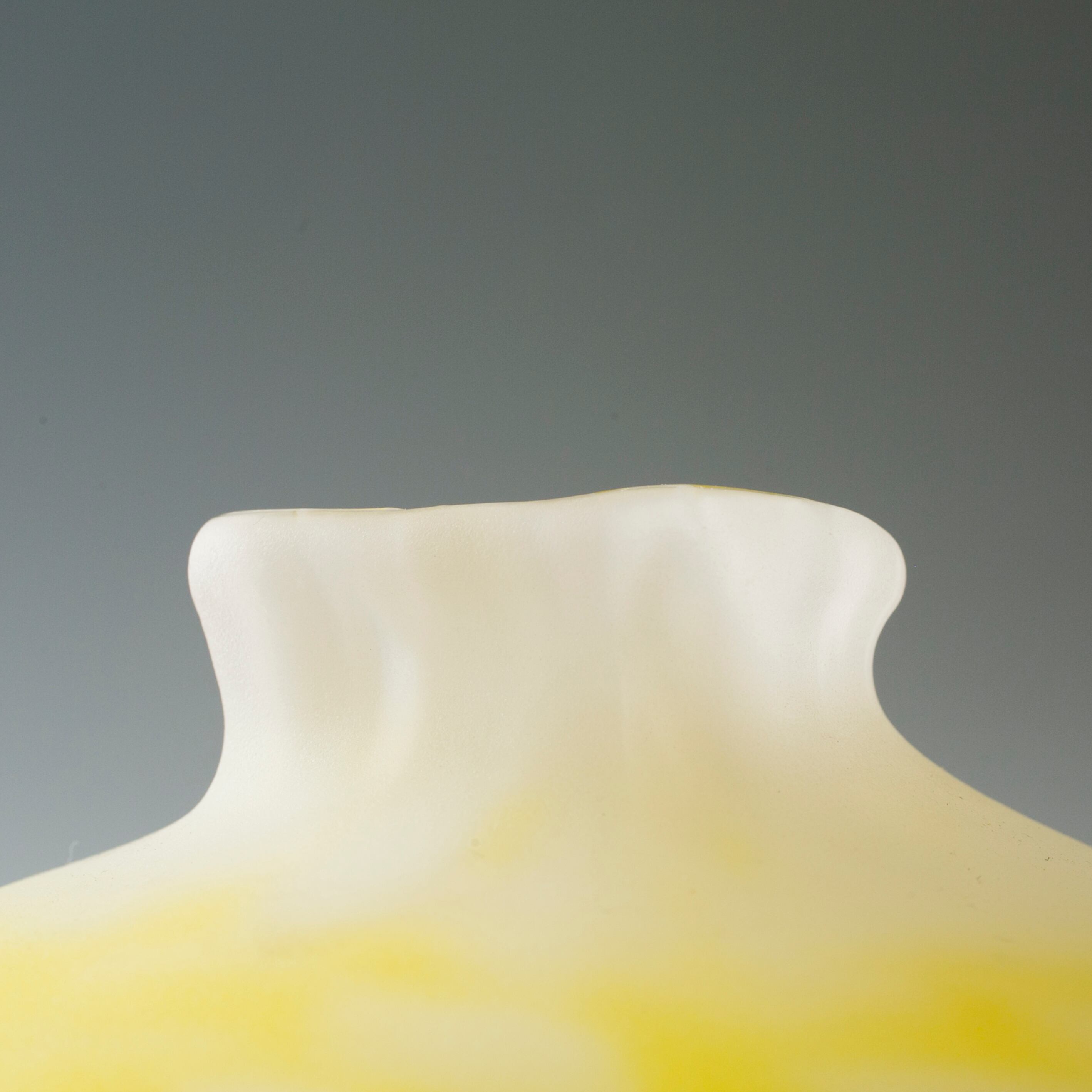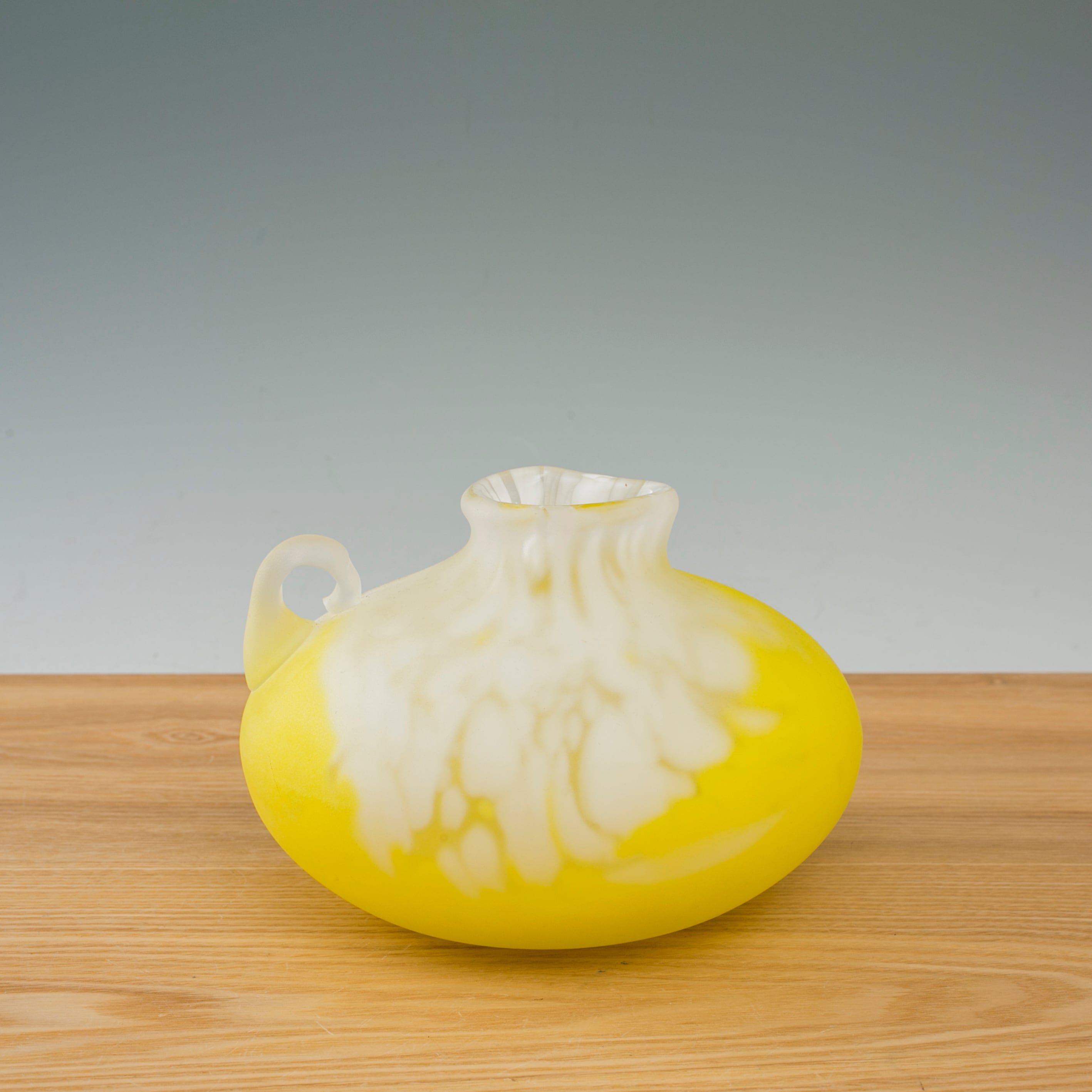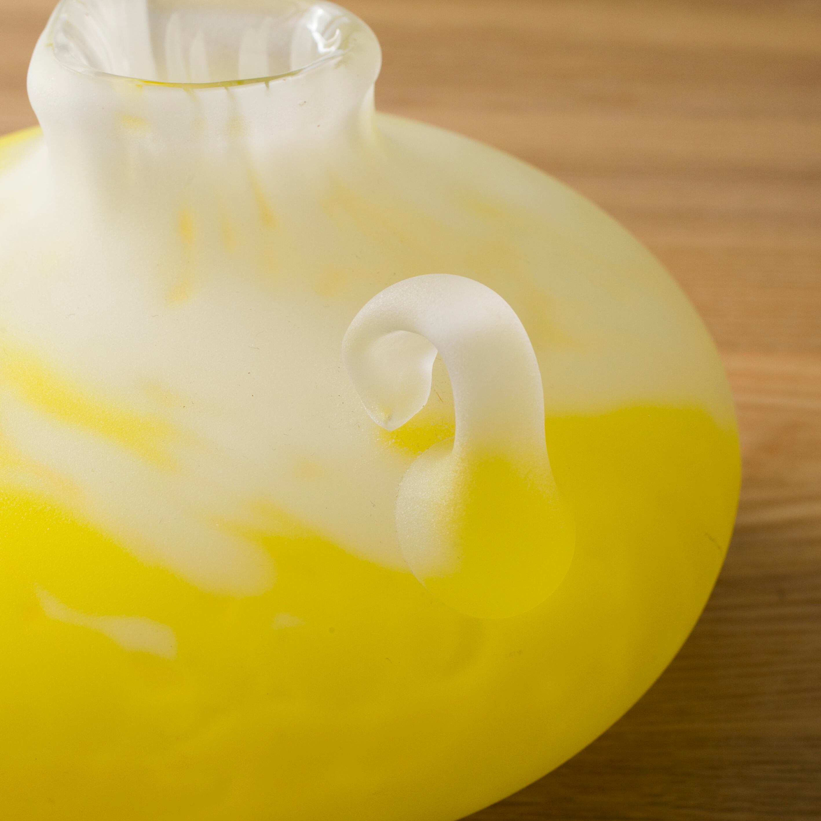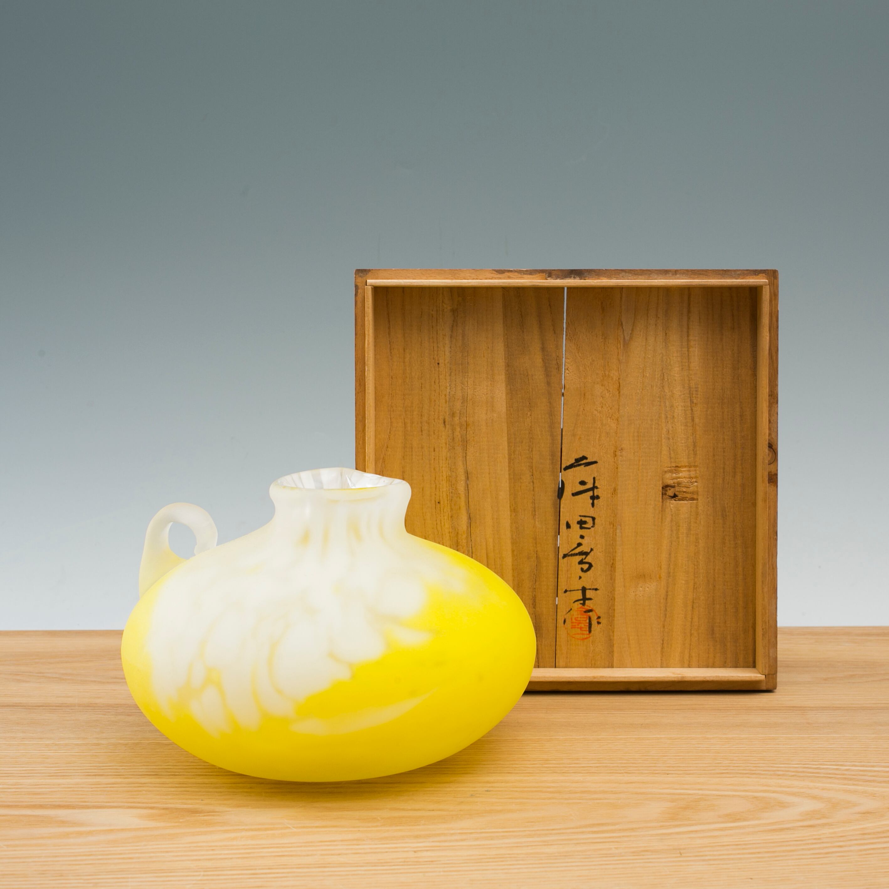藤田喬平 手吹 ガラス 花器 花瓶 花入 フラワーベース インテリア オブジェ 置物 手付 黄色 イエロー マーブル ガラス工芸 作家物 共箱 サイン【BB165】