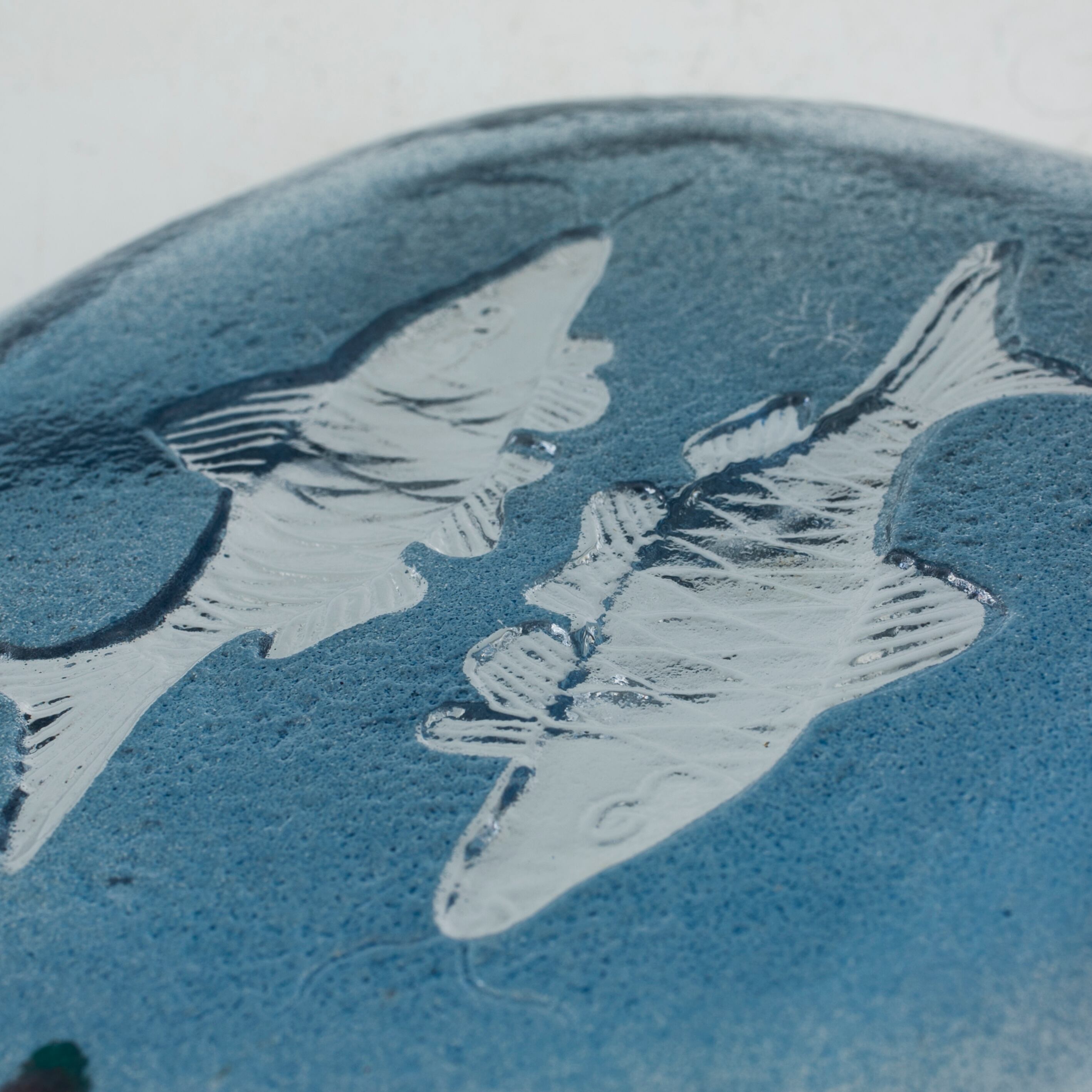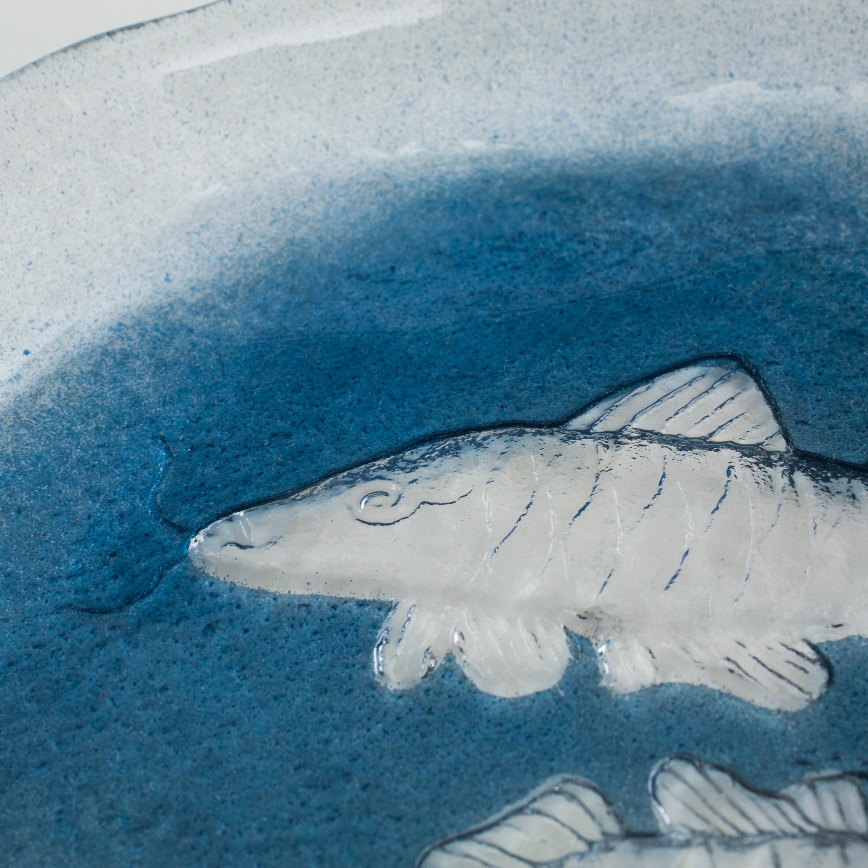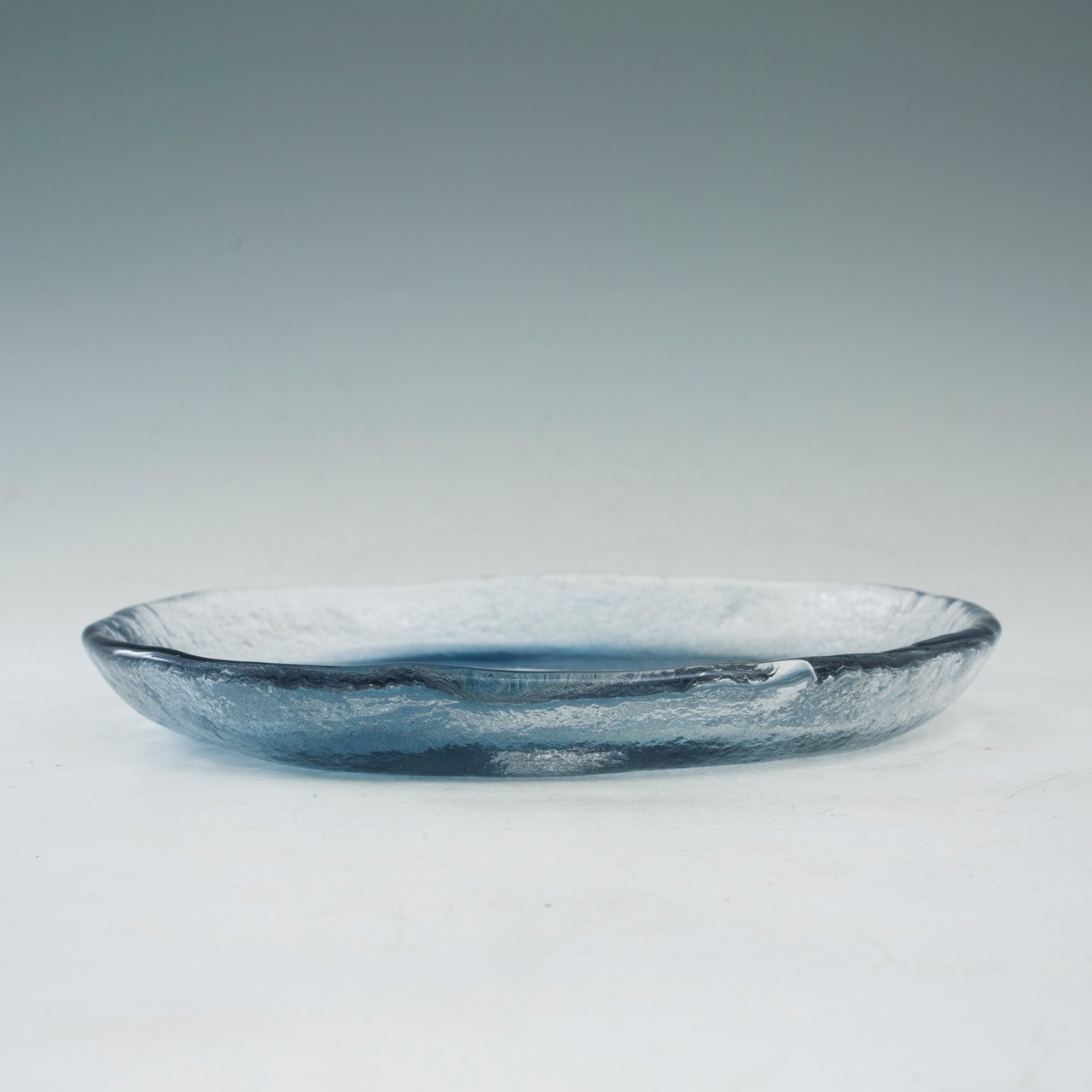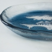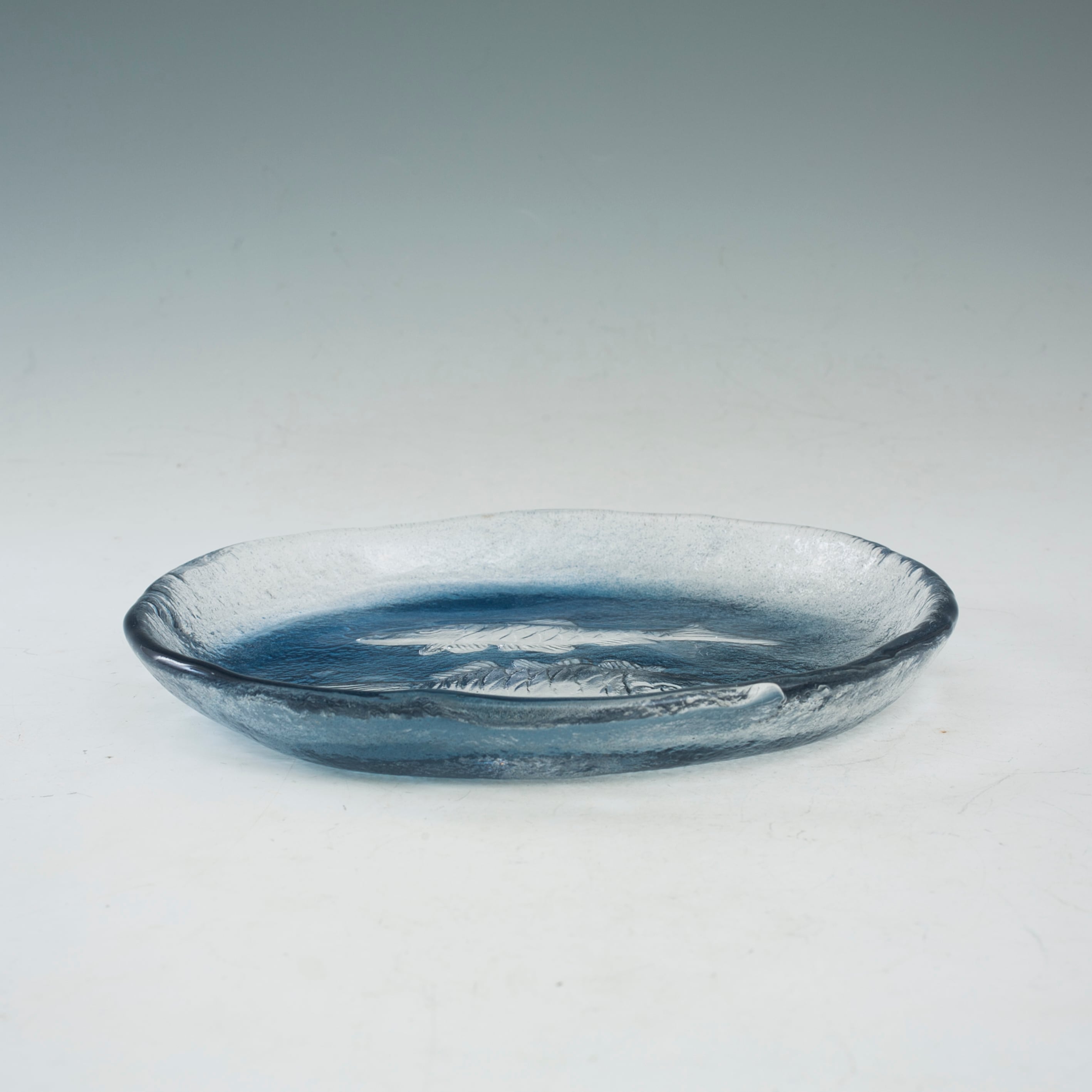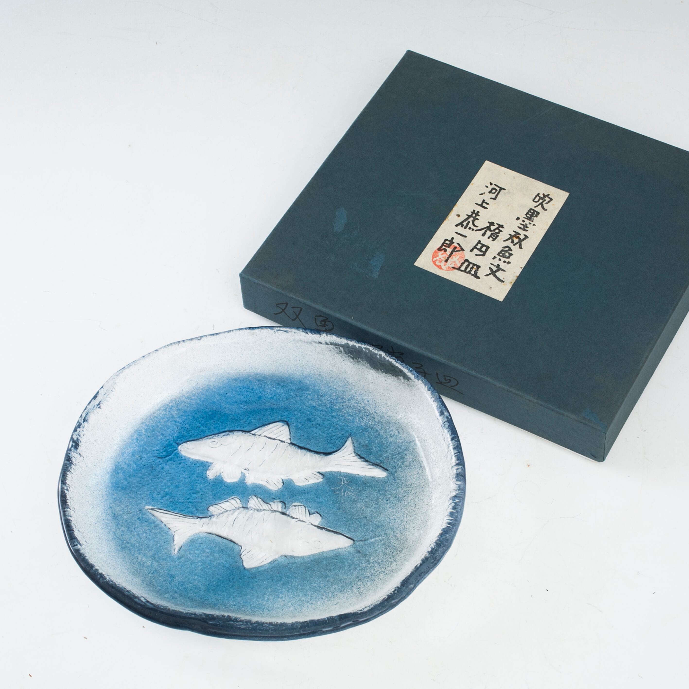 河上恭一郎 吹墨双魚文 楕円皿 ガラス皿 ガラス工芸 ガラス作家 栞 略歴付 共紙箱 涼しげ 和食器 だ円 変形皿 吉祥文様 【BA389】 | 3hige antique store | 京都・古門前の古美術店 | 三髭堂