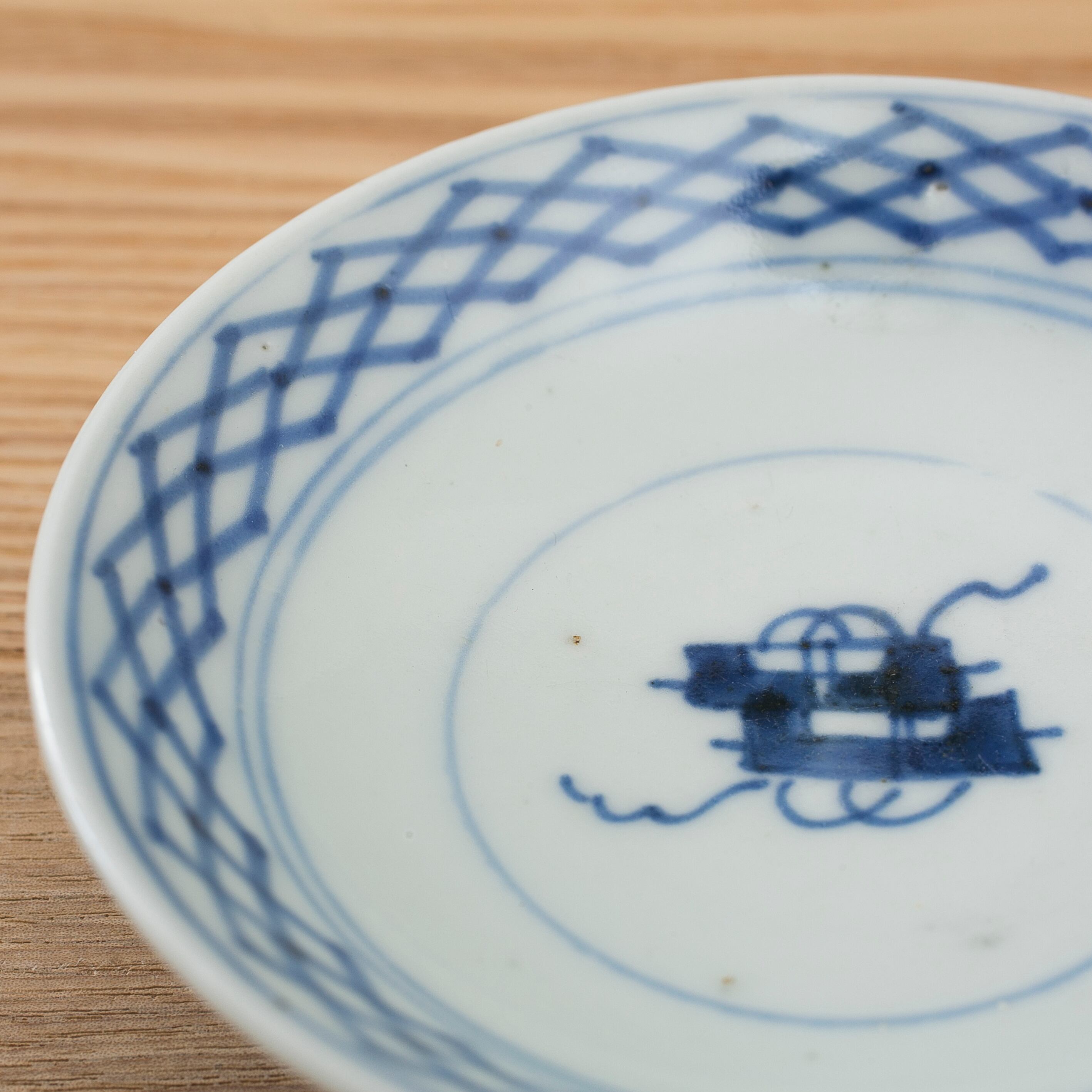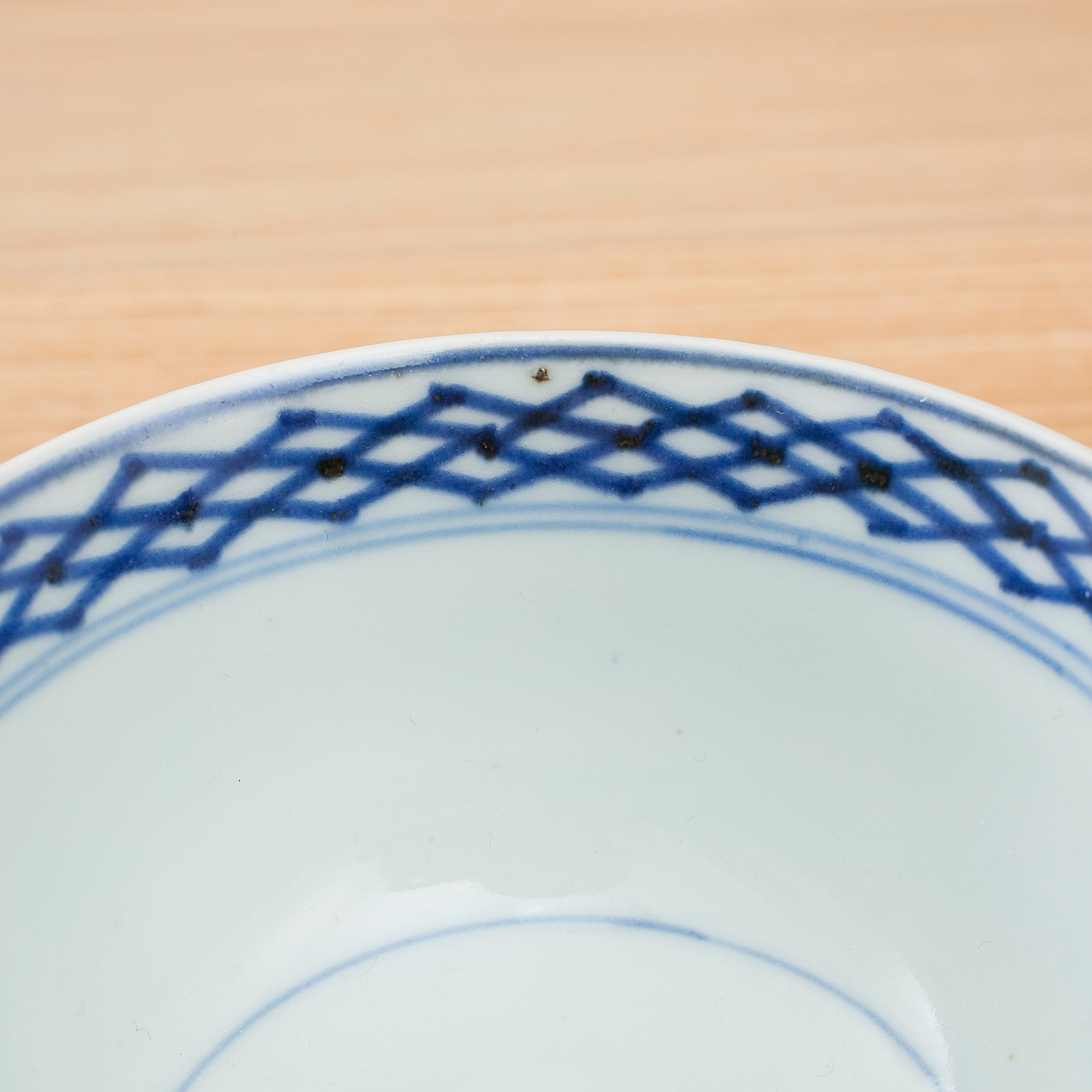 扇文 染付 蓋碗 巻物 宝尽くし 吉祥文様 古伊万里 伊万里 染付 江戸時代 和食器 和骨董 日本の美 飯茶碗 和食器 モダンデザイン 映える器 日本古陶磁 暮らしの骨董 生活骨董 用の美 アンティーク コレクション 【BB173】 | 3hige antique store | 京都・古門前の古美術店 | 三髭堂