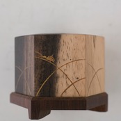 黒柿 六角 虫籠 虫篭 虫かご 秋草 香合 川上峰春 螺鈿 加賀蒔絵 蒔絵師 漆芸 茶道具 香道具 玄関飾り 床飾り 茶会 秋草 鈴虫 季節のインテリアにも 六角形【BC206】