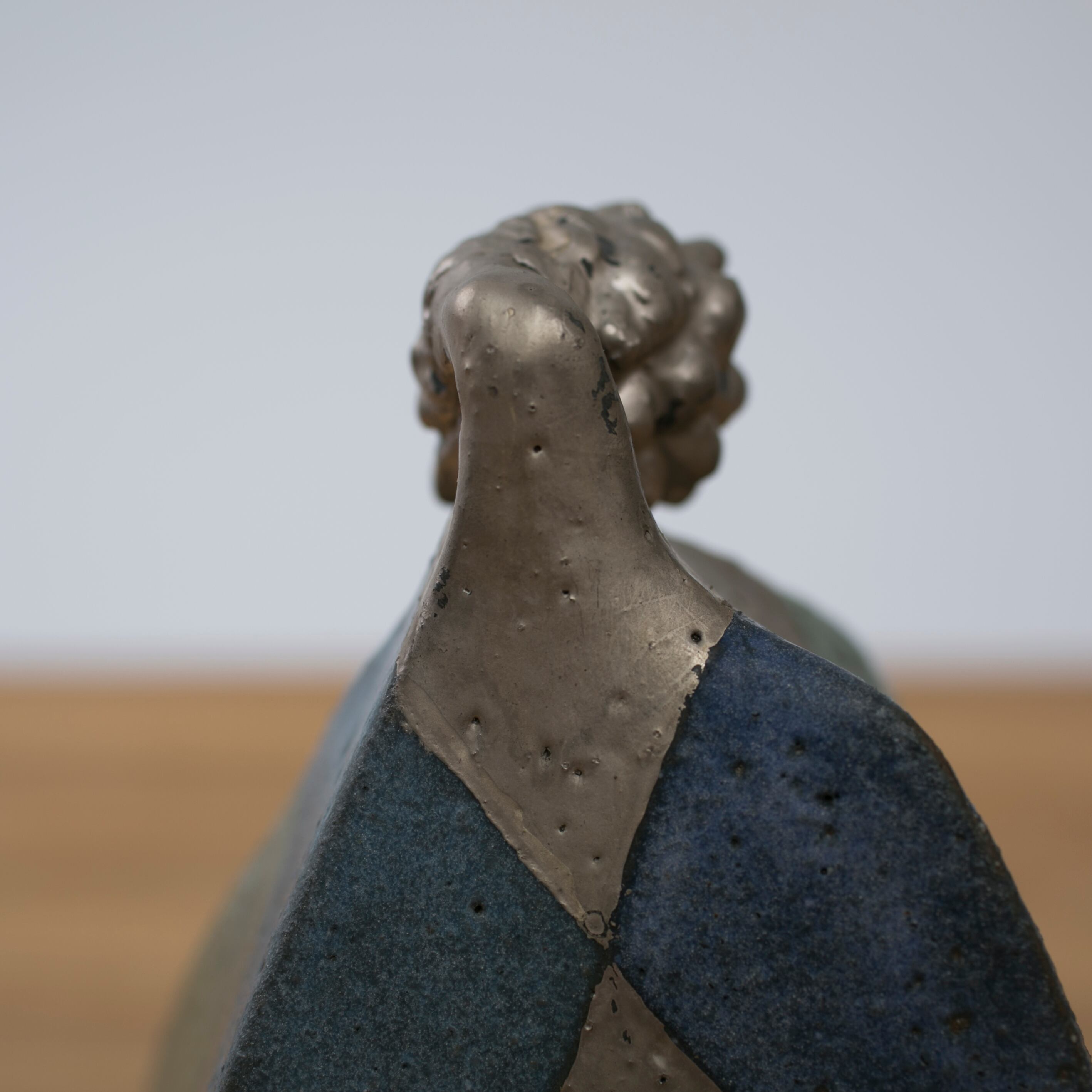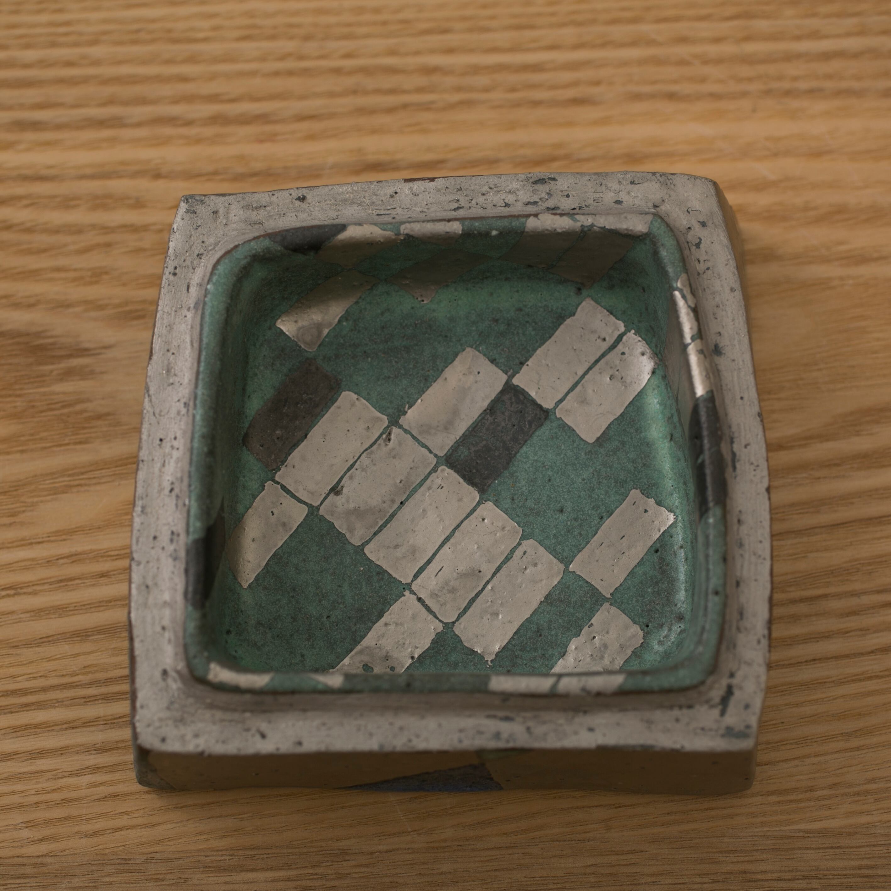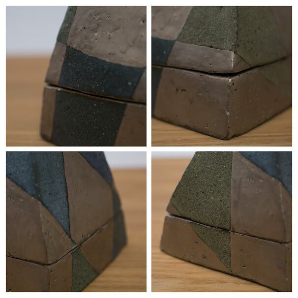 春秋果 陶筥 陶製箱 坪井明日香 共箱 蓋物 合子 現代作家 アート 現代陶芸 銀彩 ミントグリーン モダンデザイン オブジェ インテリア 置物【BB159】 | 3hige antique store | 京都・古門前の古美術店 | 三髭堂