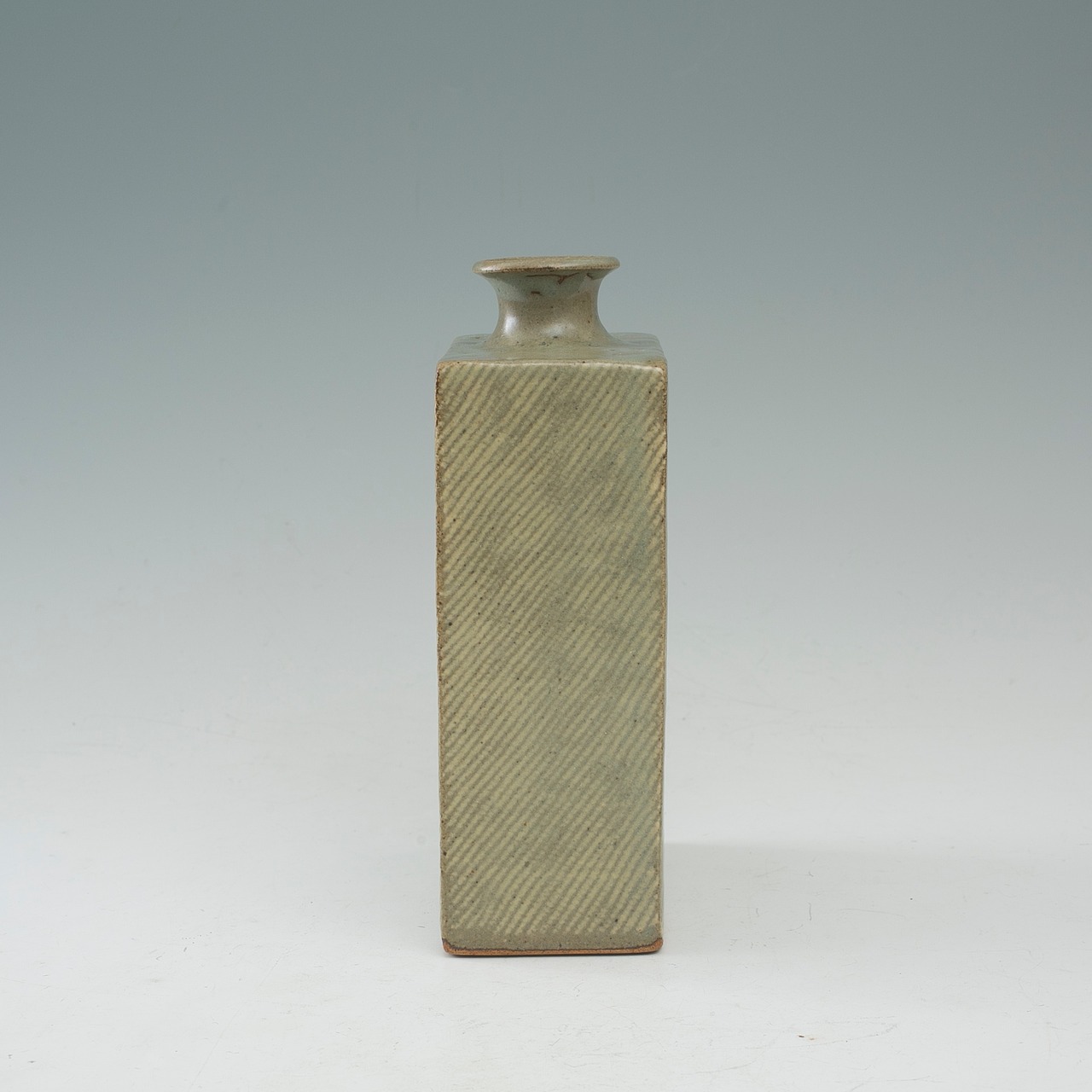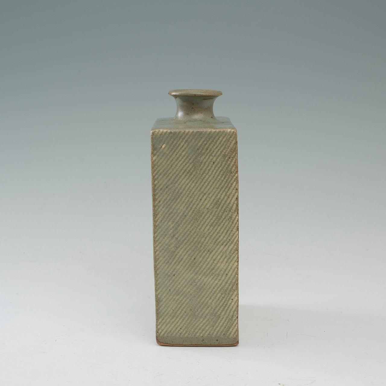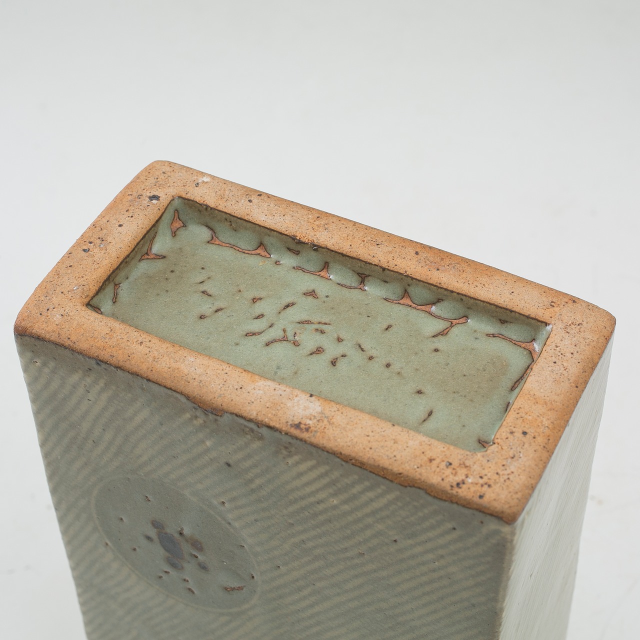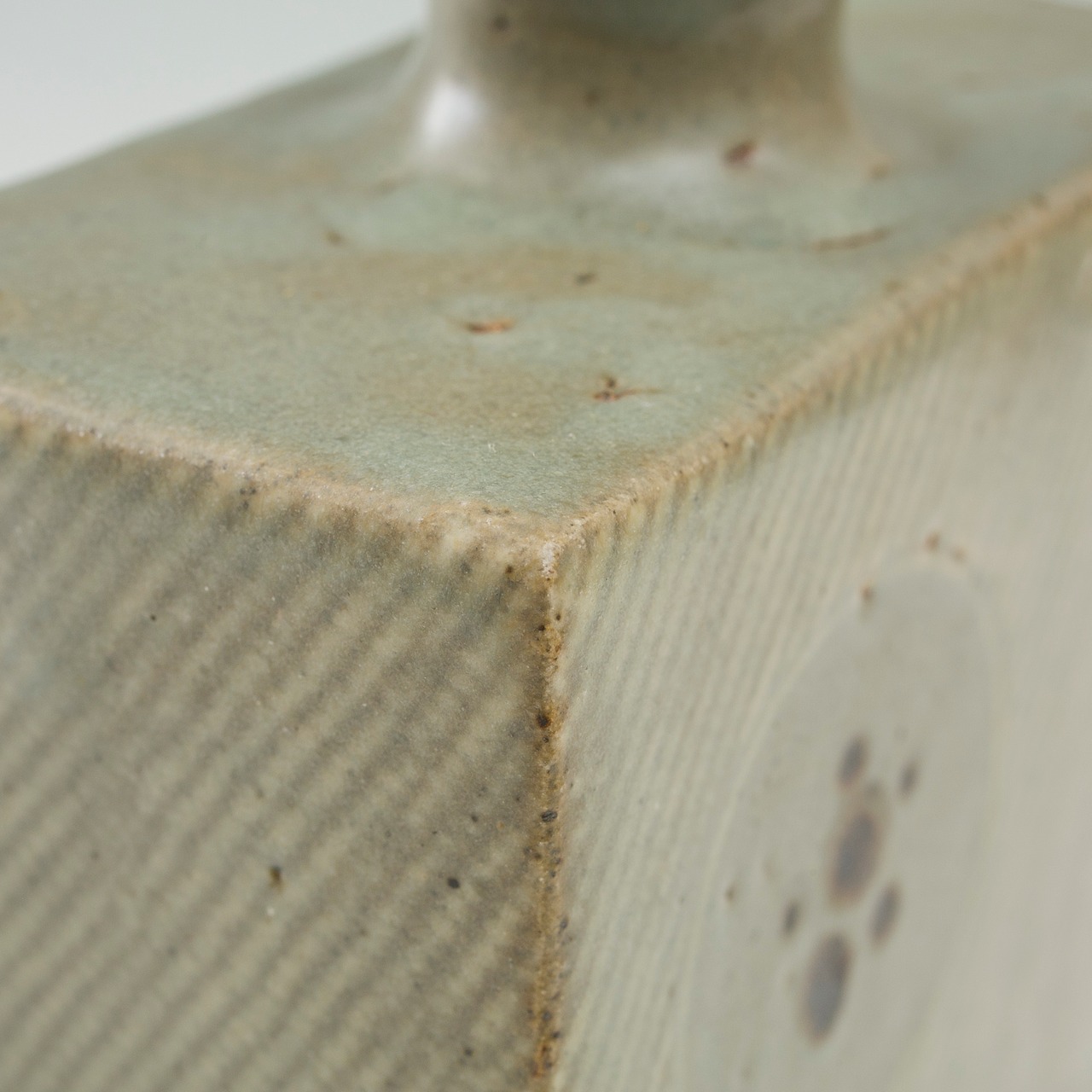 島岡達三 扁壷 花瓶 象嵌 縄文象嵌 花器 花入 オブジェ 置物 インテリア 共箱 作家物 人間国宝 益子焼 民藝 陶器 陶芸家 重要無形文化財保持者 用の美 可愛い名品 日本陶磁 師は浜田庄司 【BA386】