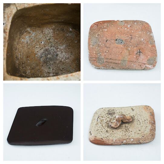 信楽焼 水指 茶道具 替蓋あり 塗蓋 茶会 四角 菱形 平行四辺形 日々菴 日々庵 木箱有り 和骨董 日本陶磁 古陶磁 アンティーク 茶の湯 コレクション【BB183】