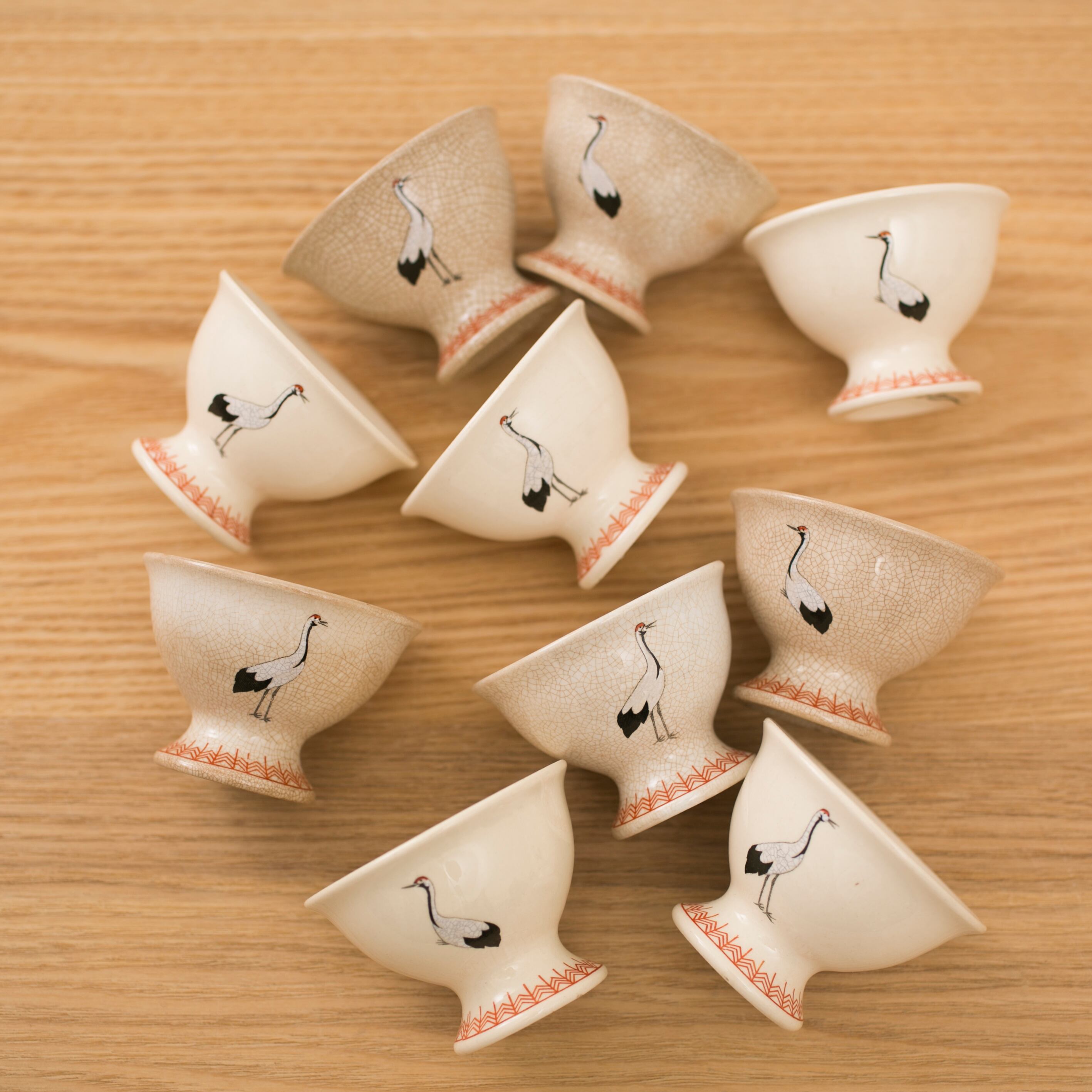 和蘭陀 馬上坏 盃 ぐい呑み 酒器 鶴 ツル 10客セット 十客揃 オランダ焼 デルフト 阿蘭陀 時代物 茶道具 懐石の器 西洋アンティーク レトロ 用の美 骨董 用の美 暮らしの骨董 季節を彩る かわいい骨董【BB186】