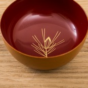 それぞれの盃の内側部分とサイコロには、カメ、竹、ウメ、鶴などの吉祥文様が描かれています。サイコロを振って、出た目の大きさでお酒をたしなむ。遊び心ある酒器です。