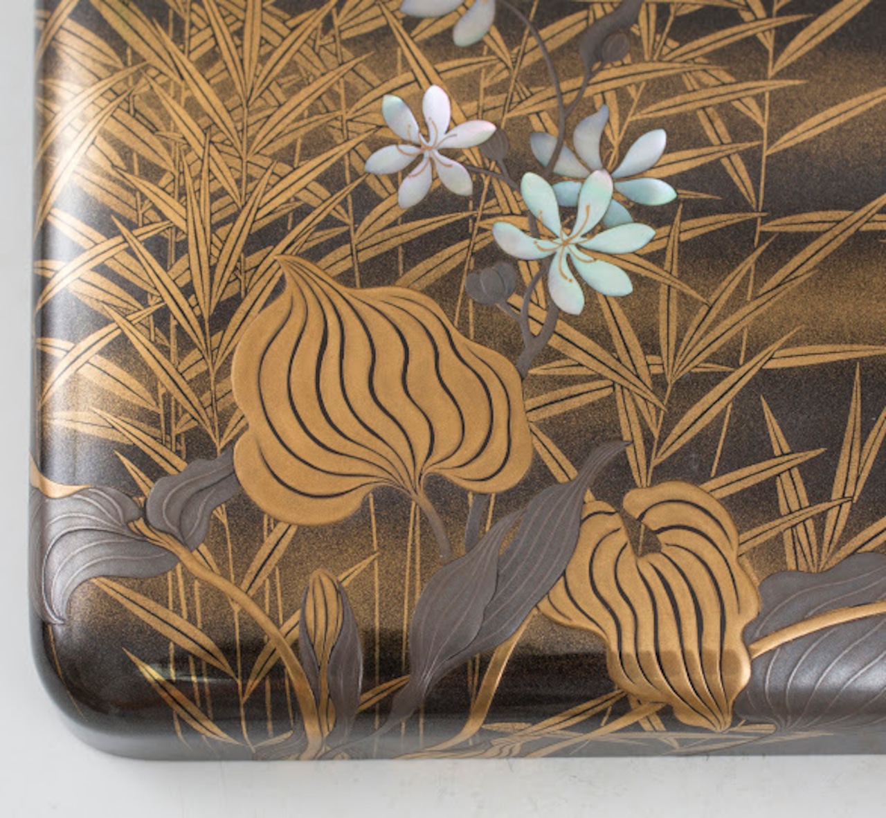 葦鷺図 サギ 芦 アシ 水辺 水草 月 鳥 水草 蒔絵 硯箱 梨地 梨子地 螺鈿 象嵌 芝山 硯・水滴付 金蒔絵 漆器 漆芸 漆工芸 日本の美 硯入 書道 和骨董 日本美術 時代蒔絵 アンティーク 文房具【BC212】