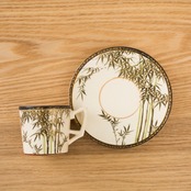 薩摩焼 カップ&ソーサー デミタス コーヒー 竹図 アンティーク 日本古陶磁 骨董 アンティーク 日本の美 コレクターズアイテム 薩摩錦手 明治工芸 SATSUMA 細密画 デザイン 金彩【BC78】