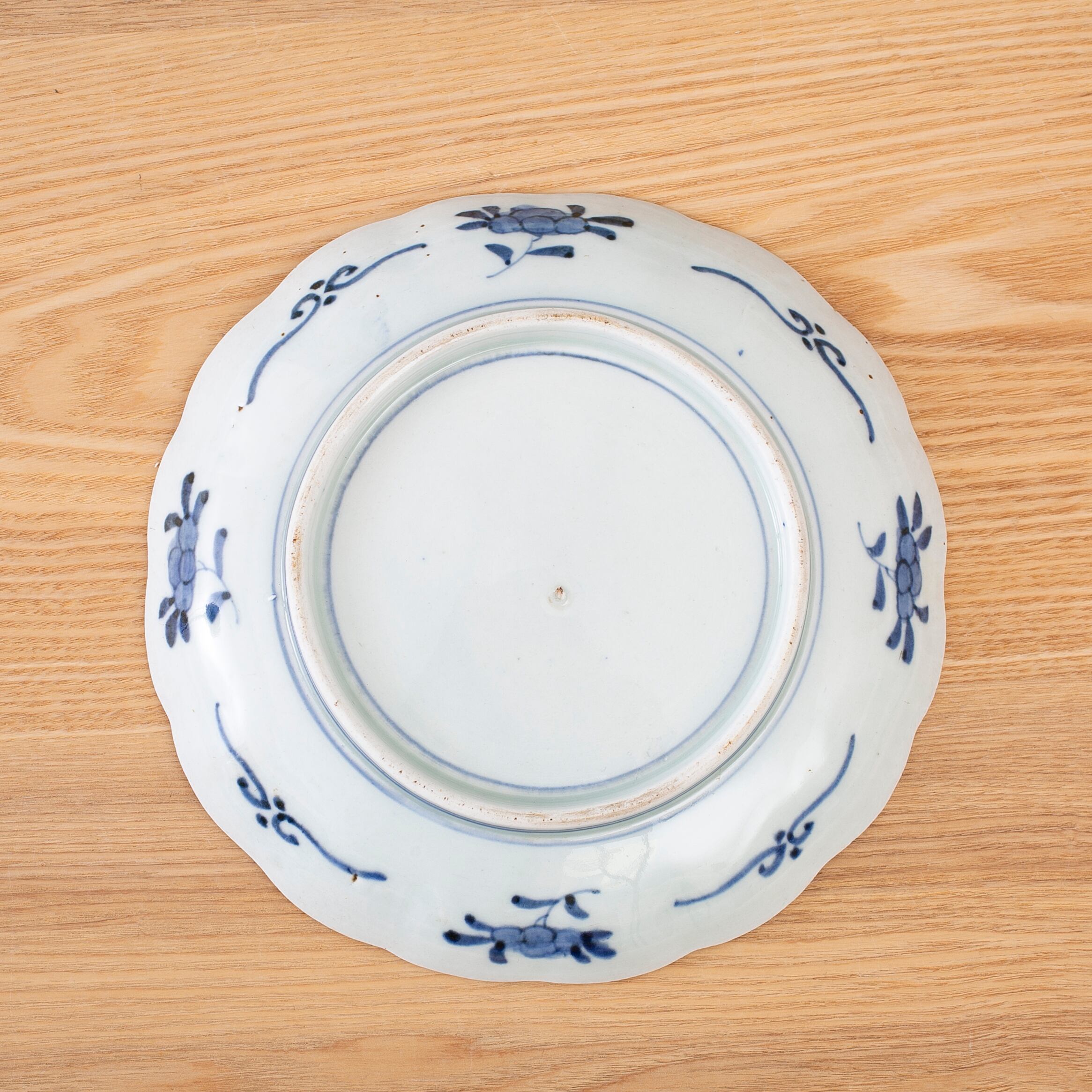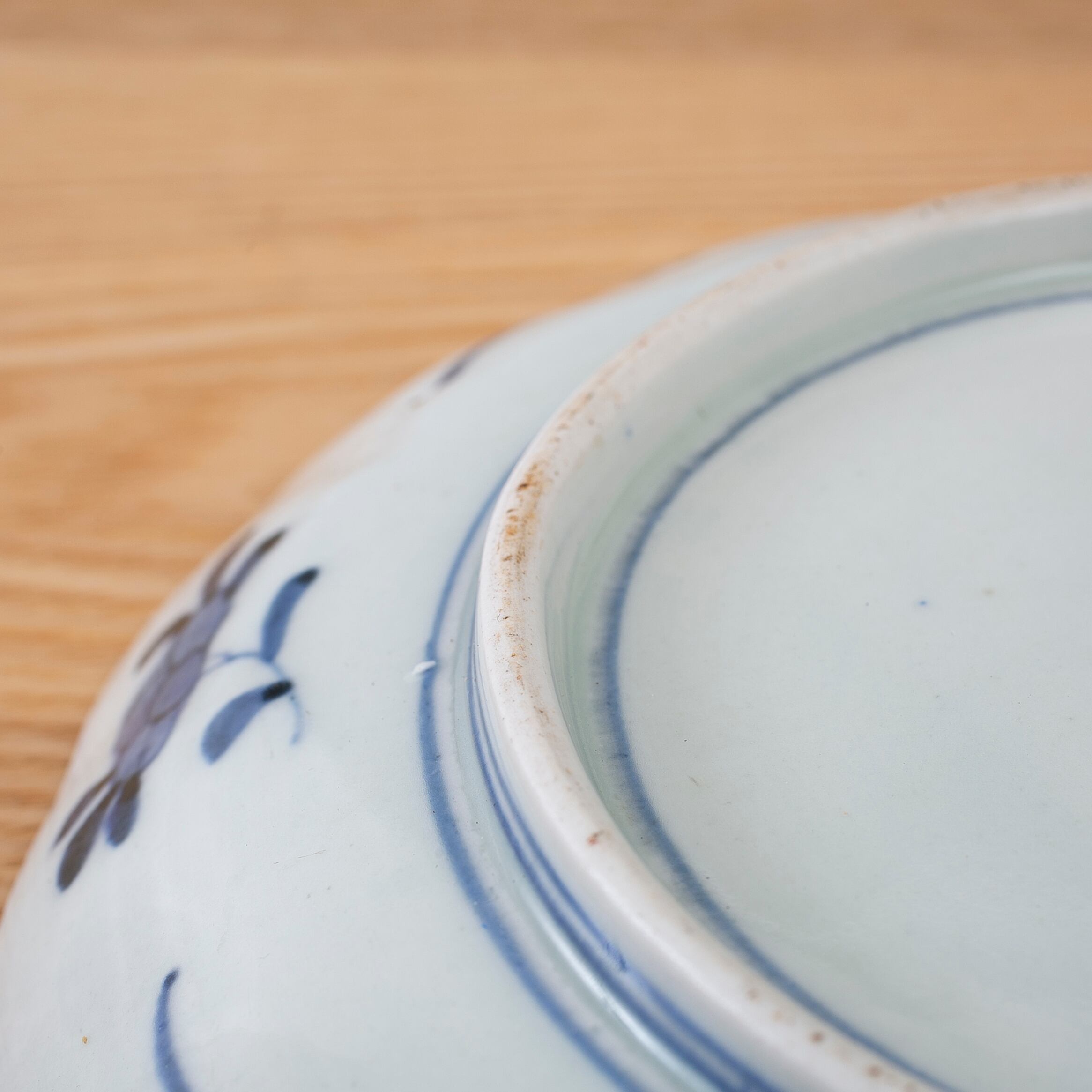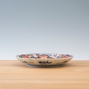 【スタッフから一言】見込みの花盆文は17世紀末から18世紀にかけて、伊万里焼のみならず中国の五彩にもよく描かれた文様。どこか洋皿とも通じる雰囲気を持ったお皿です。約22センチなので、メインプレート、前菜を少量ずつ、パスタ等、様々にお使いいただけます。