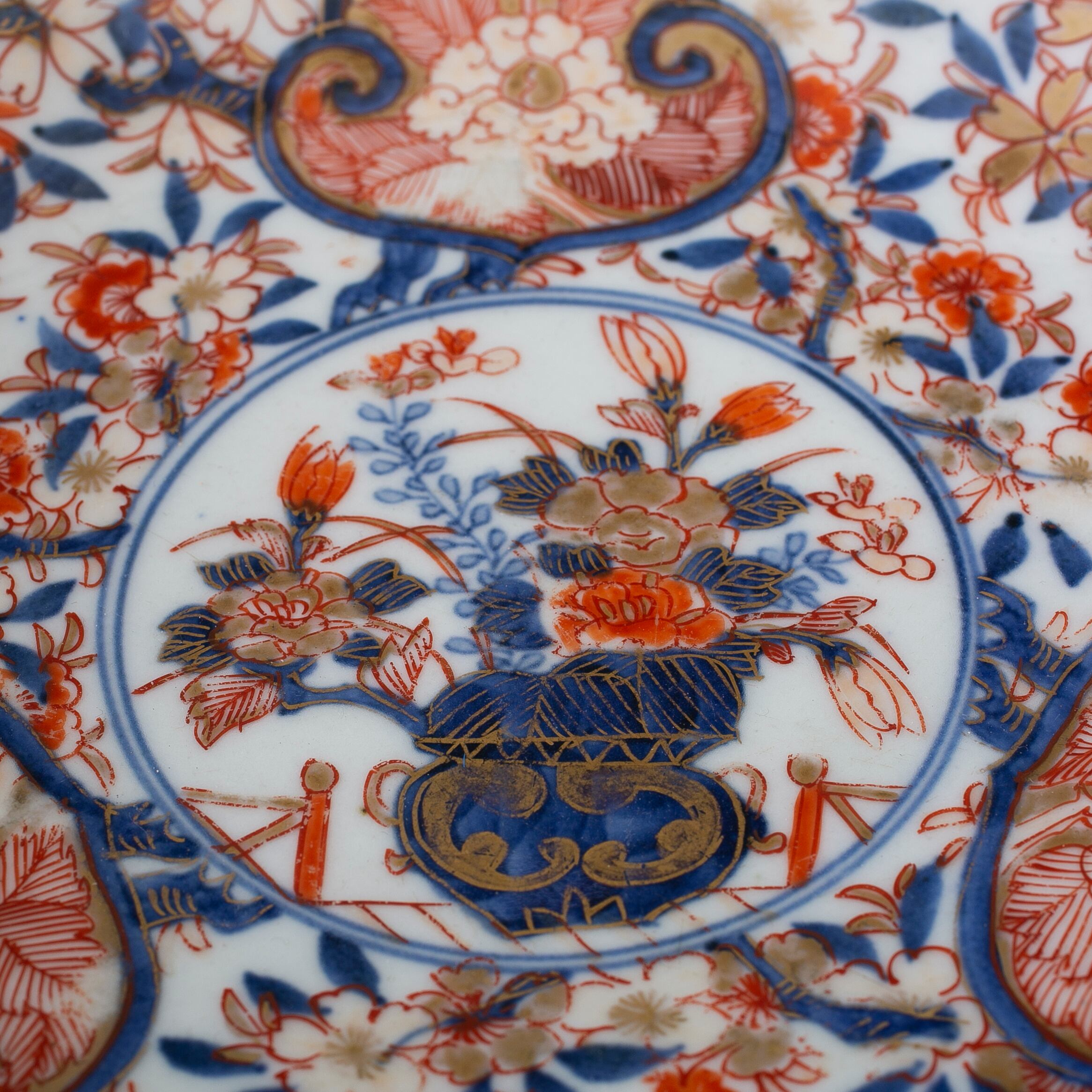 伊万里 古伊万里 色絵金彩 金襴手 錦 桜 牡丹 花盆文 花器 花尽くし 輪花 七寸 7寸 約22センチ 平皿 プレート 映える器 和骨董 日本の美 日本古陶磁 暮らしの骨董 生活骨董 用の美 アンティーク かわいい骨董 江戸時代 幕末 コレクション【BC220】 | 3hige antique store | 京都・古門前の古美術店 | 三髭堂