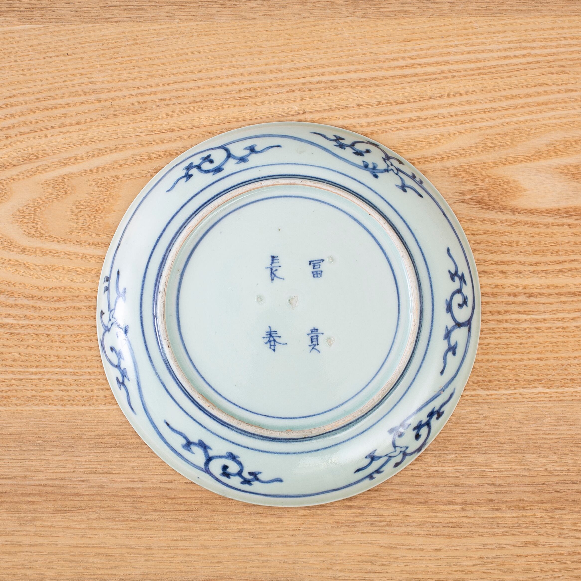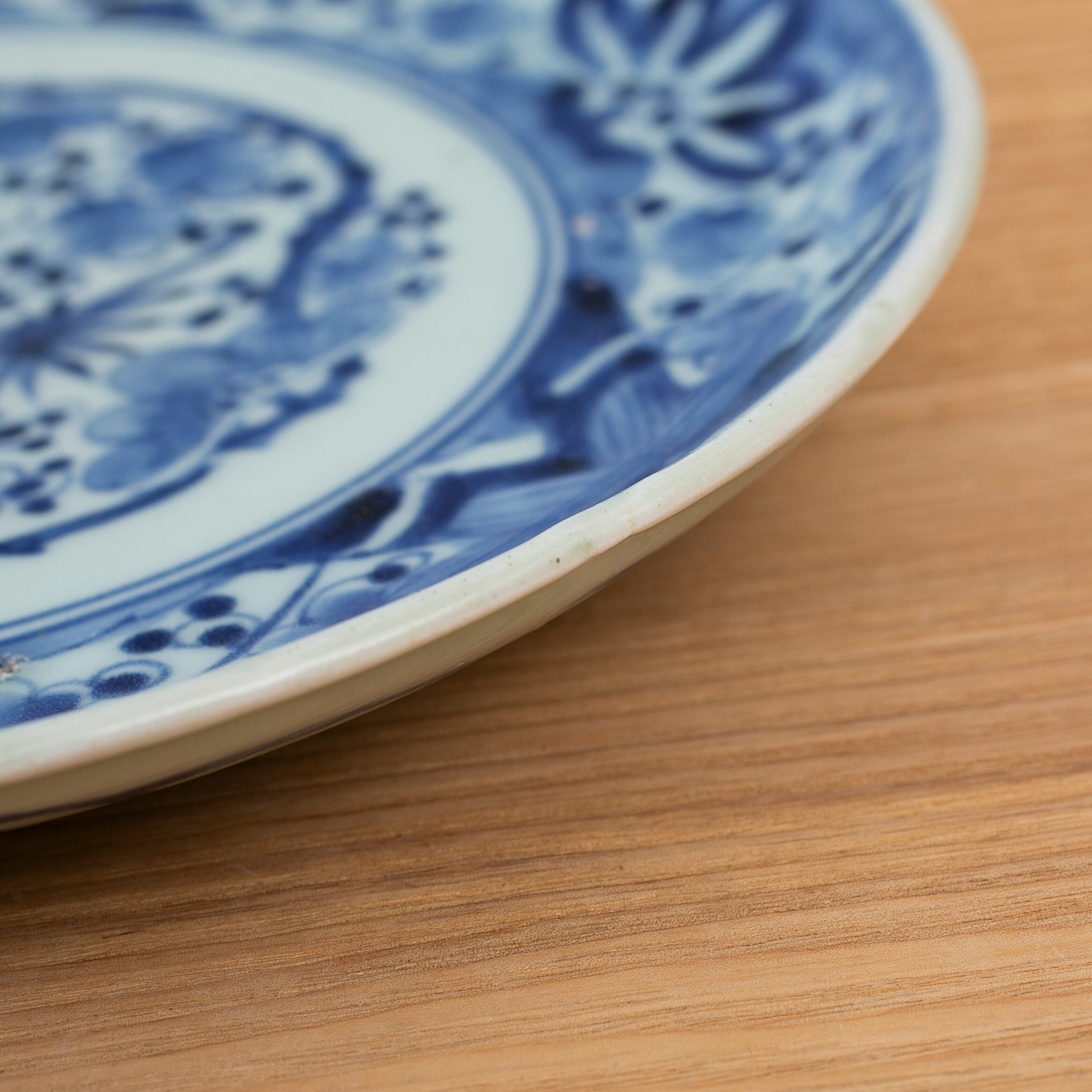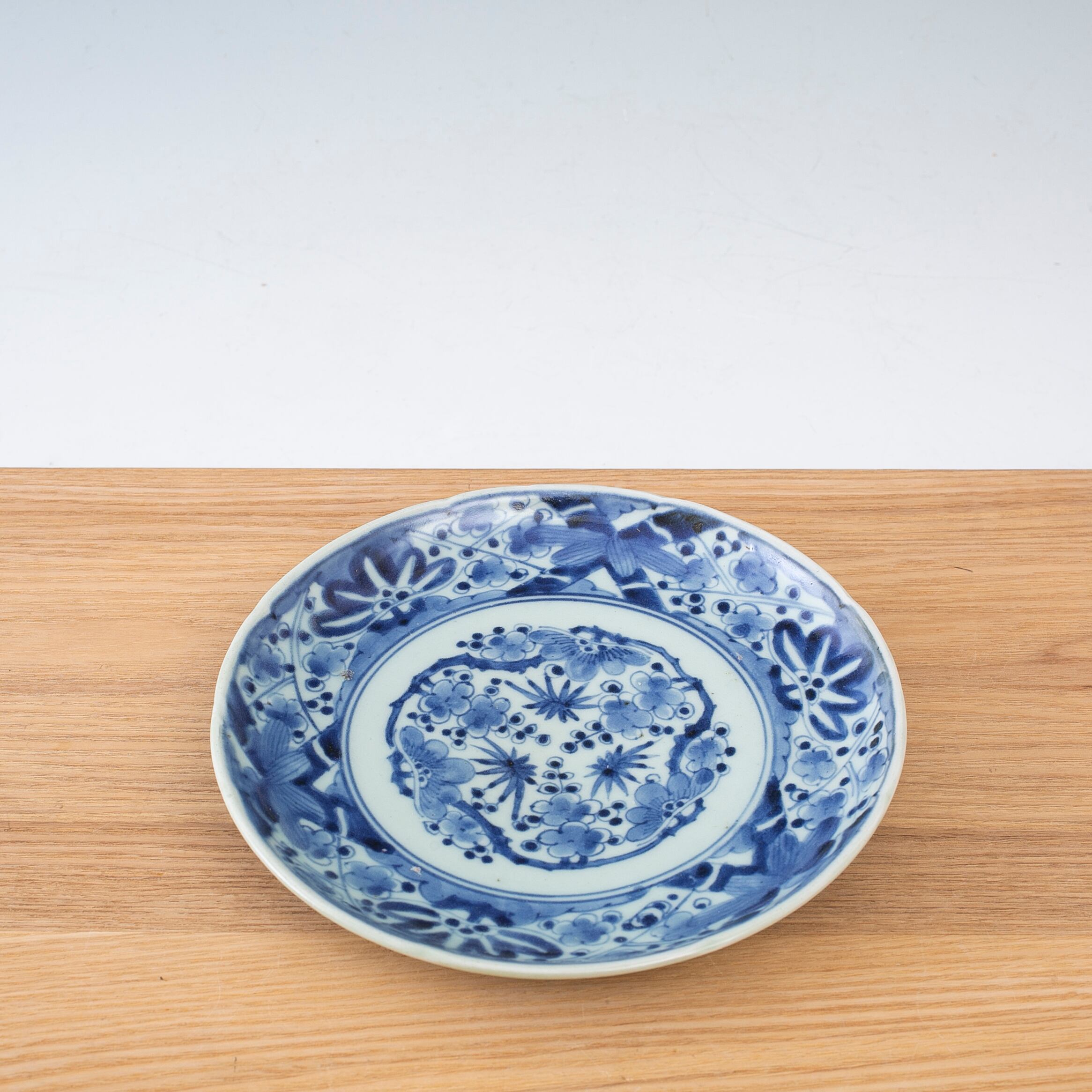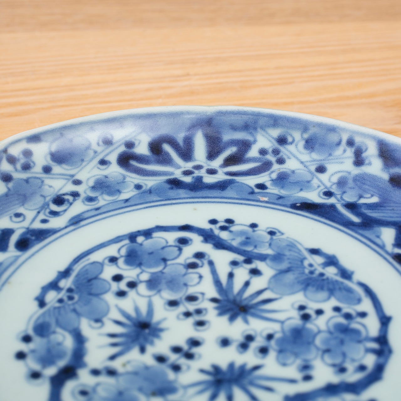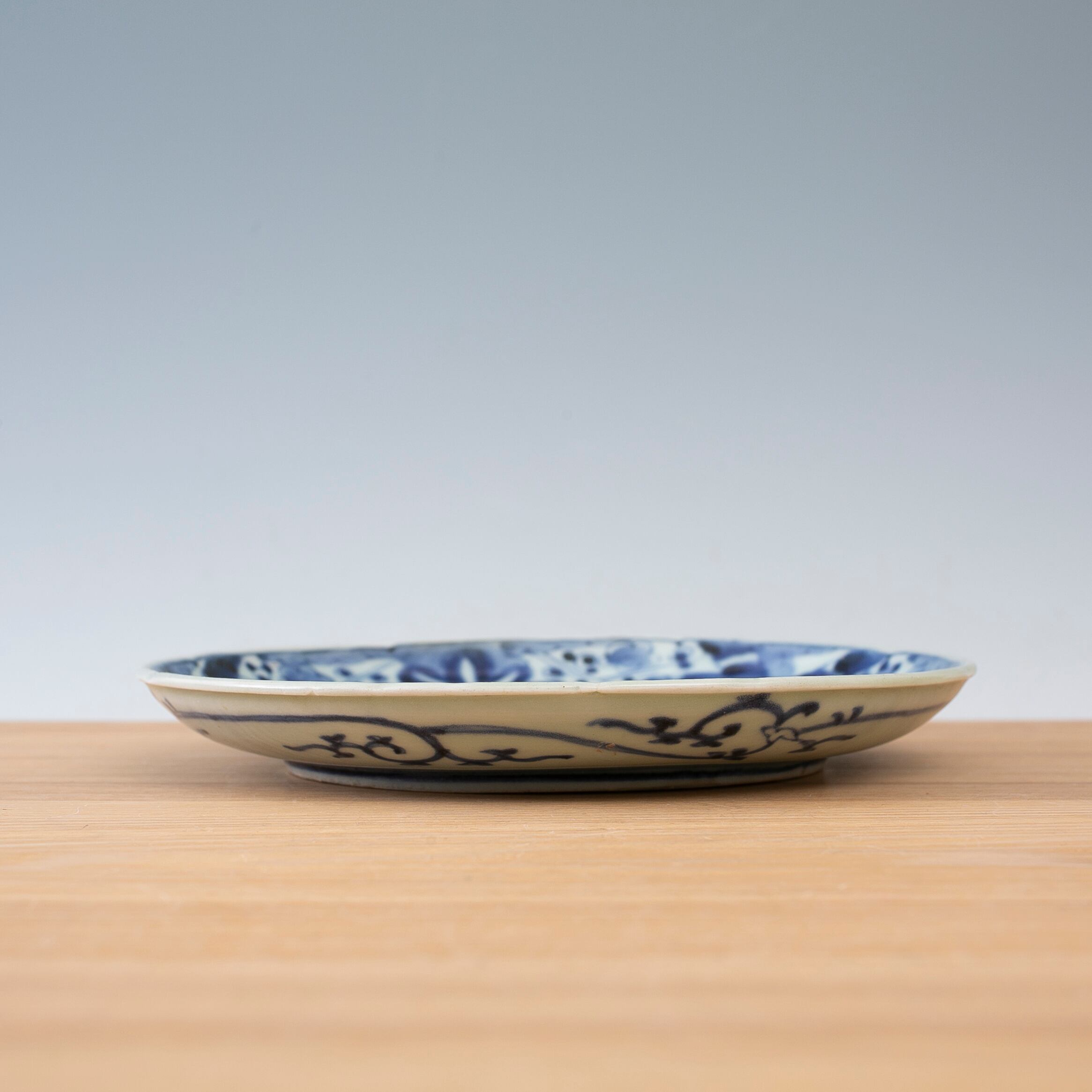 伊万里 染付 松竹梅文 六寸 6寸 約19センチ 平皿 プレート 映える器 富貴長春銘 和骨董 日本の美 日本古陶磁 暮らしの骨董 生活骨董 用の美 アンティーク かわいい骨董 江戸時代 古伊万里 コレクション 縁側面 蛸唐草【BC219】 | 3hige antique store | 京都・古門前の古美術店 | 三髭堂