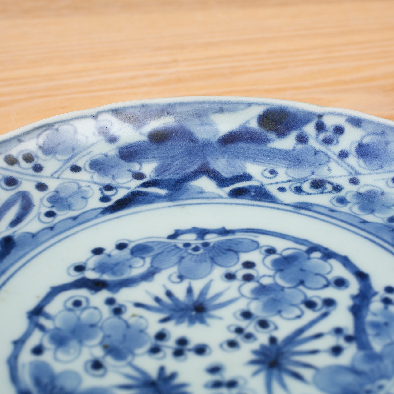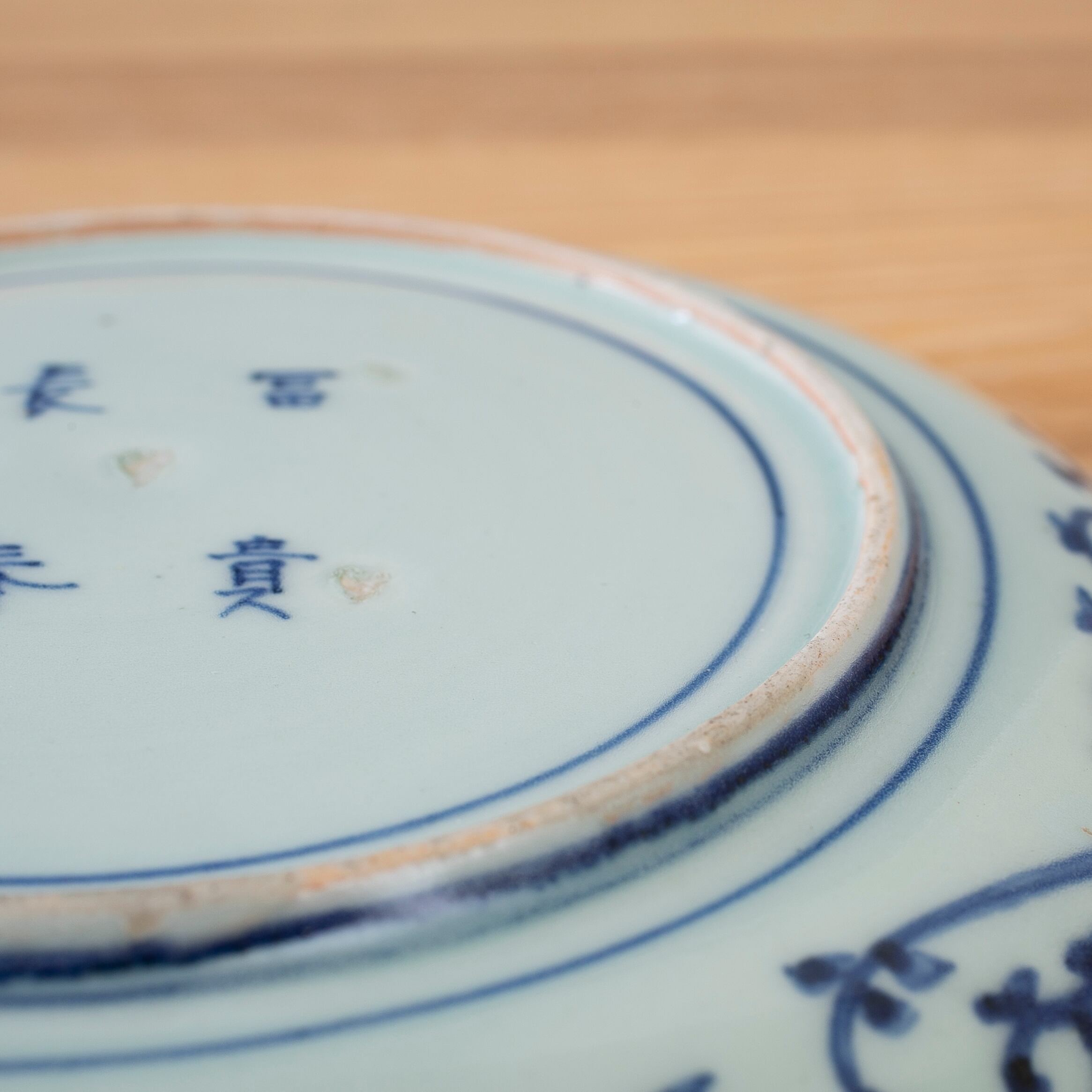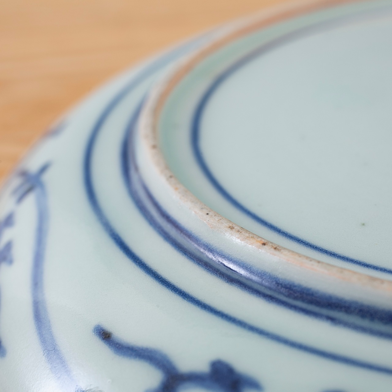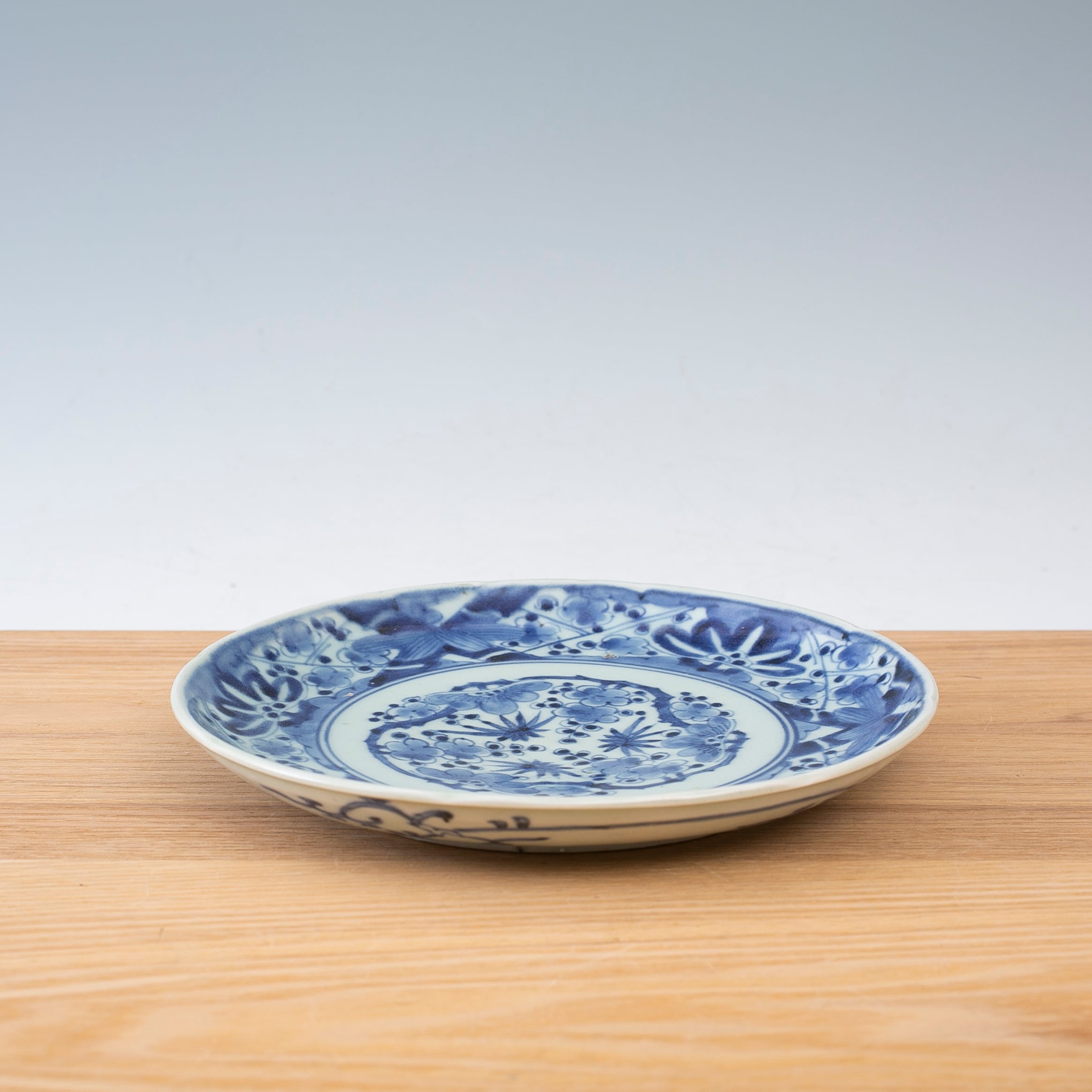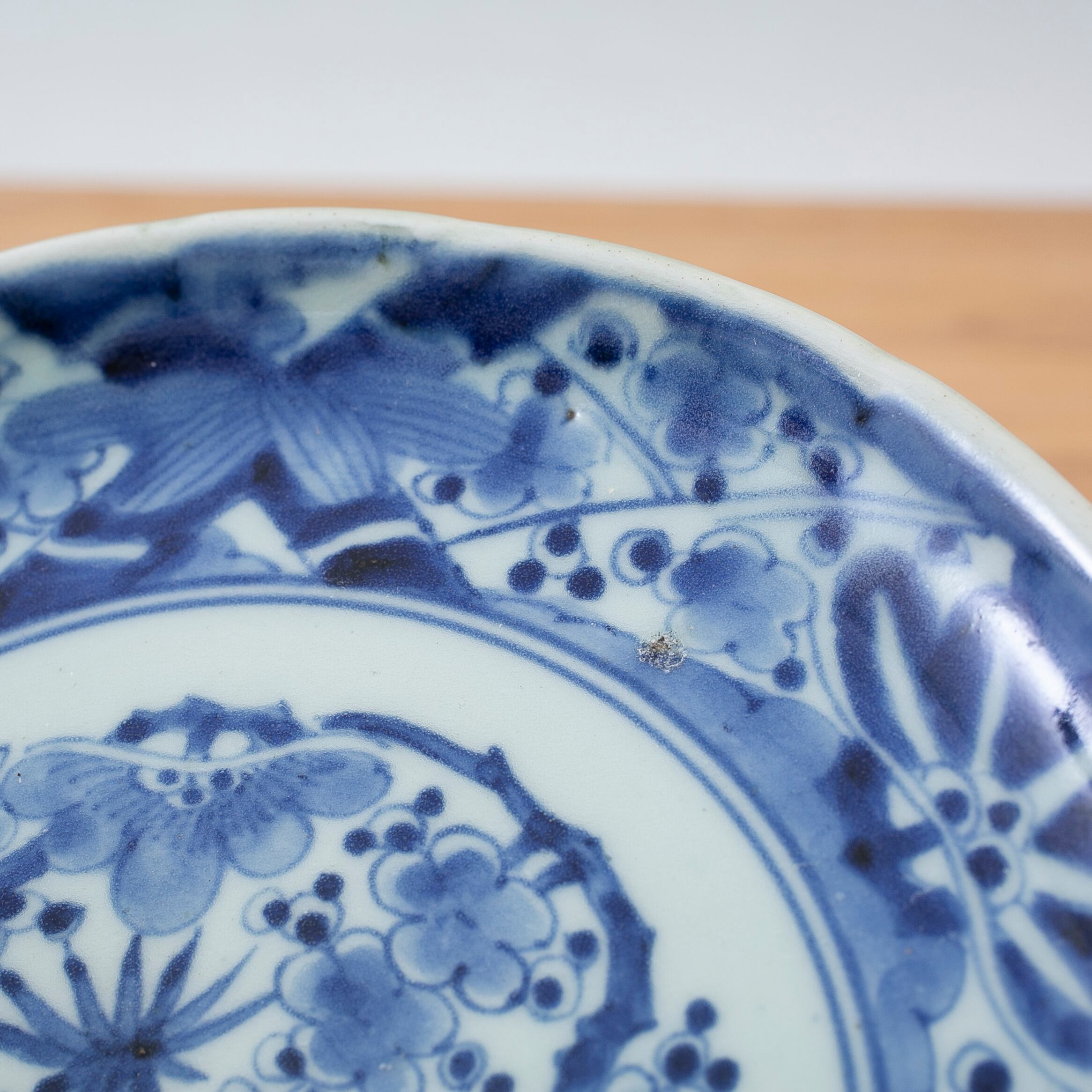 伊万里 染付 松竹梅文 六寸 6寸 約19センチ 平皿 プレート 映える器 富貴長春銘 和骨董 日本の美 日本古陶磁 暮らしの骨董 生活骨董 用の美 アンティーク かわいい骨董 江戸時代 古伊万里 コレクション 縁側面 蛸唐草【BC219】 | 3hige antique store | 京都・古門前の古美術店 | 三髭堂