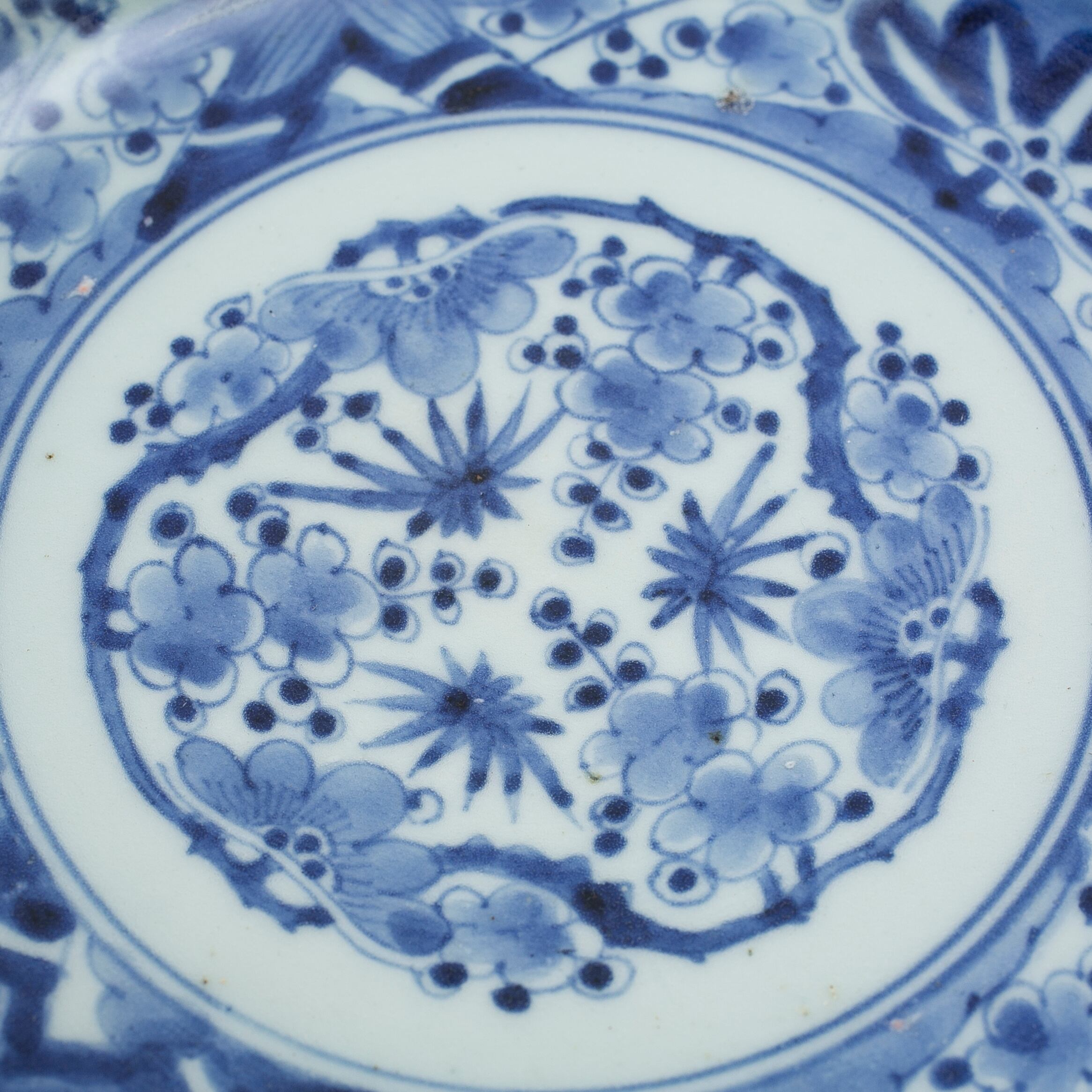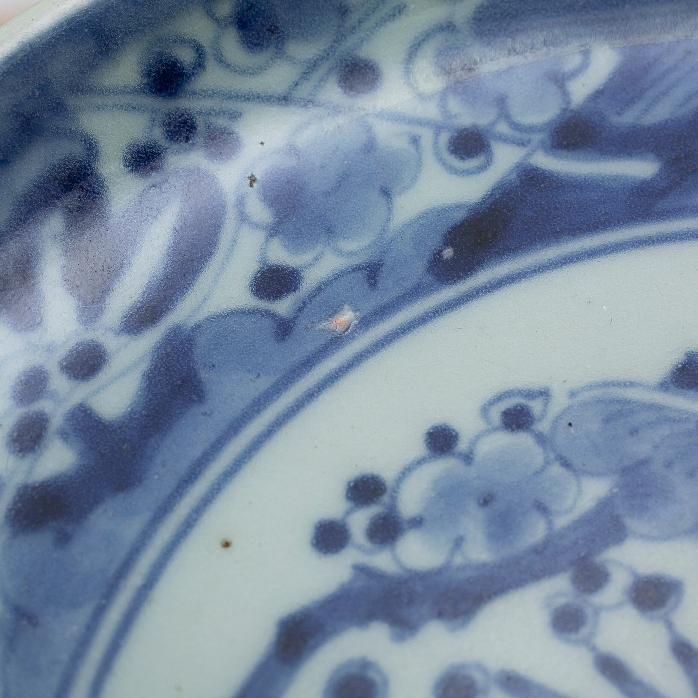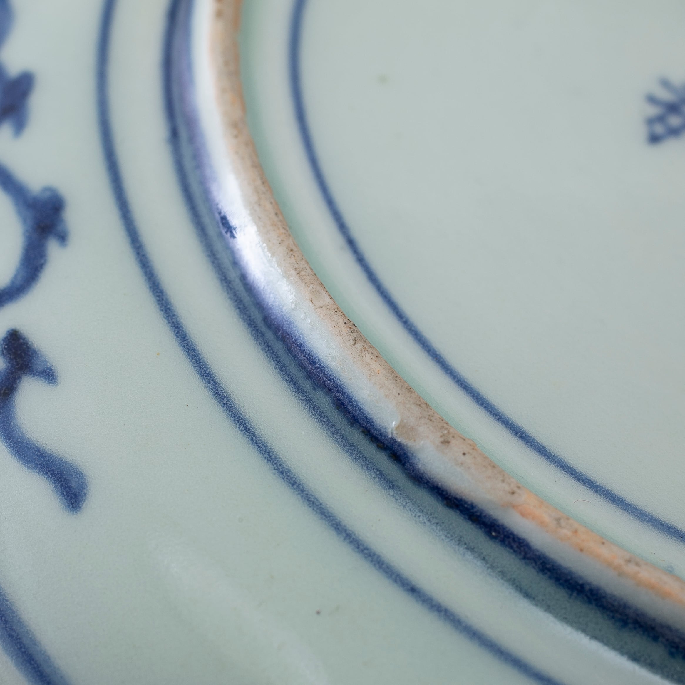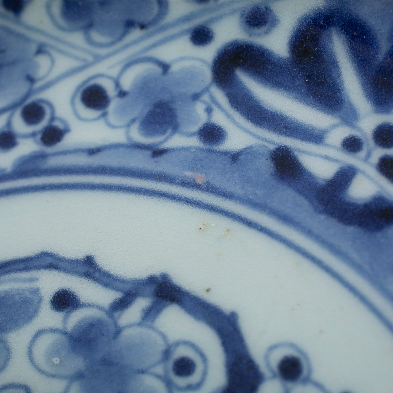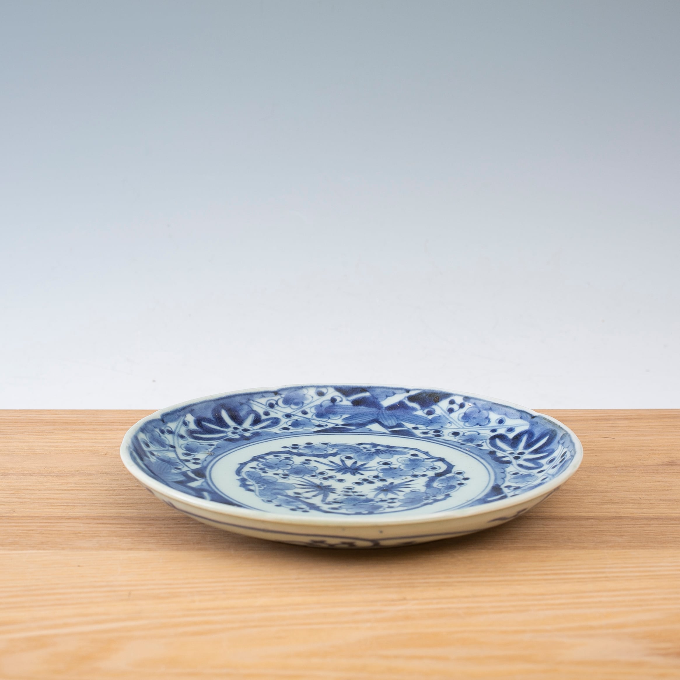伊万里 染付 松竹梅文 六寸 6寸 約19センチ 平皿 プレート 映える器 富貴長春銘 和骨董 日本の美 日本古陶磁 暮らしの骨董 生活骨董 用の美 アンティーク かわいい骨董 江戸時代 古伊万里 コレクション 縁側面 蛸唐草【BC219】 | 3hige antique store | 京都・古門前の古美術店 | 三髭堂