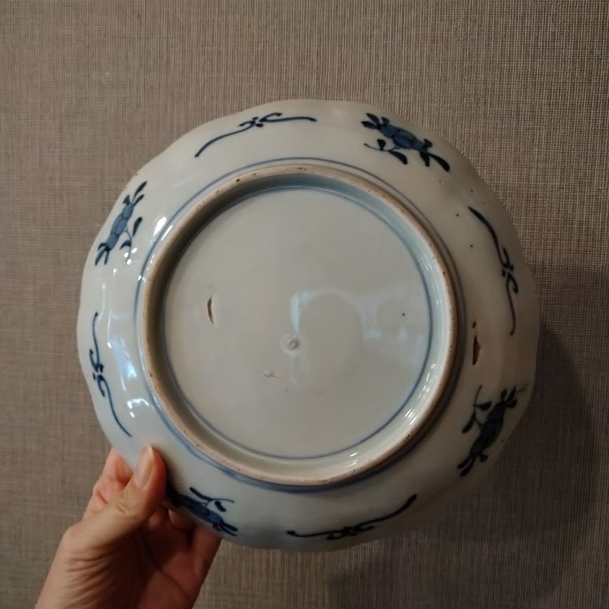 【スタッフから一言】見込みの花盆文は17世紀末から18世紀にかけて、伊万里焼のみならず中国の五彩にもよく描かれた文様。どこか洋皿とも通じる雰囲気を持ったお皿です。約22センチなので、メインプレート、前菜を少量ずつ、パスタ等、様々にお使いいただけます。