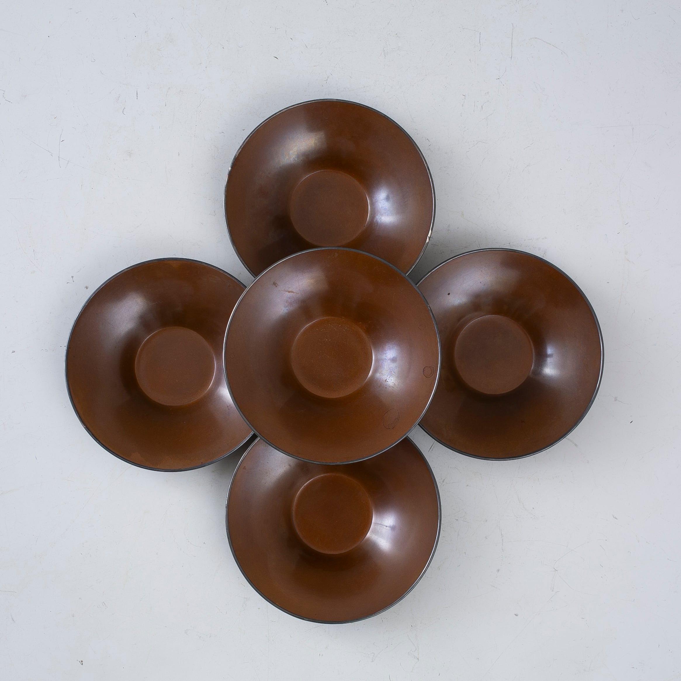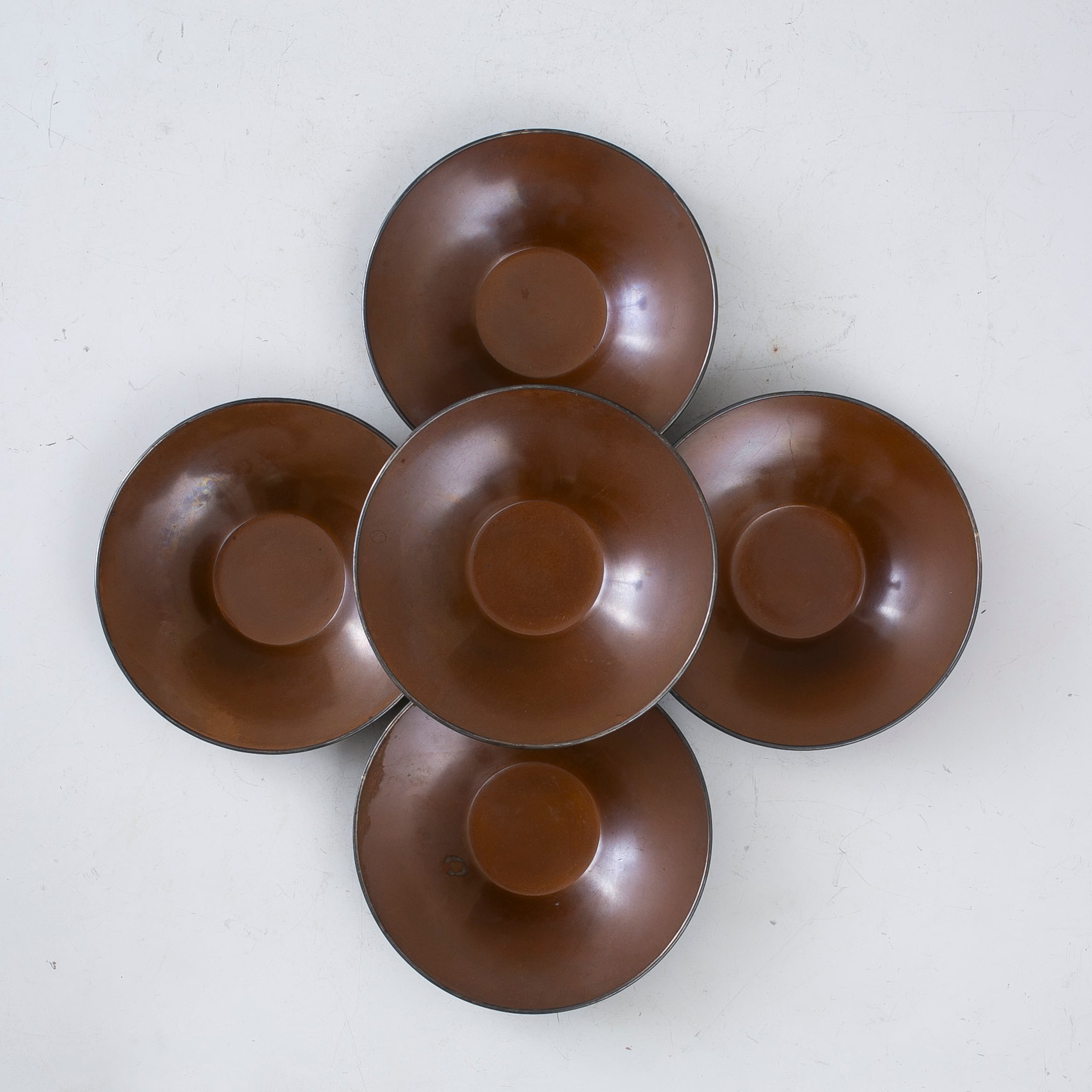 黄銅 銀覆輪 茶托 丸形 円式 煎茶道具 茶道具 托子 金工 金属工芸 銀縁 金龍堂 松尾忠久 10客 10枚 揃い 共箱 和骨董 古玩 アンティーク【BB201】