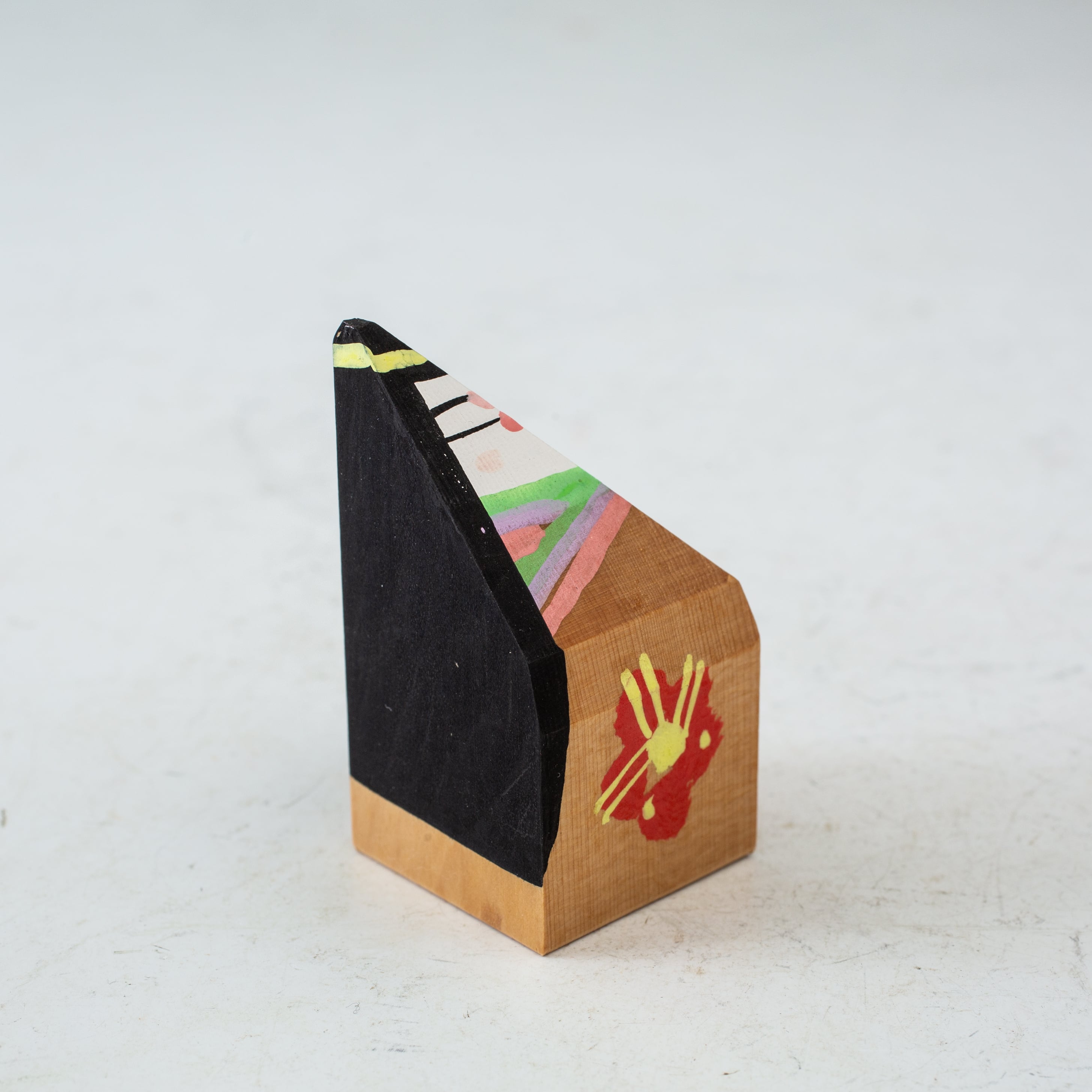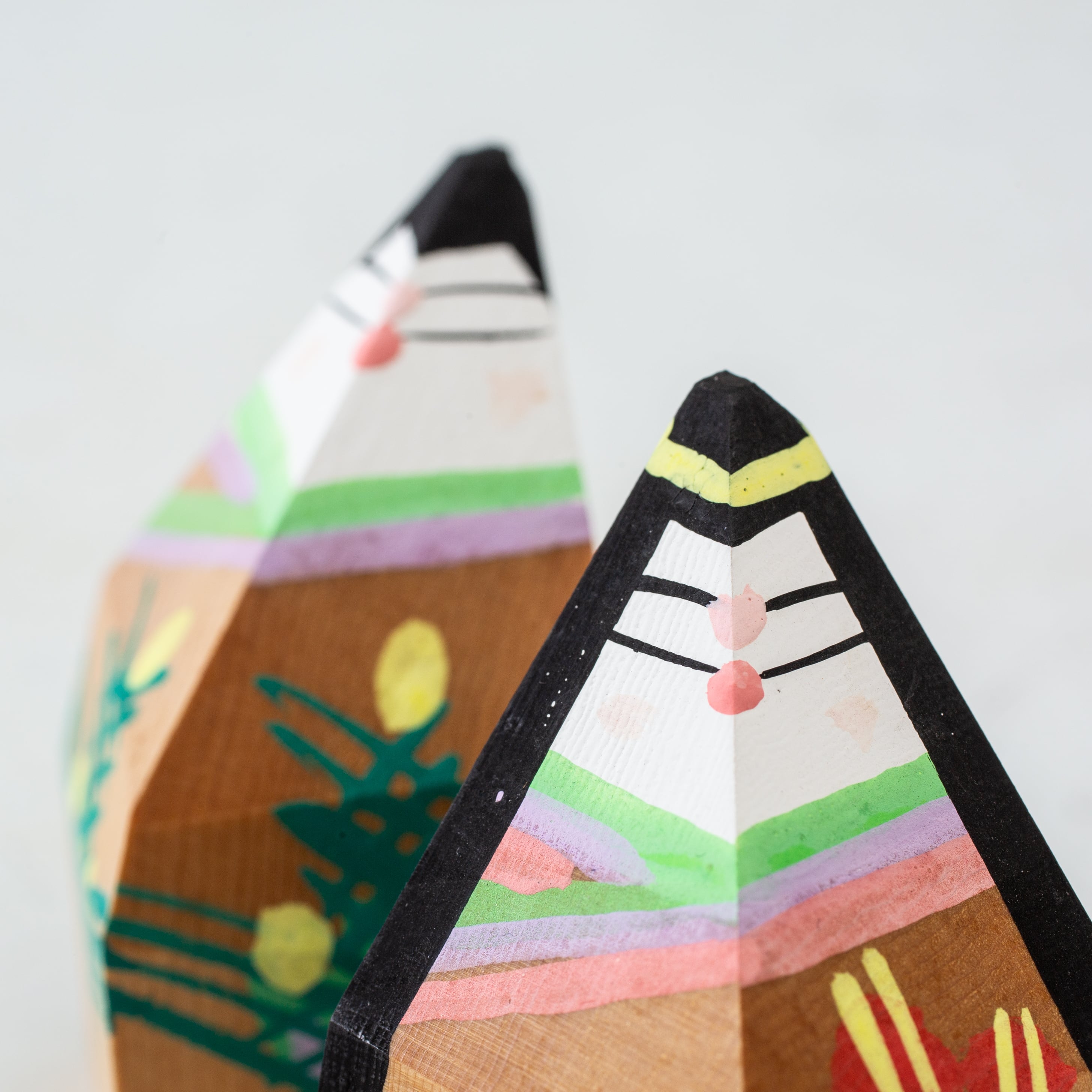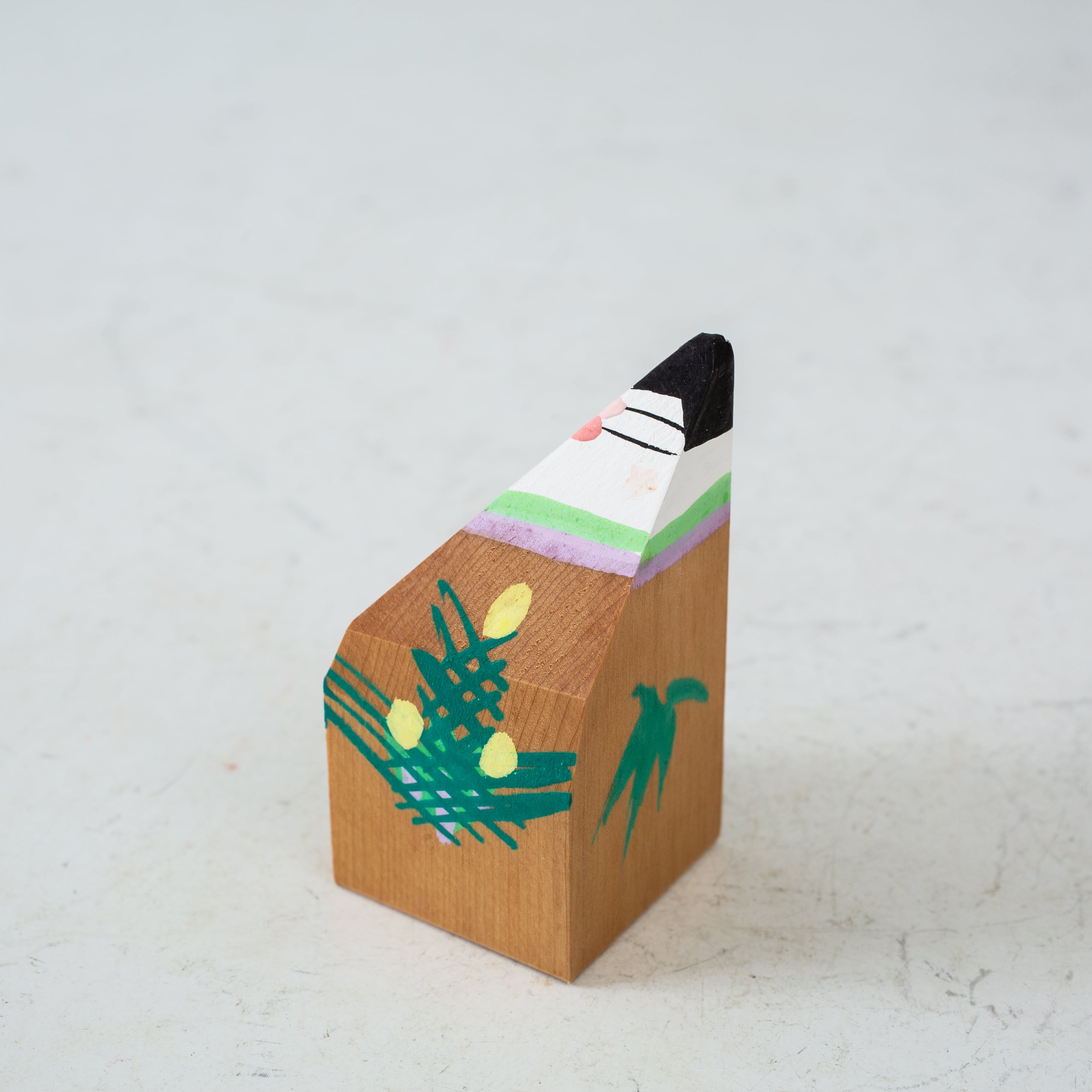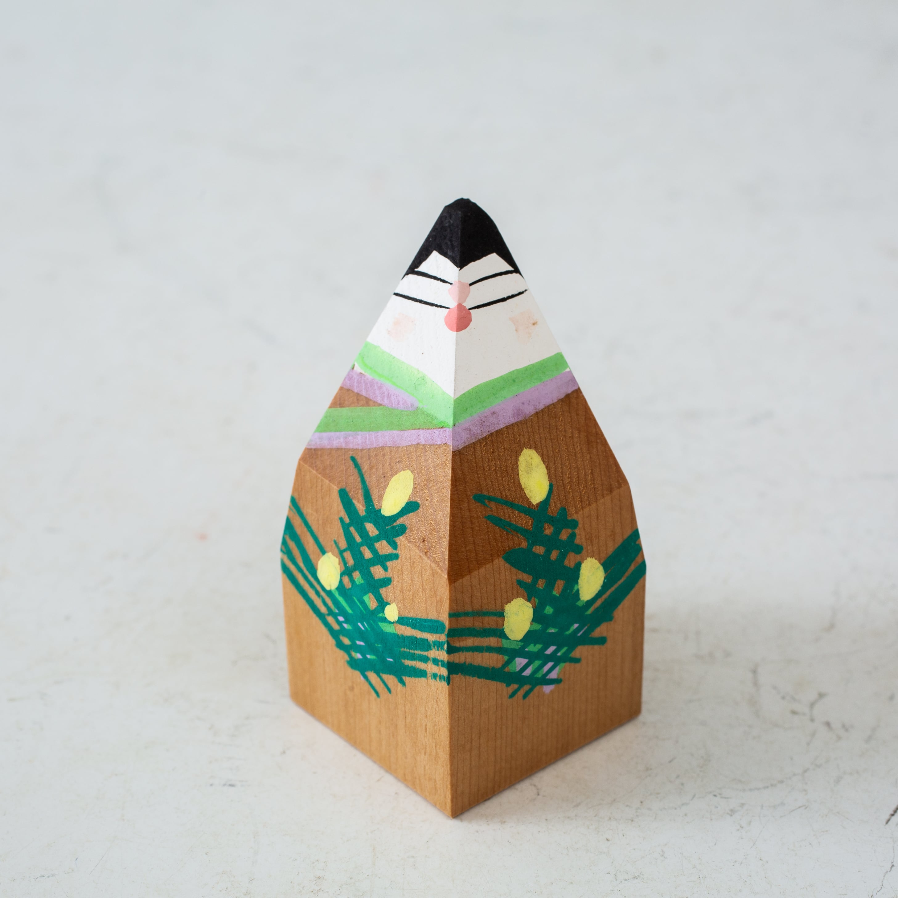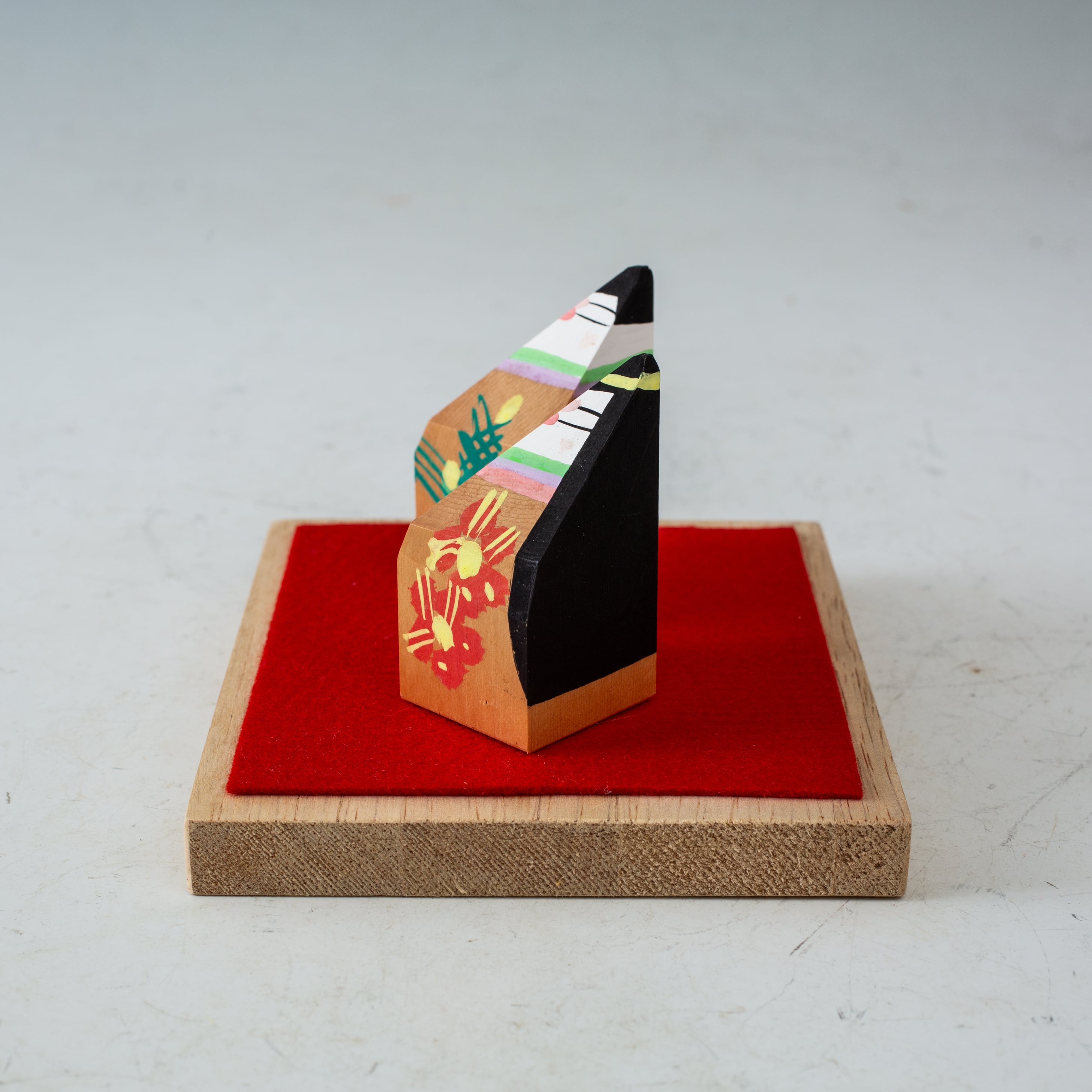 ぬくもりある雰囲気のお雛様です。屮芊彫はナタのように重くカミソリのように切れる「セン」という大刀を使用し、吉岡は干支の動物や雛など可愛らしい作品を制作しました。経年によるスレやヨゴレもありますが季節のインテリアにおすすめです。