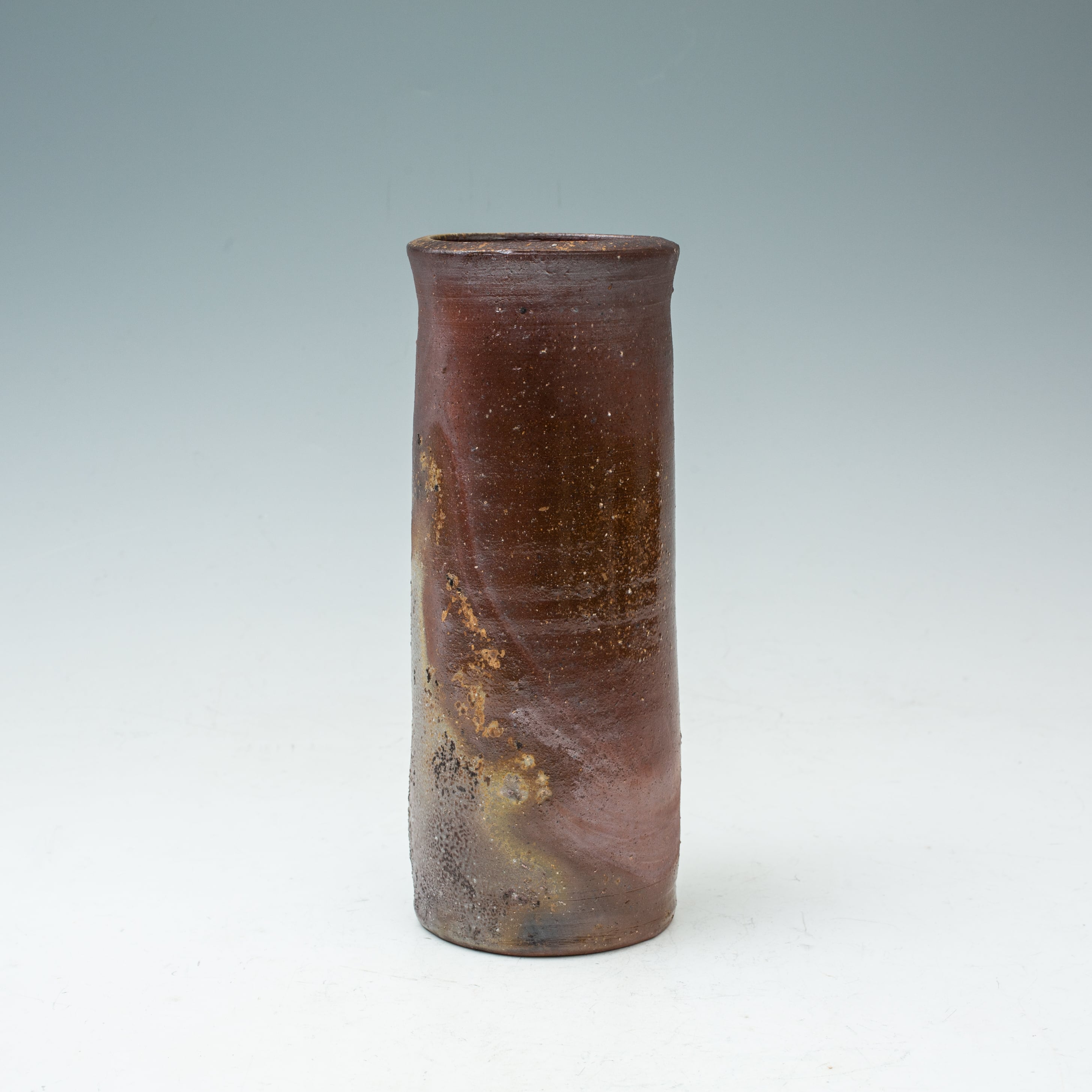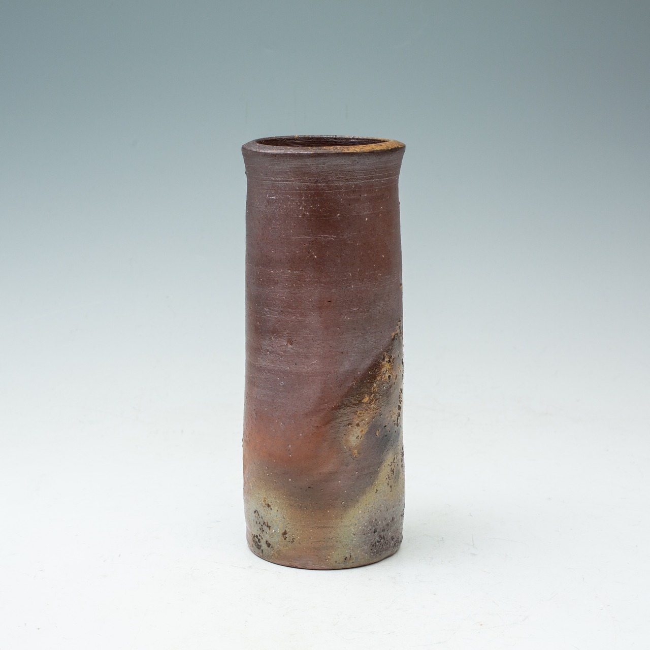 備前焼 三村陶伯 花瓶 花器 花入 筒 フラワーベース インテリア 置物 オブジェ 茶会 茶道具 玄関飾り人間国宝山本陶秀に師事 作家物 日本陶磁 共箱【BS5】