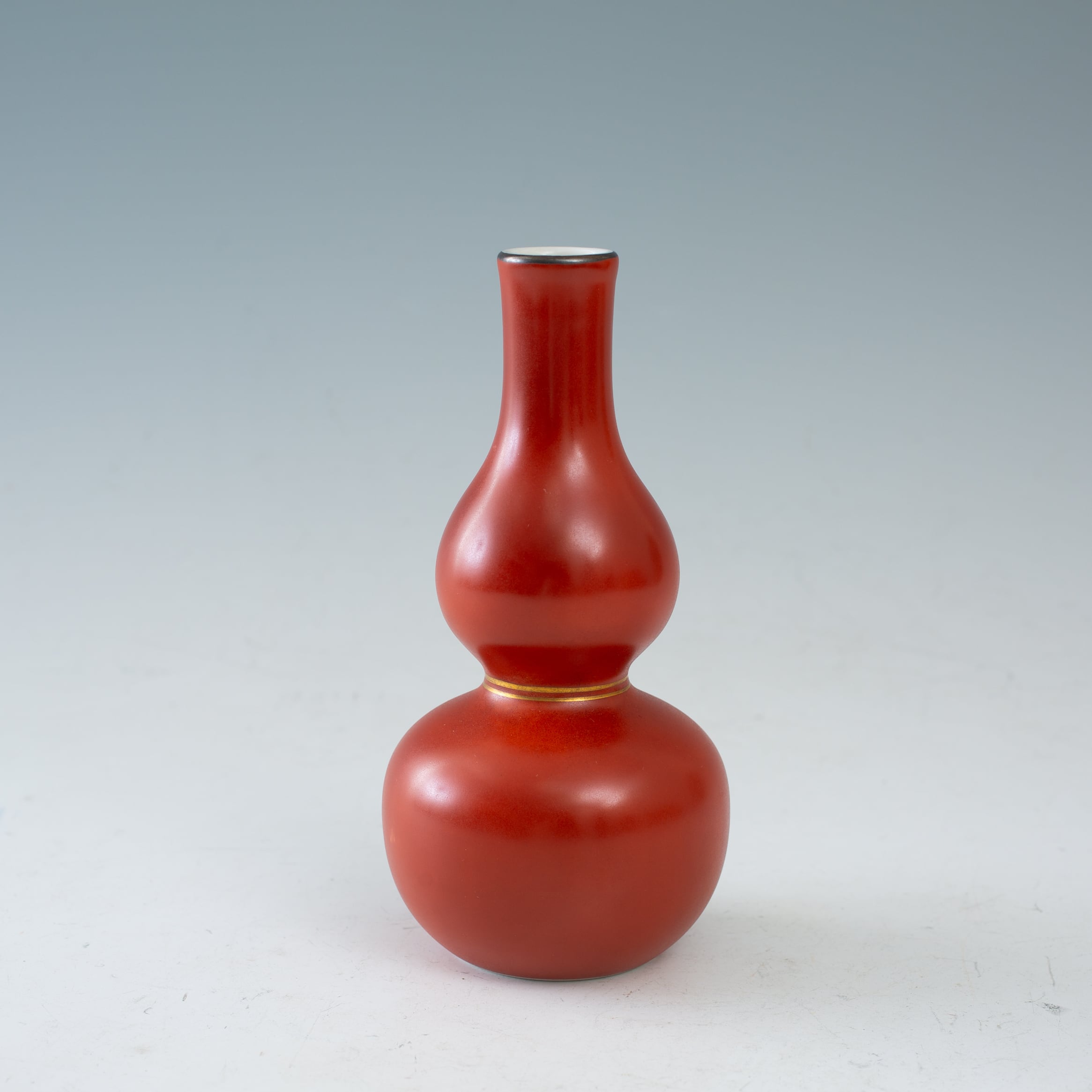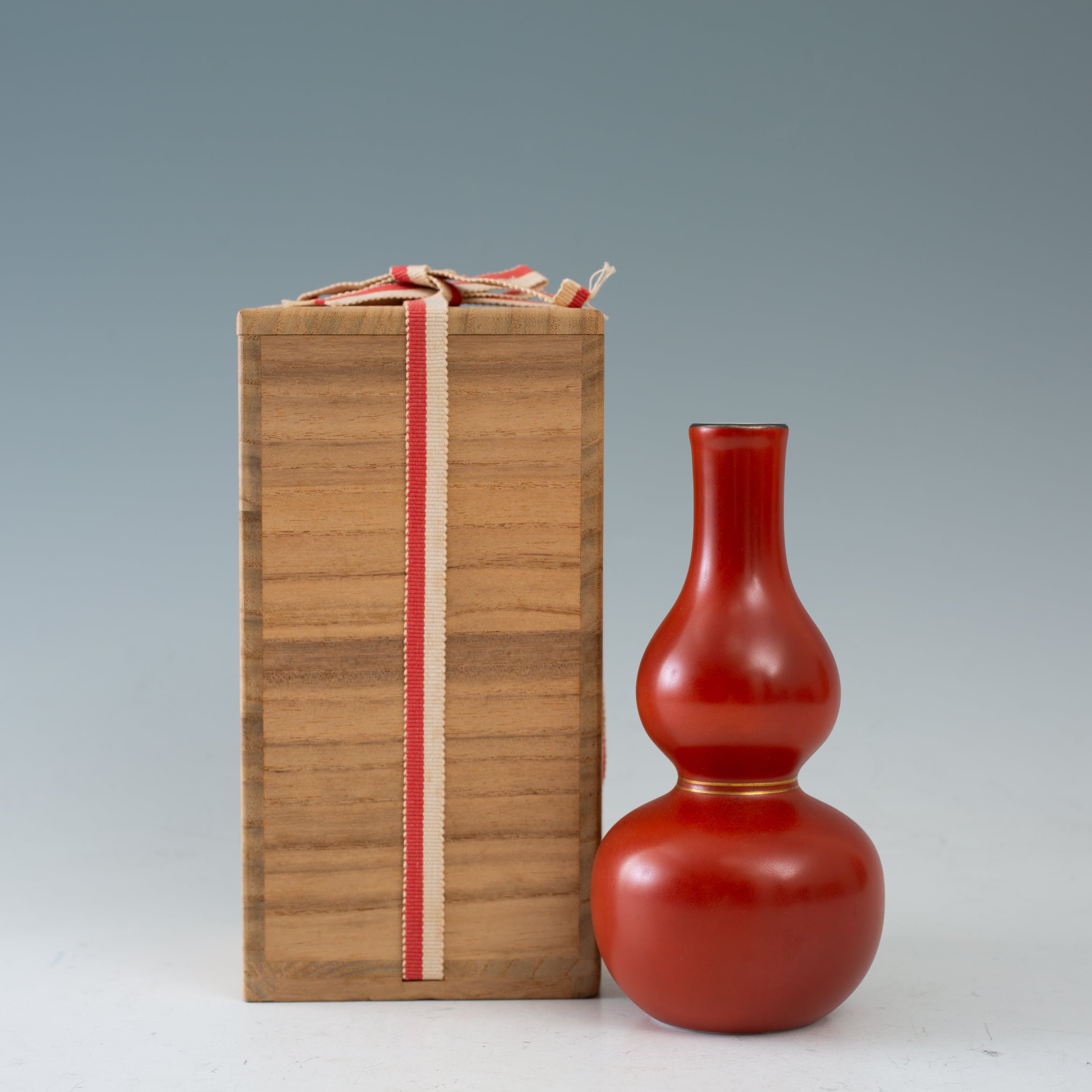 十六代 16代 永楽善五郎 即全 赤瓷 瓢 瓢箪形 花入 共箱 赤絵 金彩 徳利としても 花器 花瓶 フラワーベース 酒器 茶道具 華道具 茶会 室礼千家十職 京都陶磁 インテリア フラワーベース モダンデザイン 用の美 【BC228】
