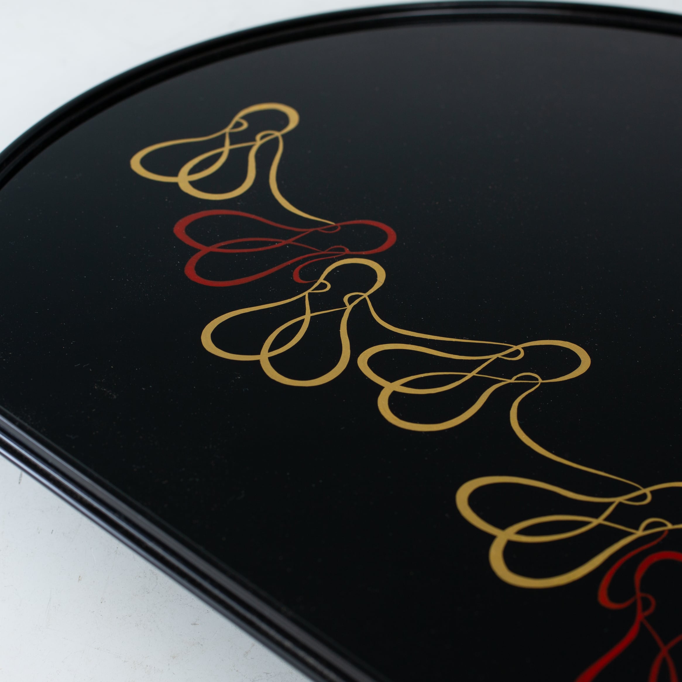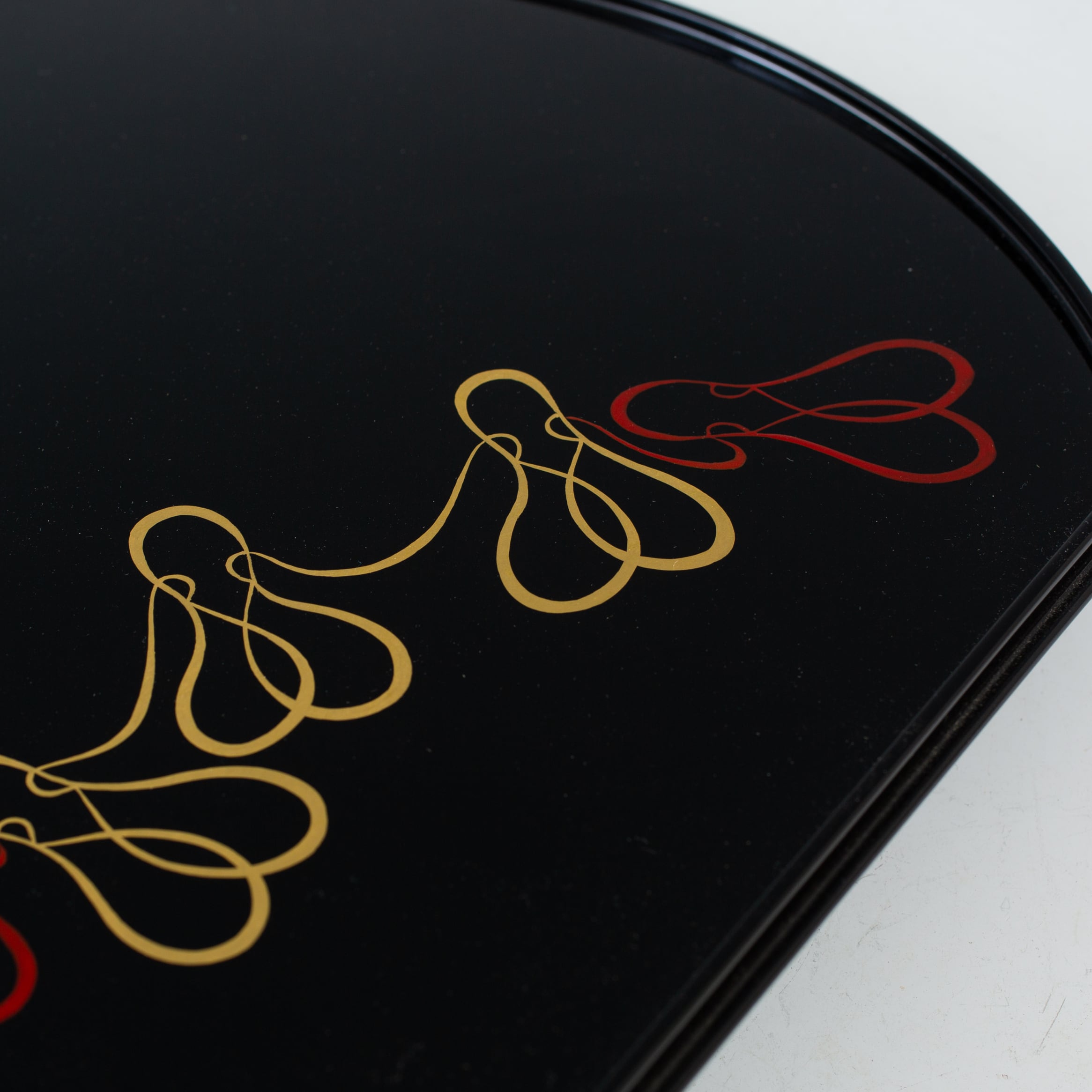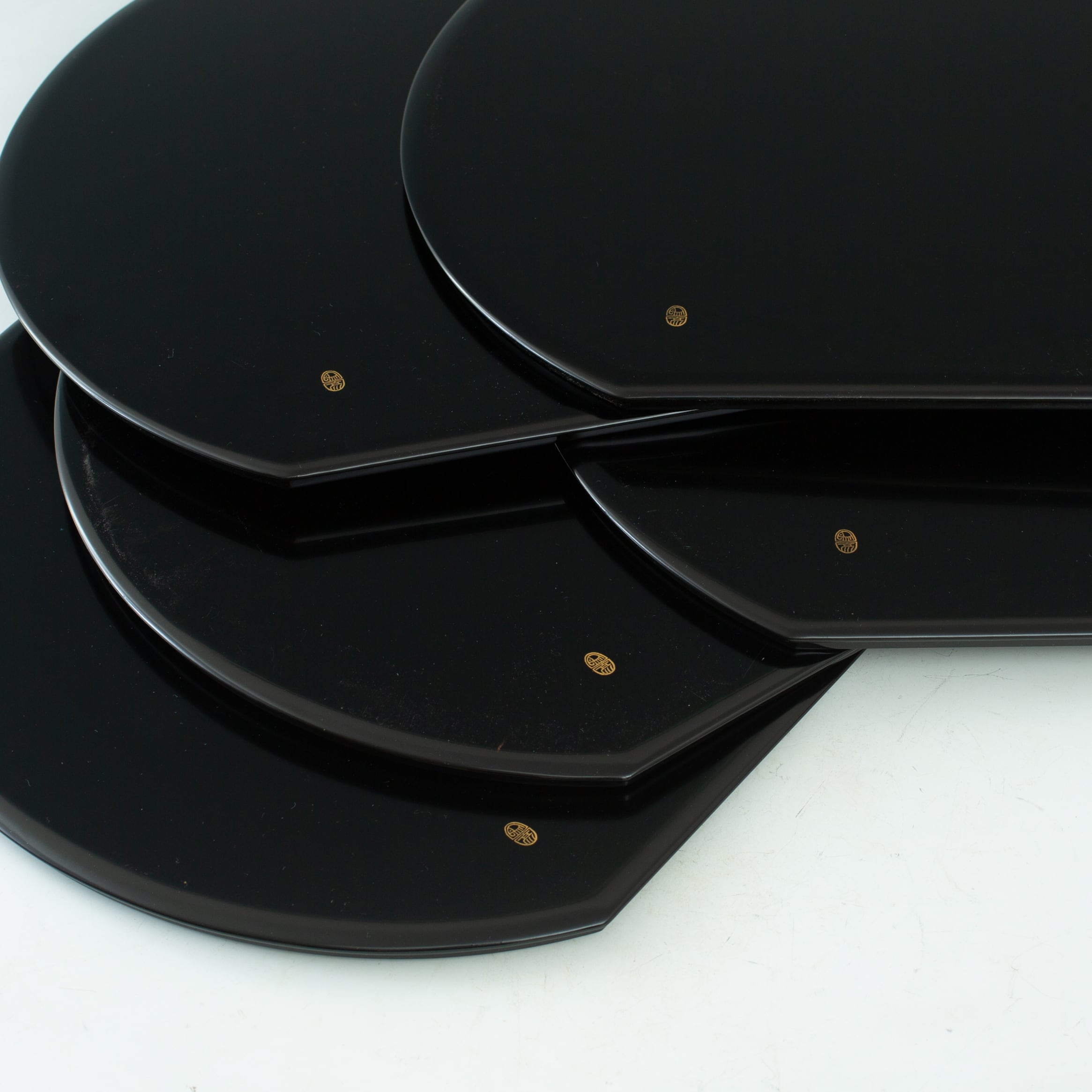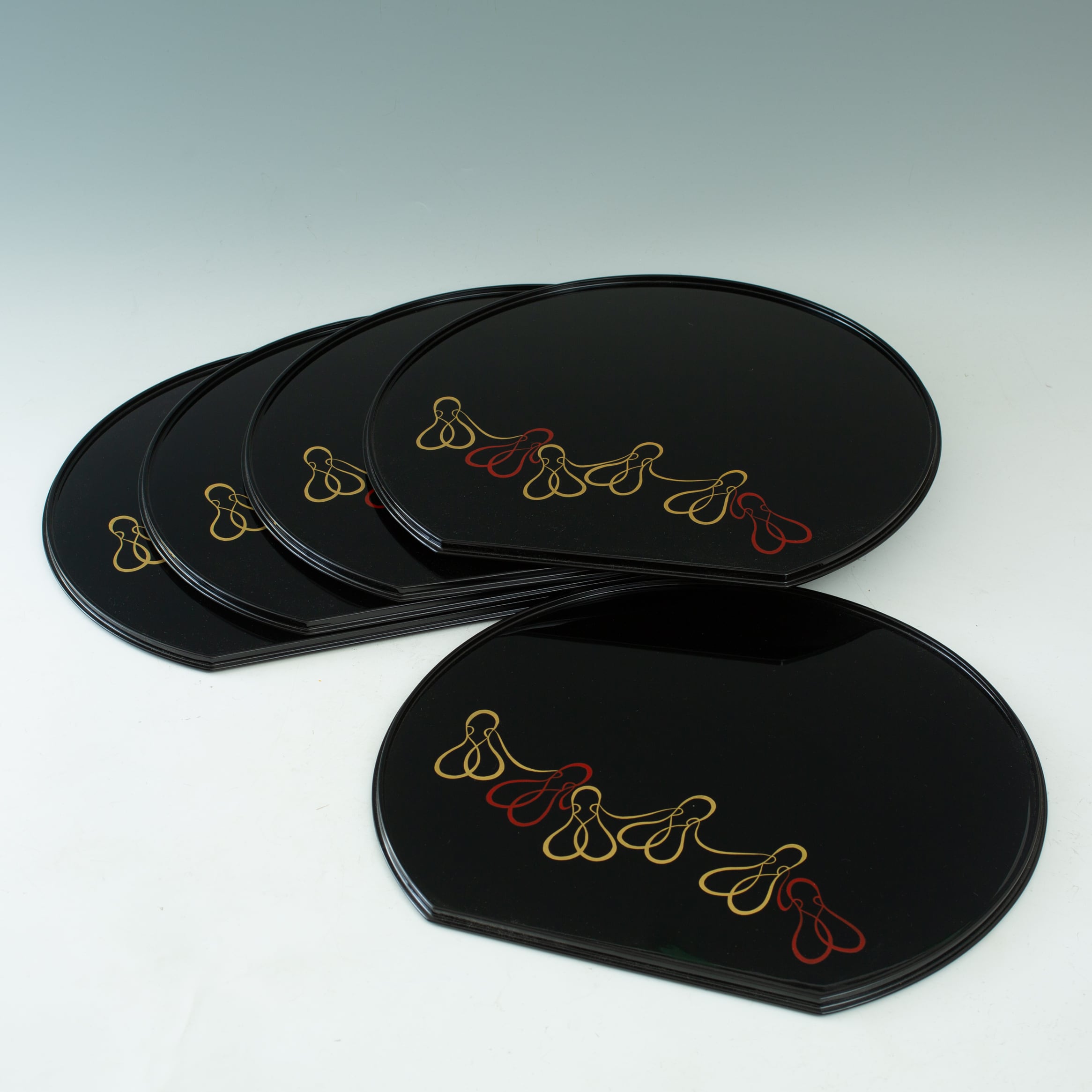 瓢つなぎ 瓢箪 六瓢 半月膳 五枚組 5枚セット 半月盆 平安象彦 吉祥文様 共箱 京塗 京漆器 パーティ おもてなし 茶席 懐石の器 茶道具 茶会 老舗漆器店 和食器 漆芸 お膳 お盆 【BC229】
