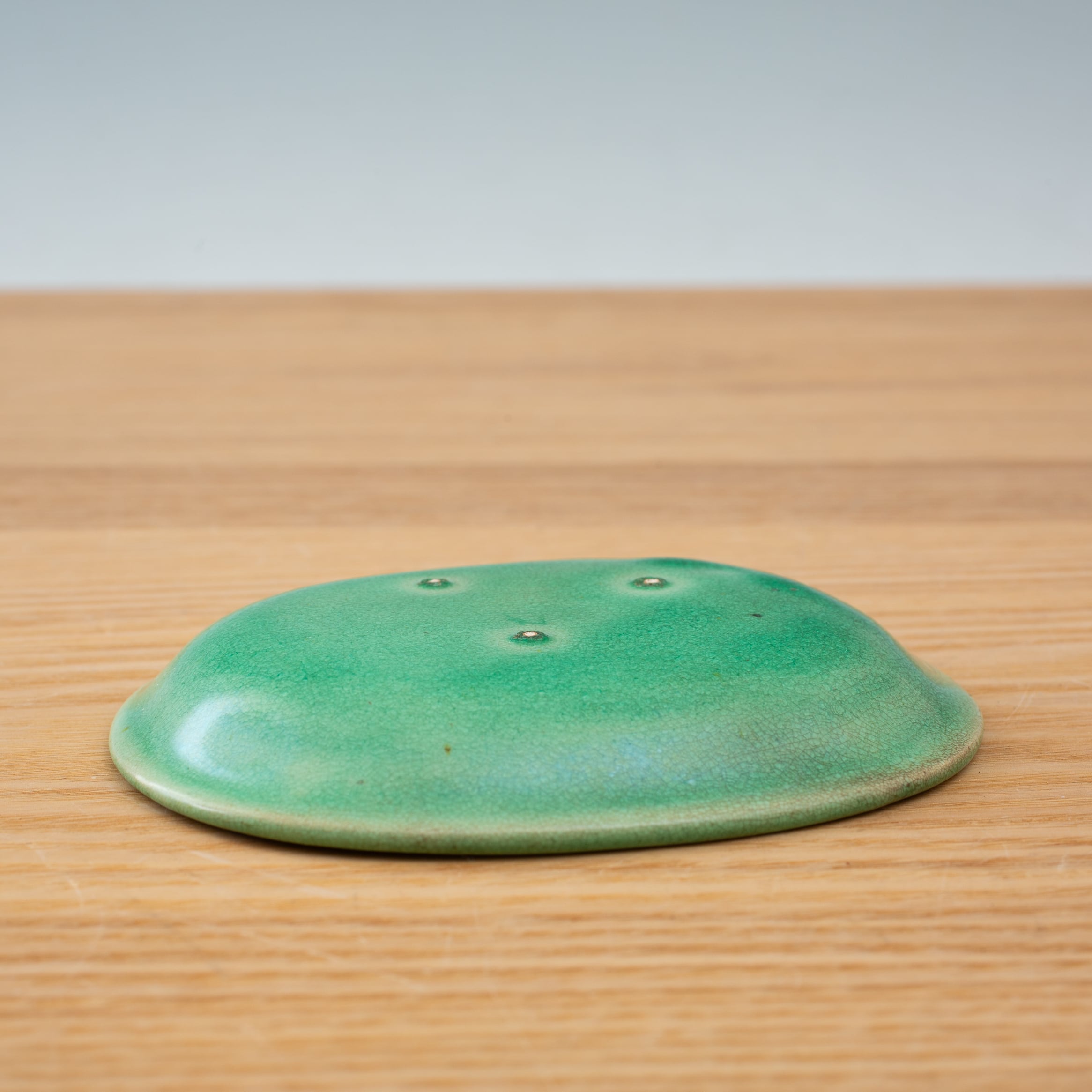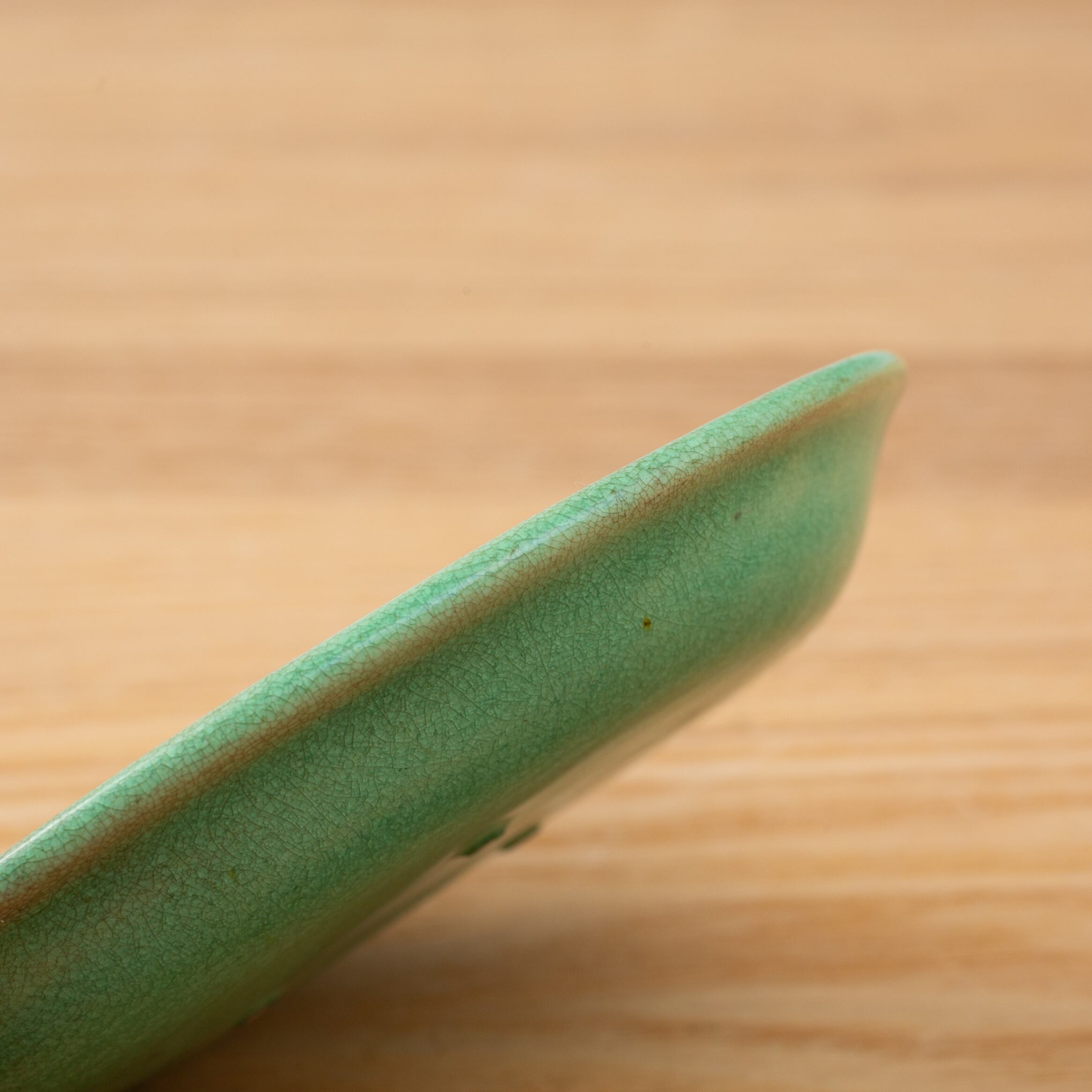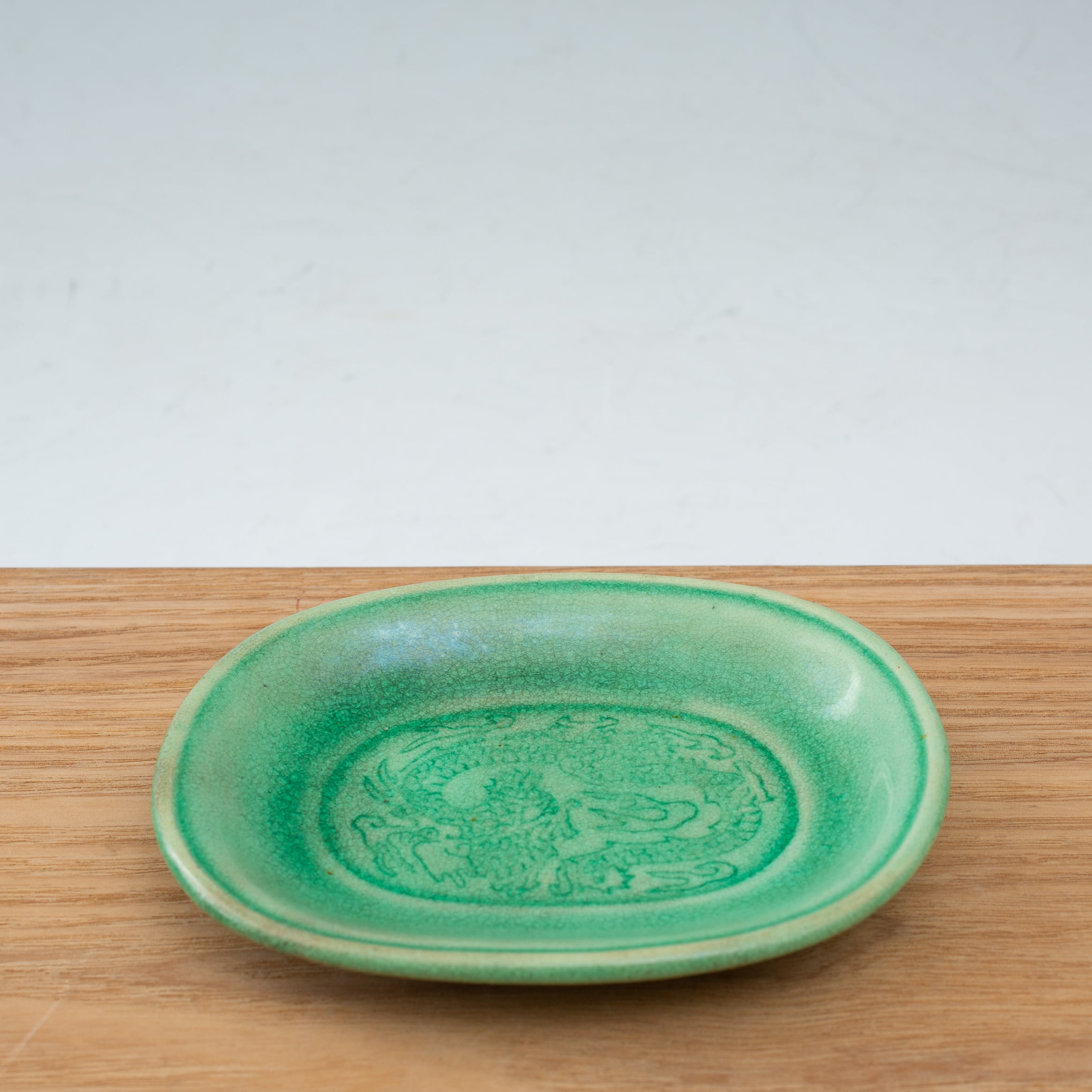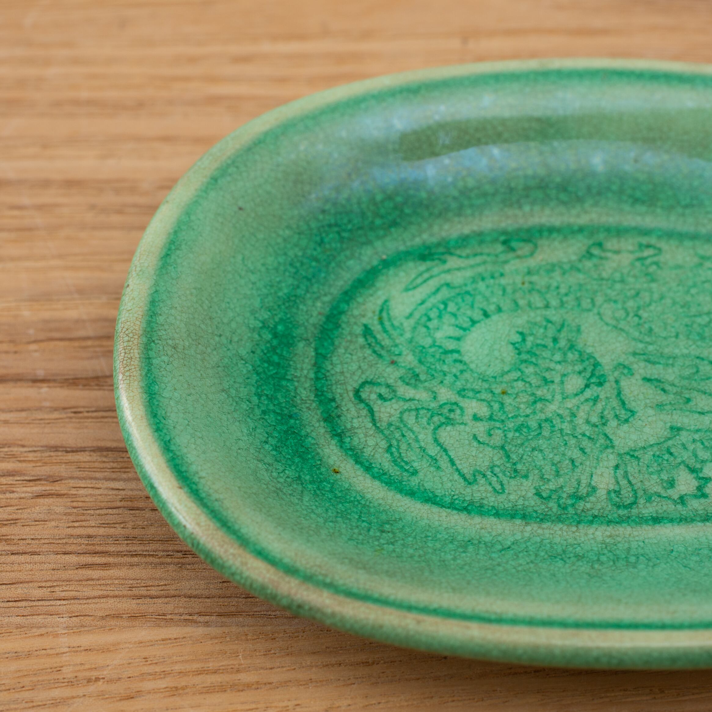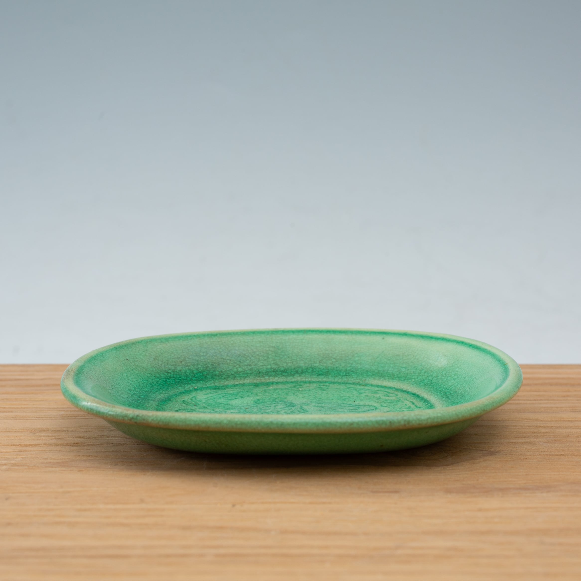 珉平焼 緑釉 薄いグリーン 小判形 龍文様 小皿 カラフル 料理屋さんの器 懐石の器 人気 日本陶磁 日本美術 兵庫県の焼物 淡路島の焼物 アンティーク レトロ テーブルコーディネート 淡路焼 用の美 生活骨董【BS18】