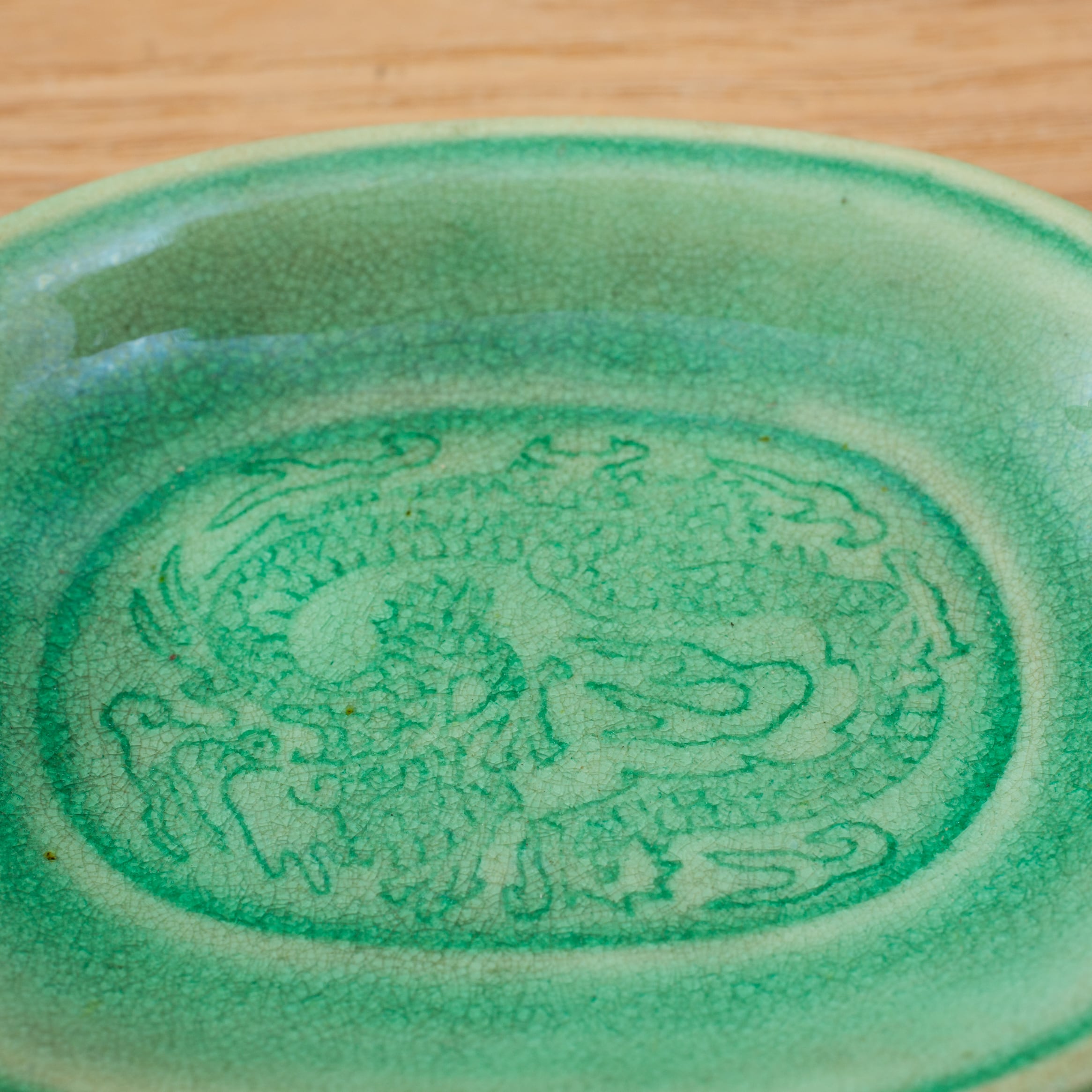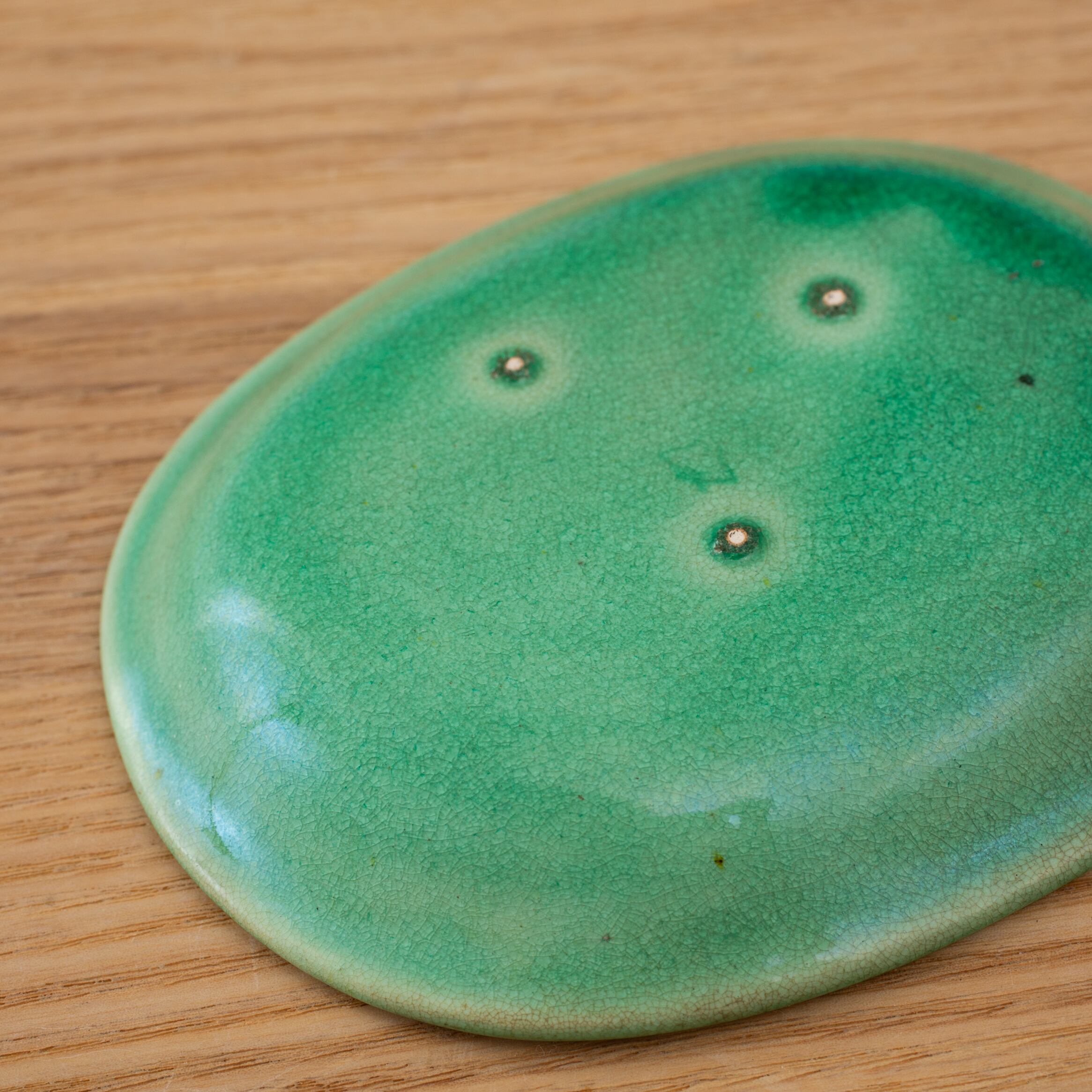 "三髭堂オンラインショップをご覧頂きまして誠にありがとうございます。こちらの商品は、珉平焼 緑釉 薄いグリーン 小判形 龍文様 小皿 カラフル 料理屋さんの器 懐石の器 人気 日本陶磁 日本美術 兵庫県の焼物 淡路島の焼物 アンティーク レトロ テーブルコーディネート 淡路焼 用の美 生活骨董【BS18】です。時代なりの汚れなどございますので画像にてご確認下さい。