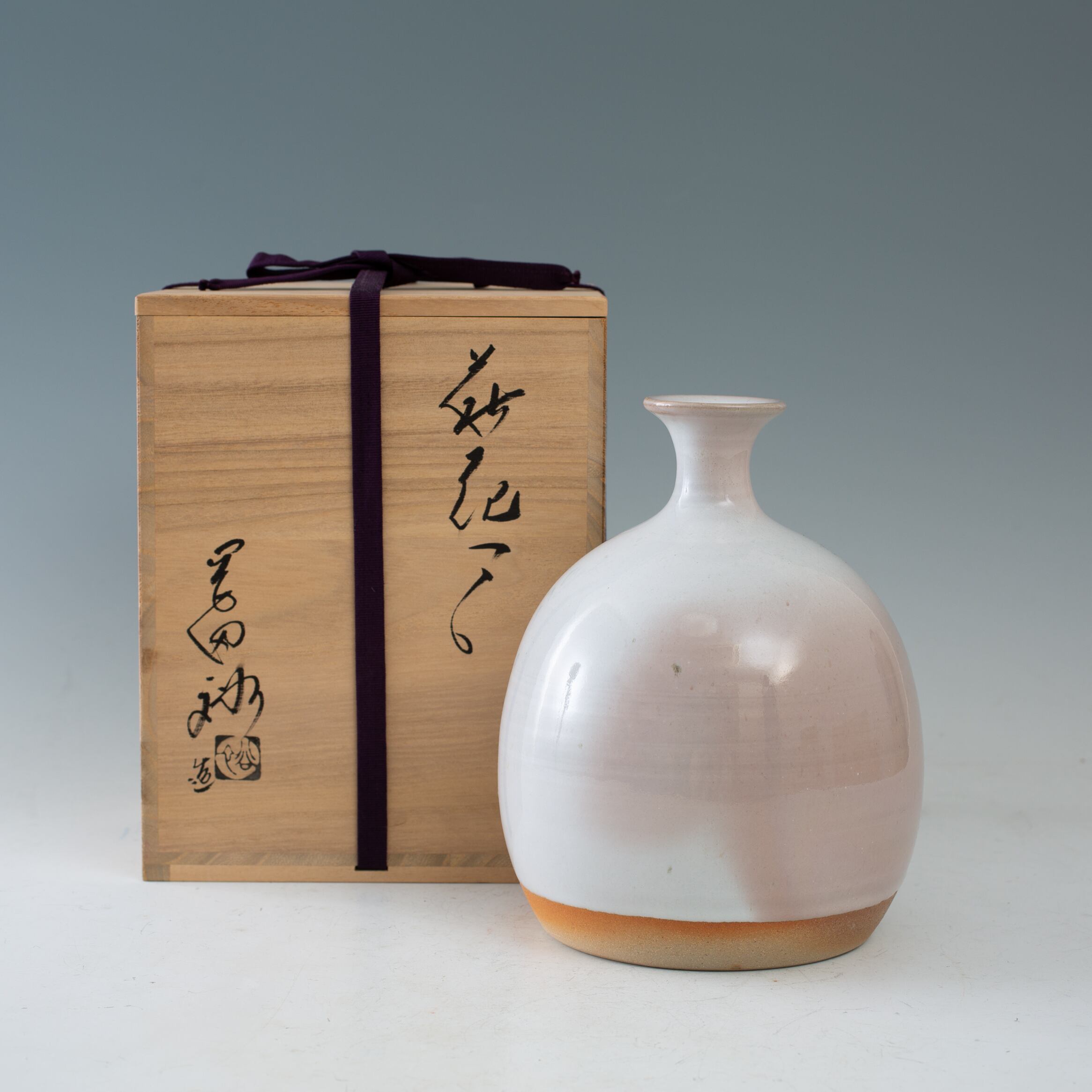 萩焼 岡田裕 花入 花器 花瓶 フラワーベース 共箱 晴雲山岡田窯 山口県の焼物 日本陶磁 インテリア オブジェ 白釉 白い焼物 土物 日本工芸会 【BB205】