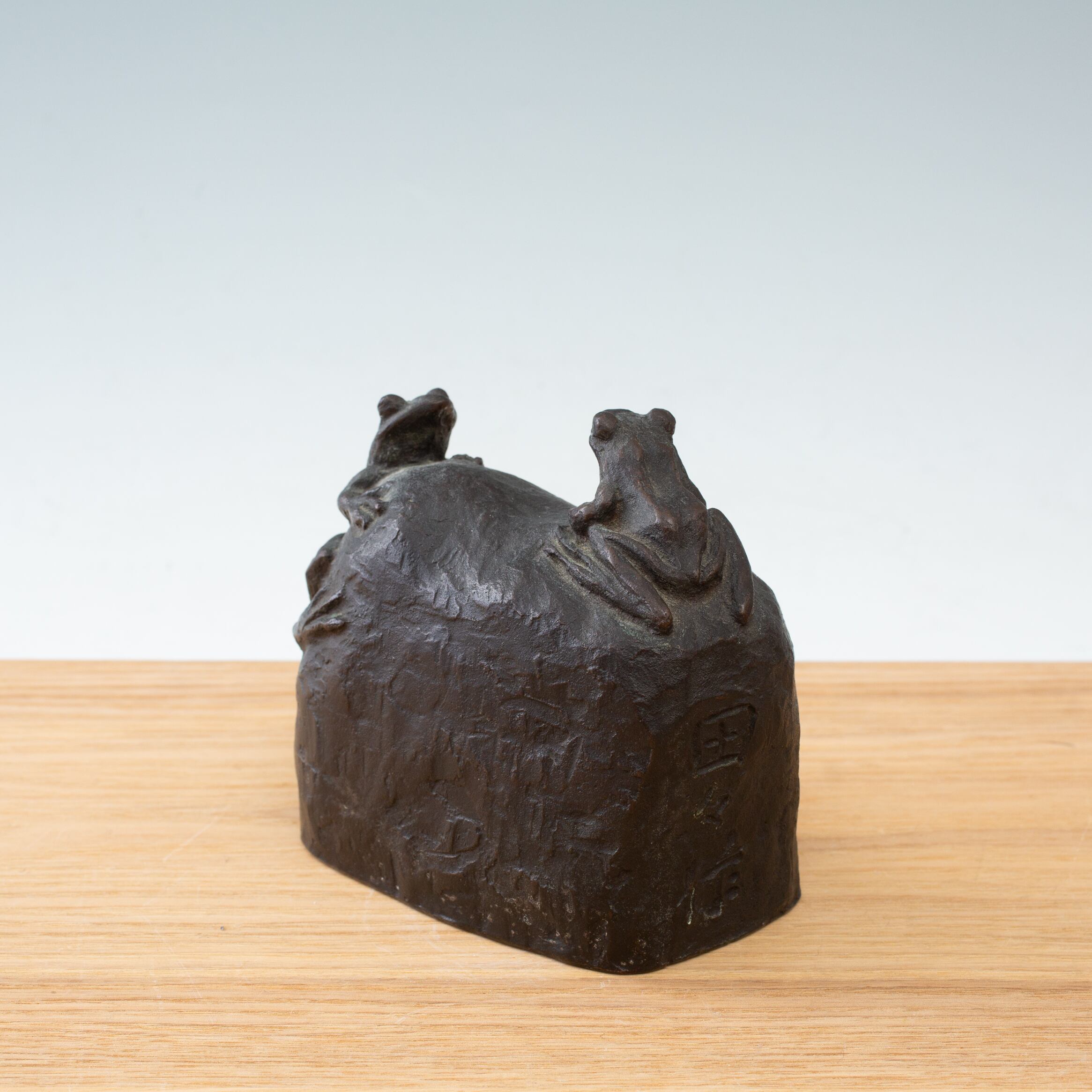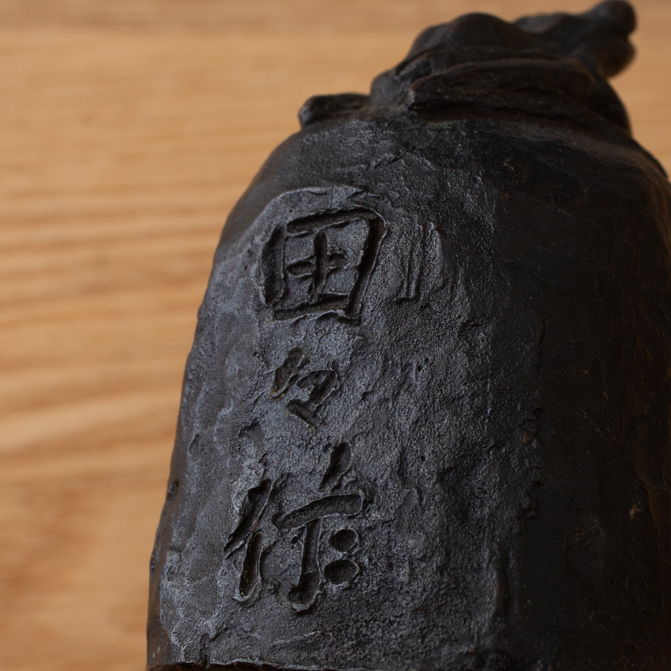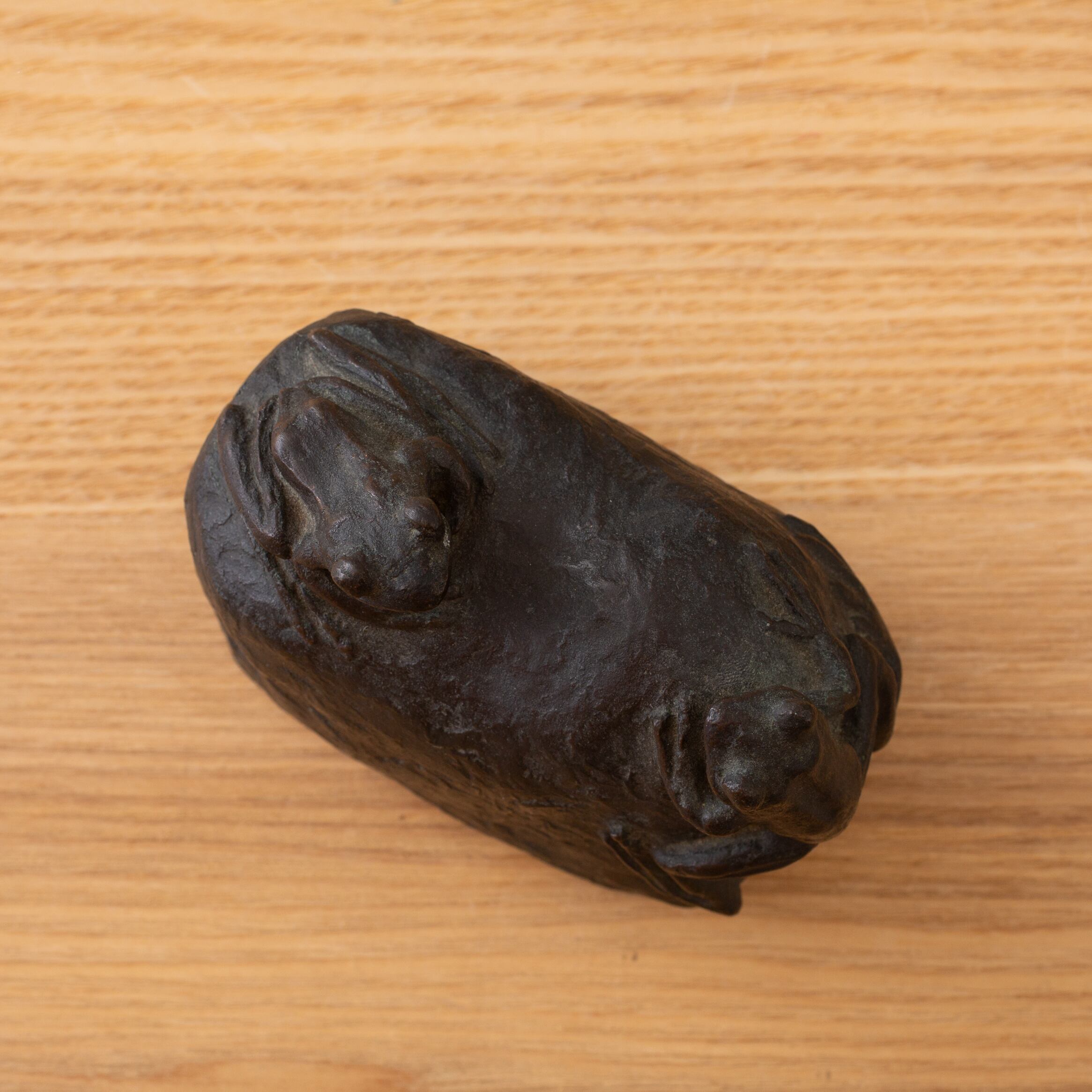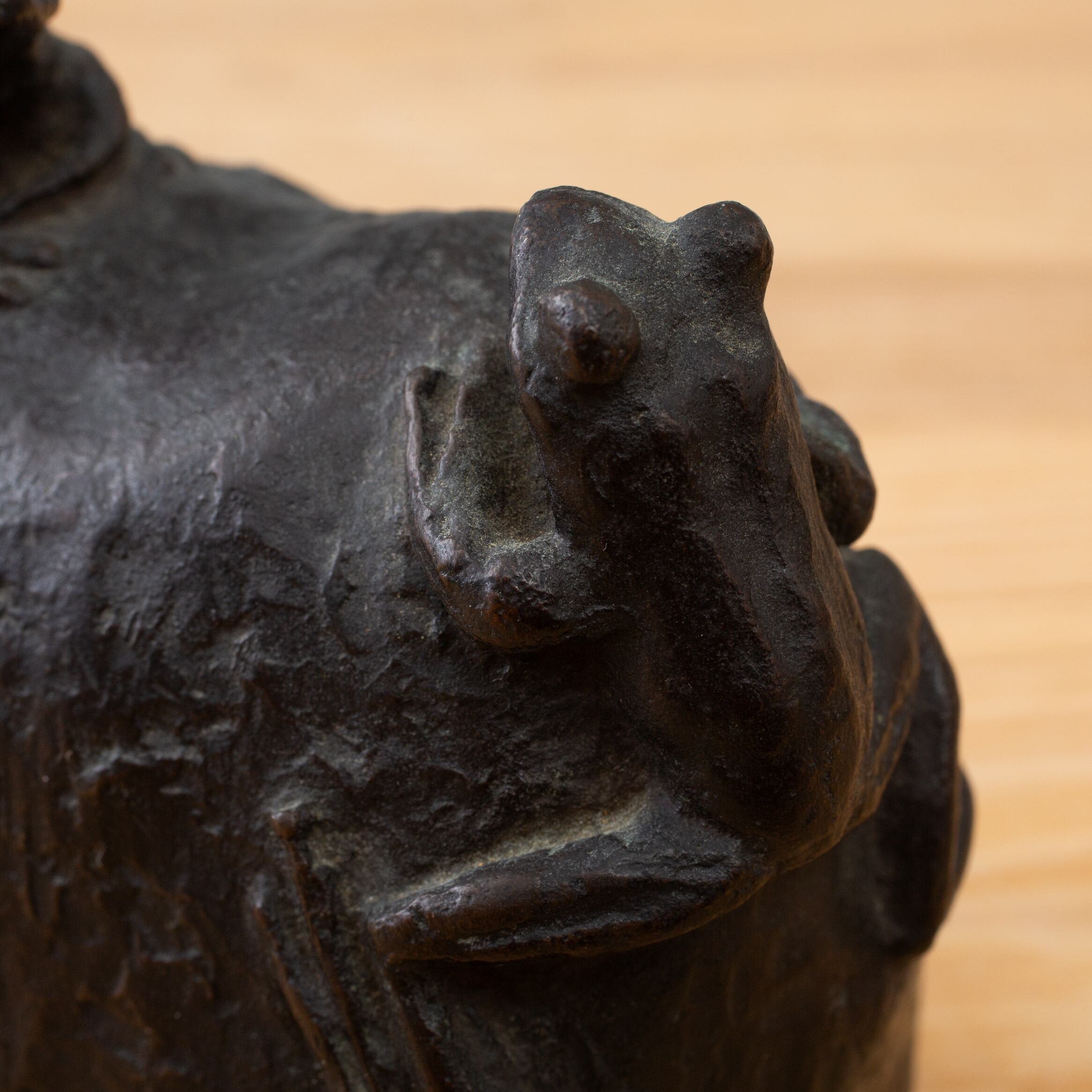 ブロンズ 銅製 蛙 カエル 置物 オブジェ インテリア 田々作 金工 金属工芸 床の間飾り 玄関飾り 室礼 調度品 サイン有 在銘 ペーパーウェイト・文鎮代わりにも【BS33】