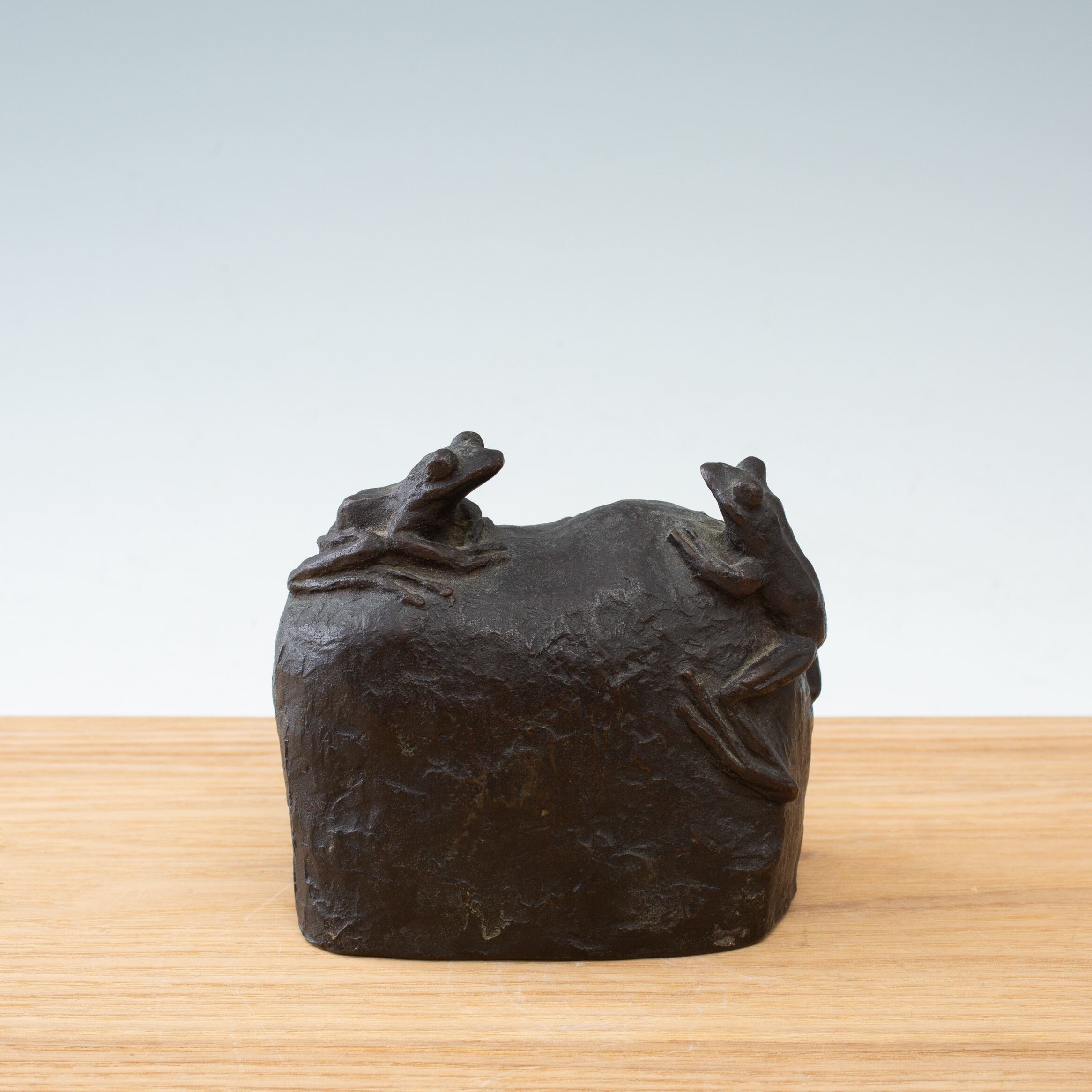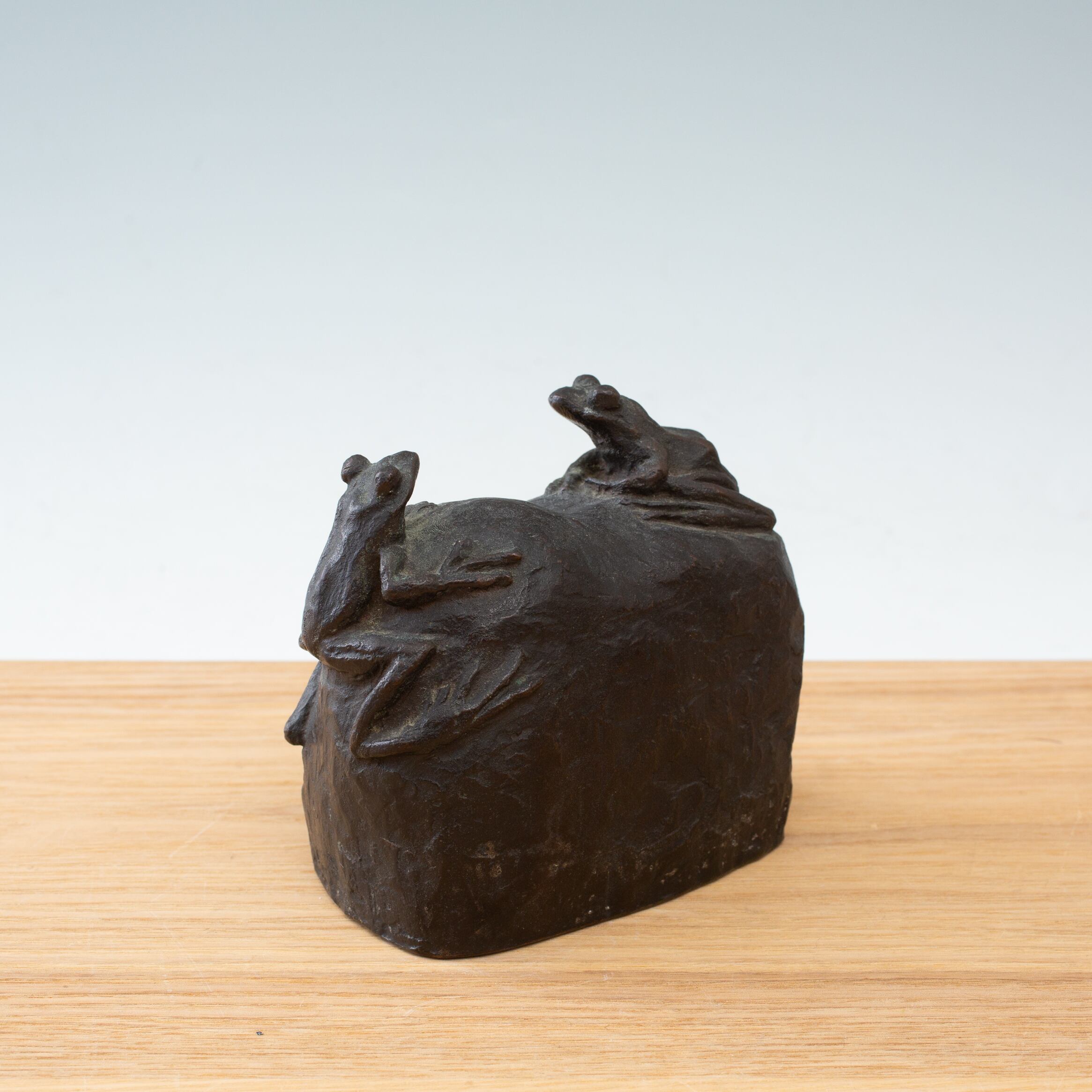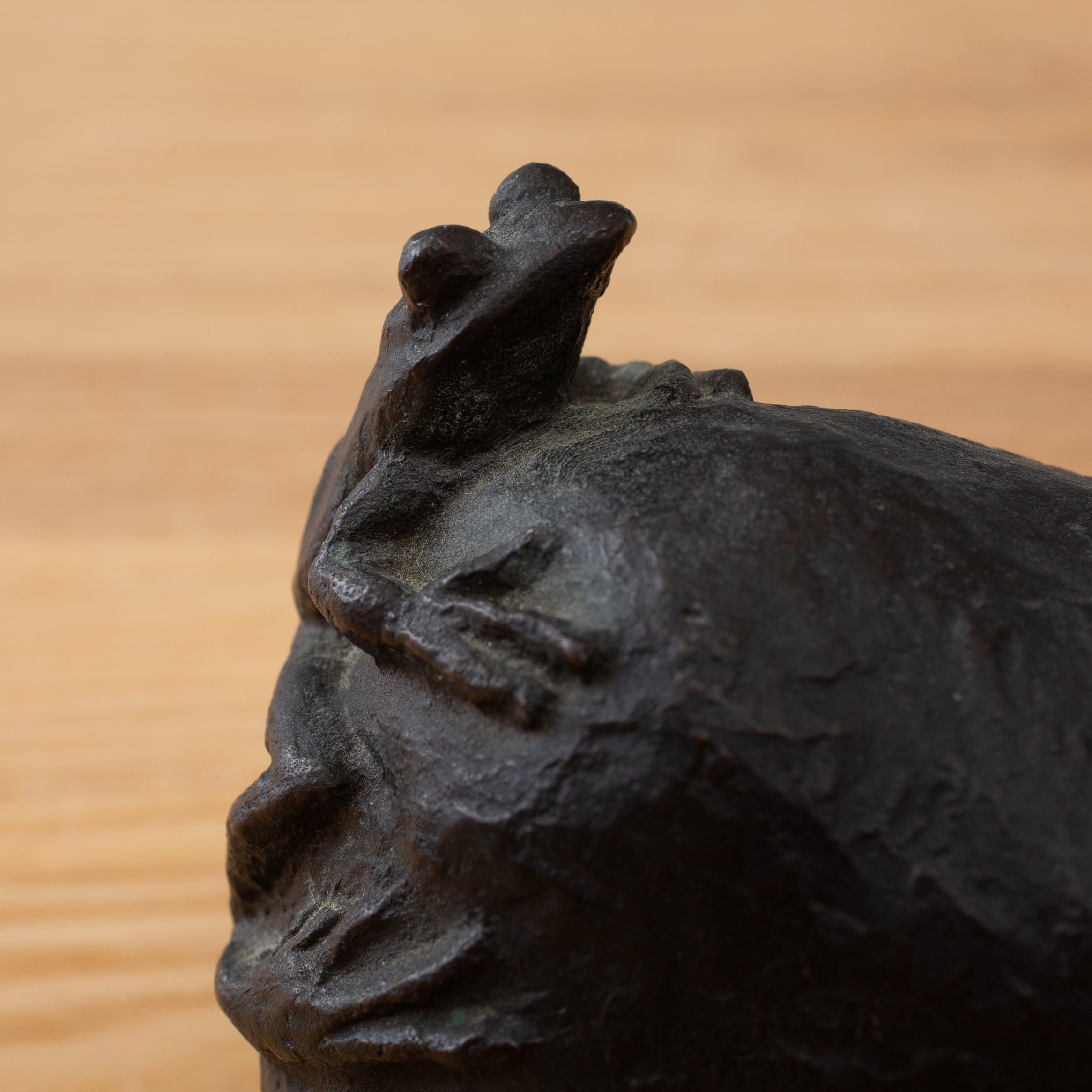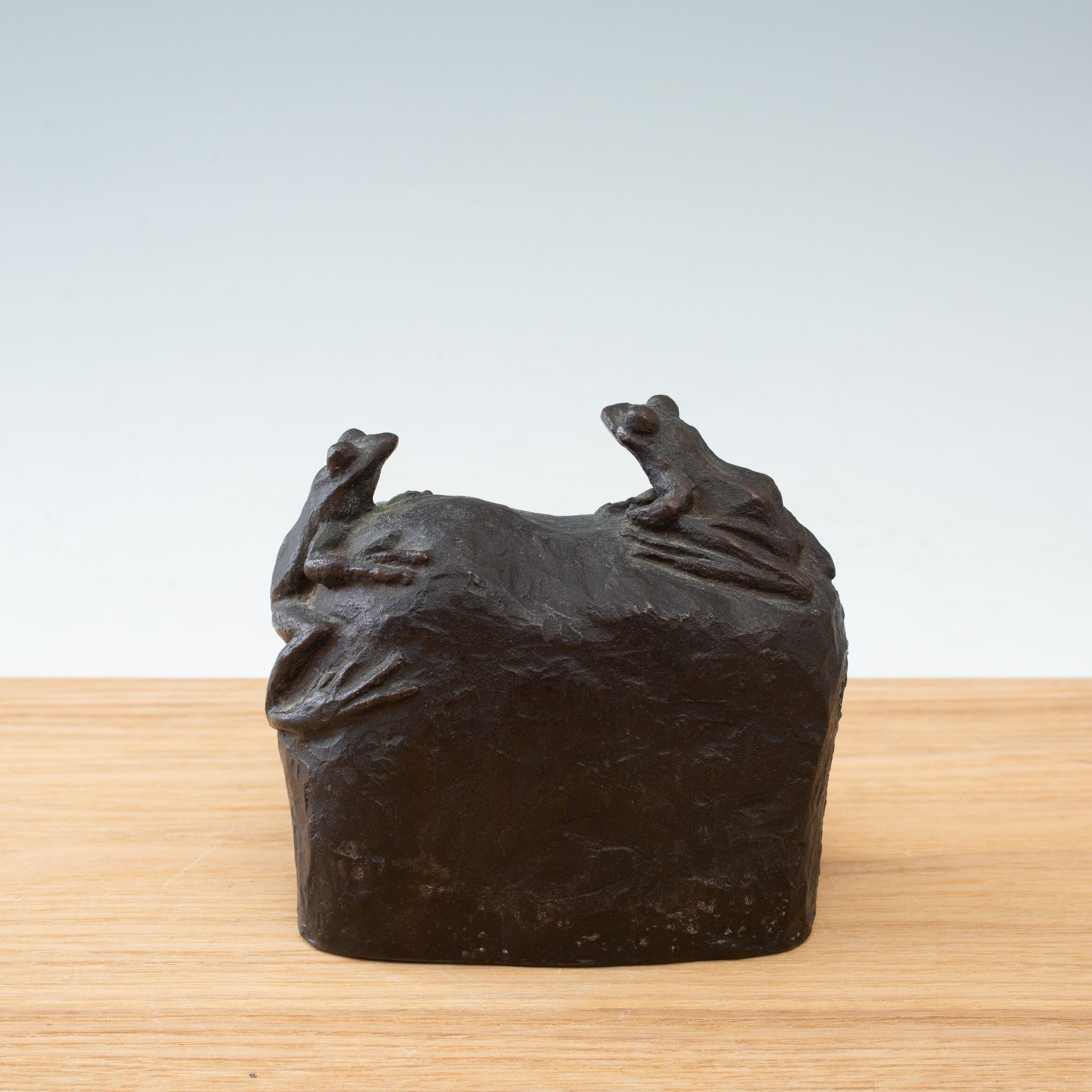 ブロンズ 銅製 蛙 カエル 置物 オブジェ インテリア 田々作 金工 金属工芸 床の間飾り 玄関飾り 室礼 調度品 サイン有 在銘 ペーパーウェイト・文鎮代わりにも【BS33】