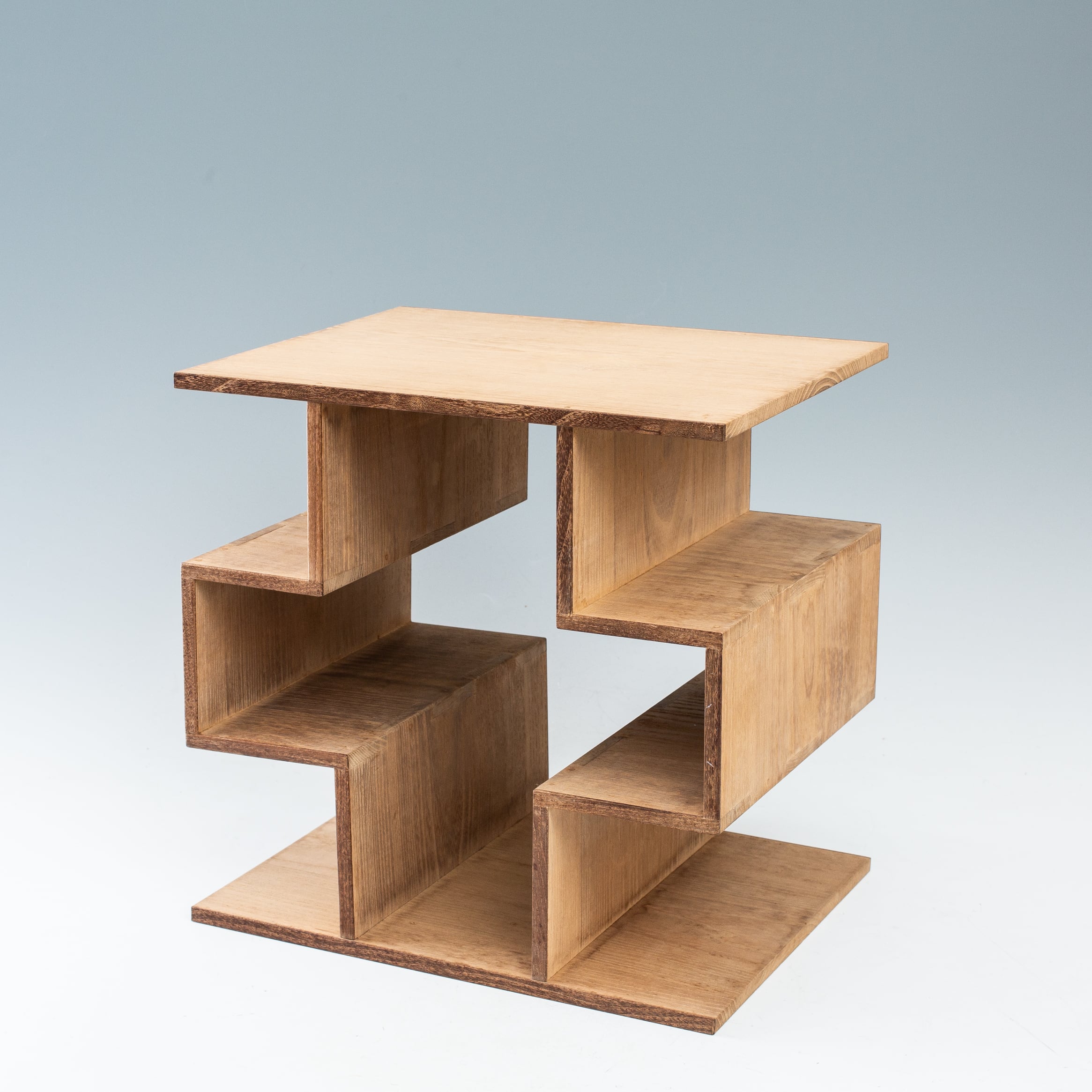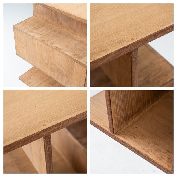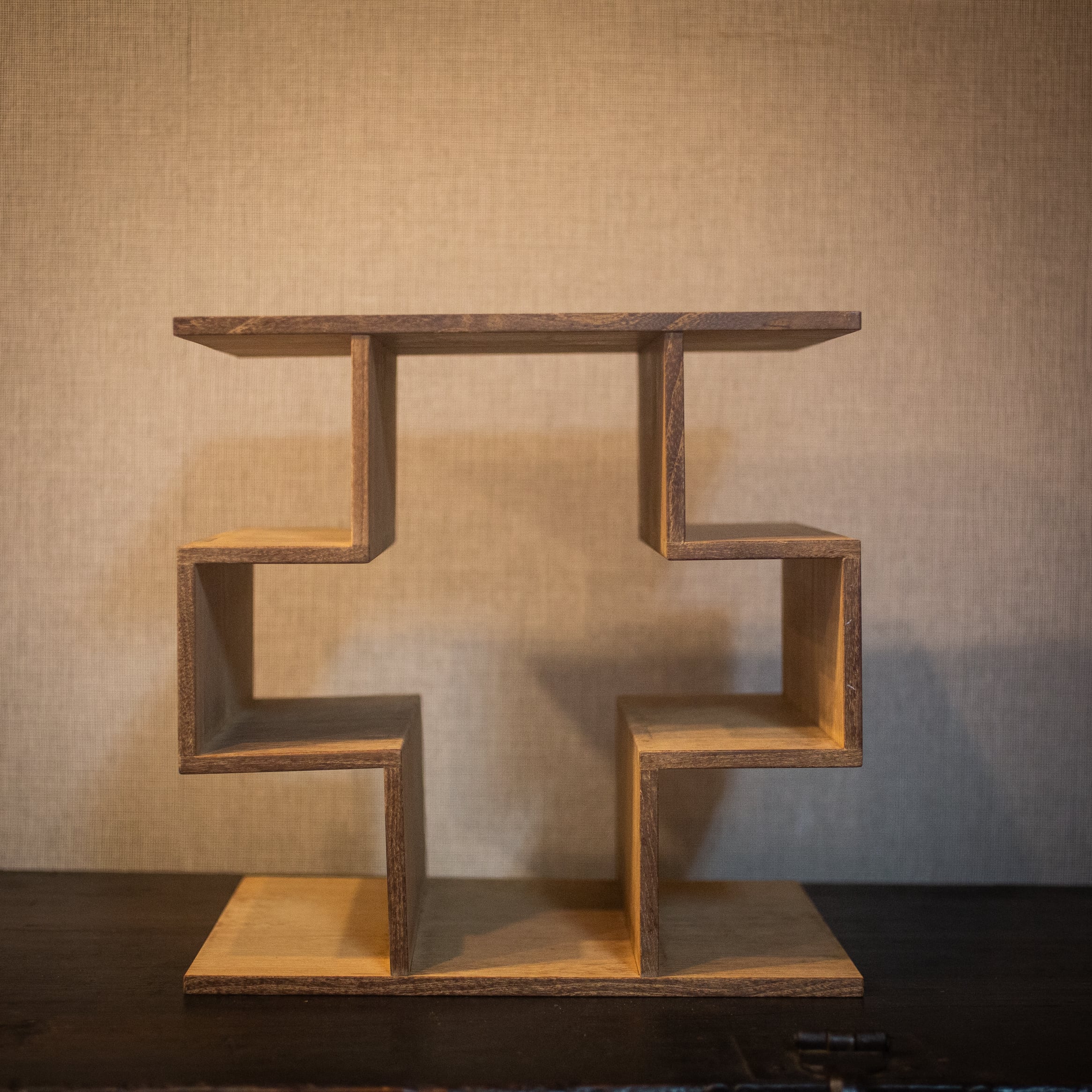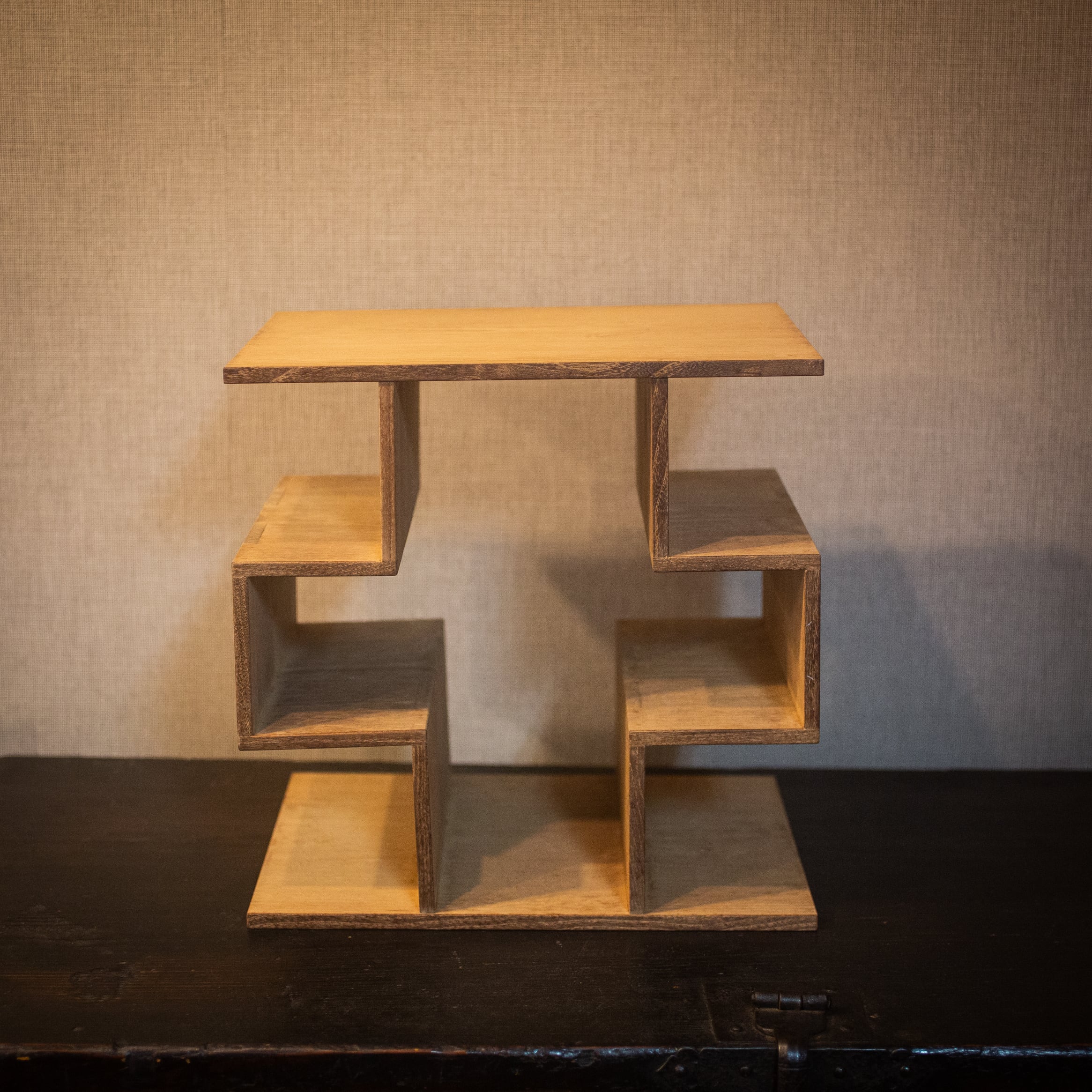 【スタッフから一言】おしゃれなデザインの飾り棚です。「亜」の字の向きでももちろん、縦にしてお気に入りの書籍や花瓶を並べてもおもしろいと思います。経年によるほんのわずかなガタツキ、木のシミ等あり。