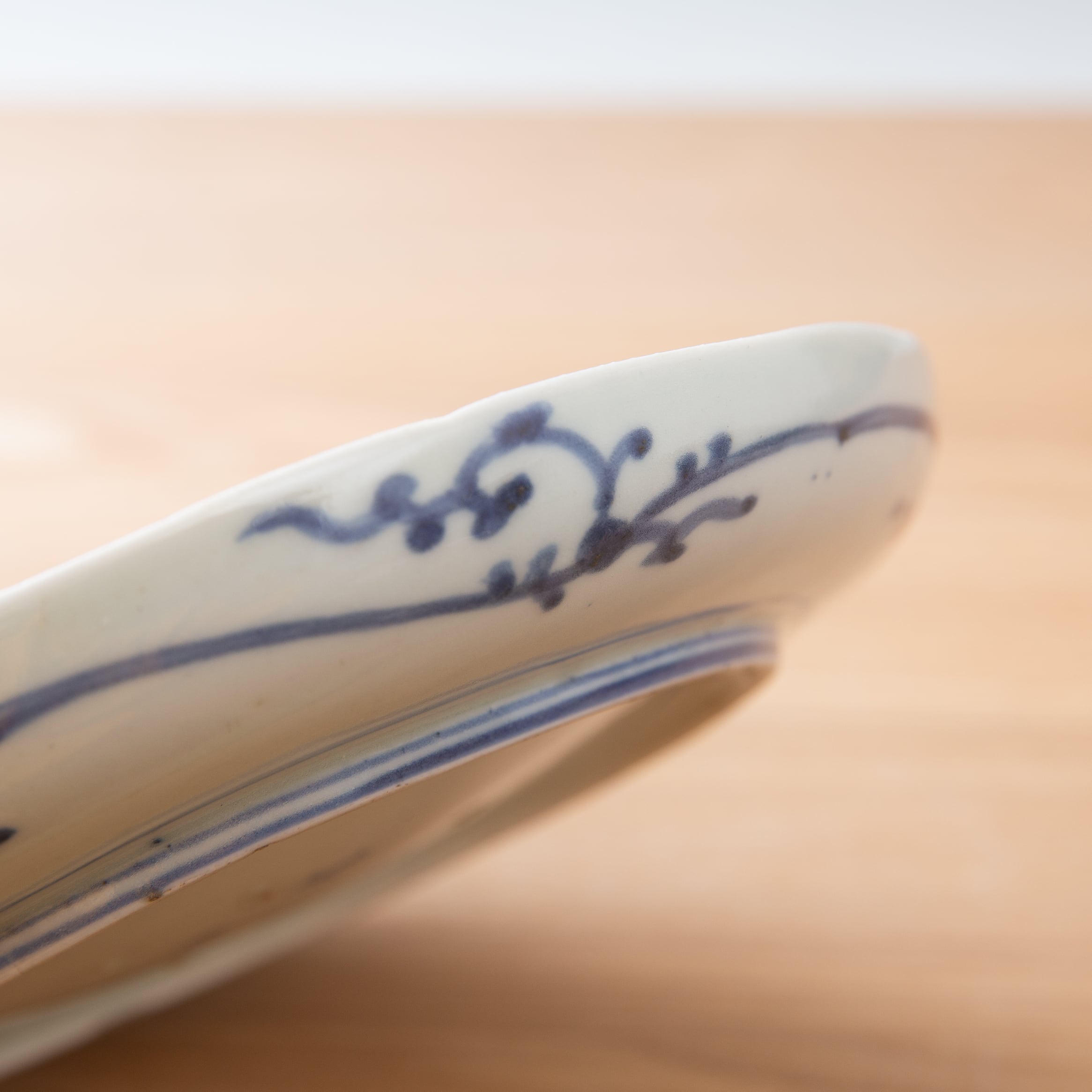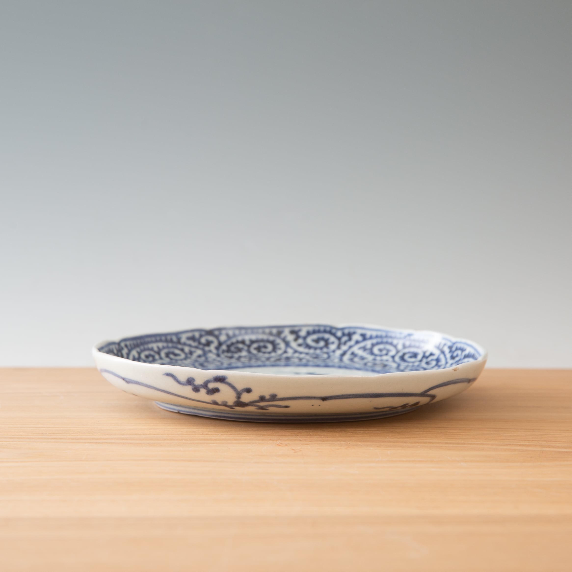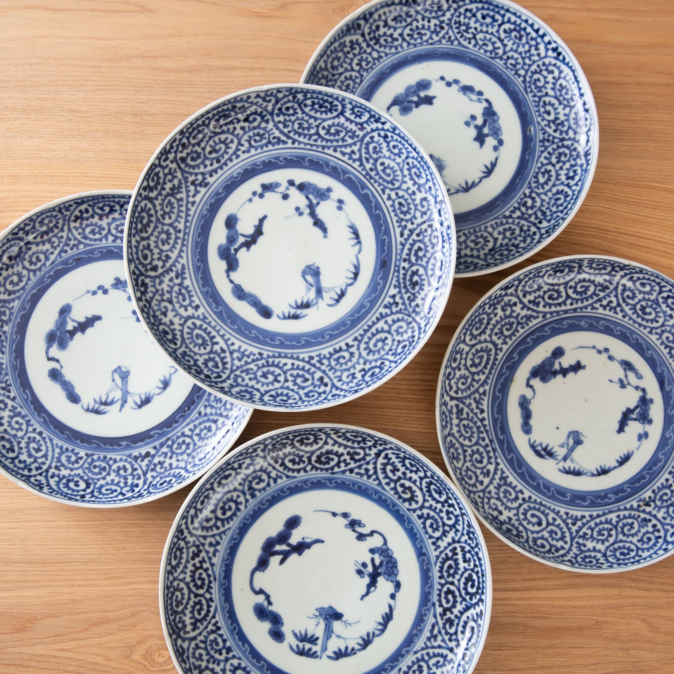 古伊万里 染付 蛸唐草 七寸皿 7寸 約20センチ プレート 平皿 大皿 見込み松竹梅 富貴長春銘 吉祥文様 江戸時代 江戸後期 唐草文様 日本古陶磁 暮らしの骨董 生活骨董 用の美 アンティーク コレクション 和骨董 伊万里 有田 和食器 懐石の器 お料理屋さんの器【BS38】