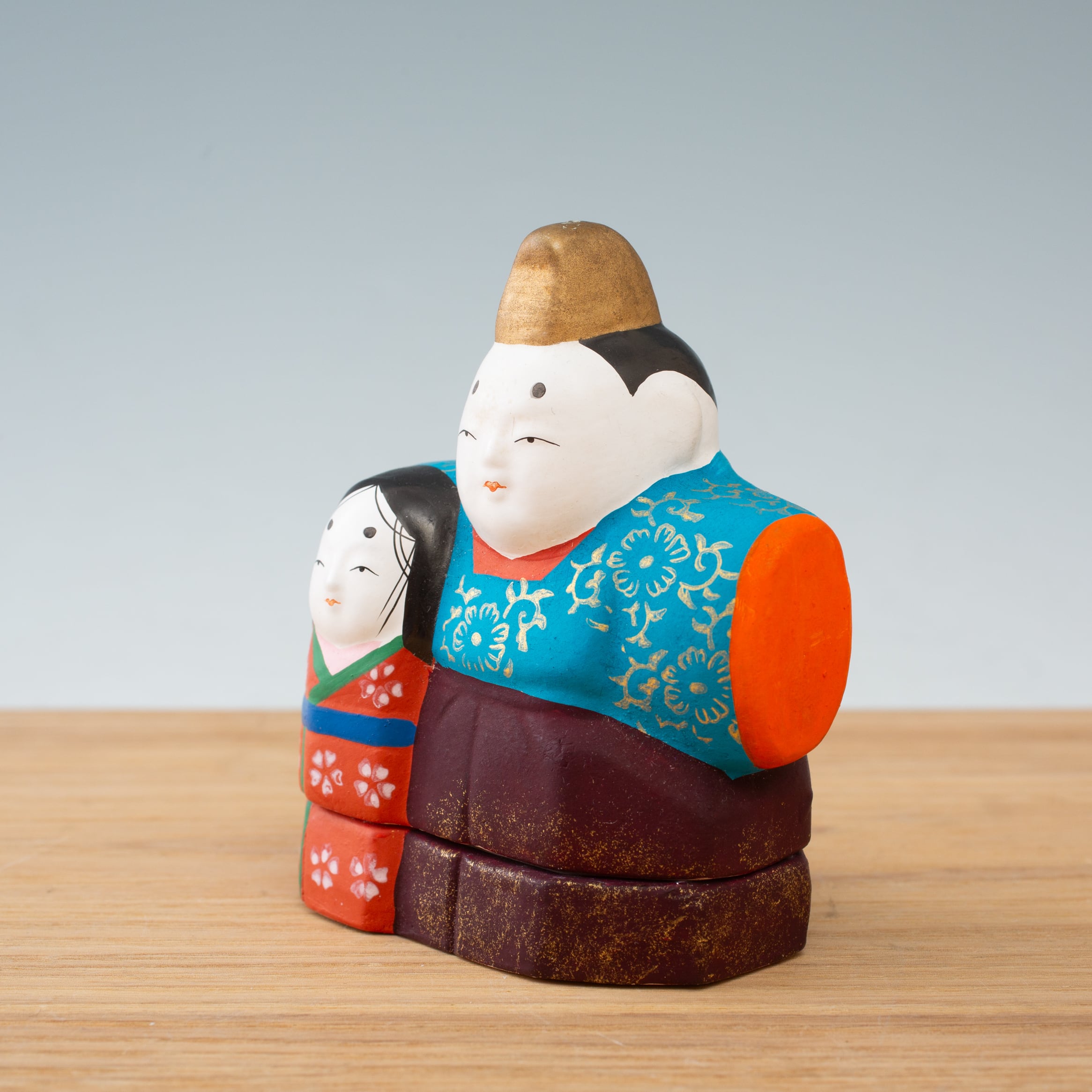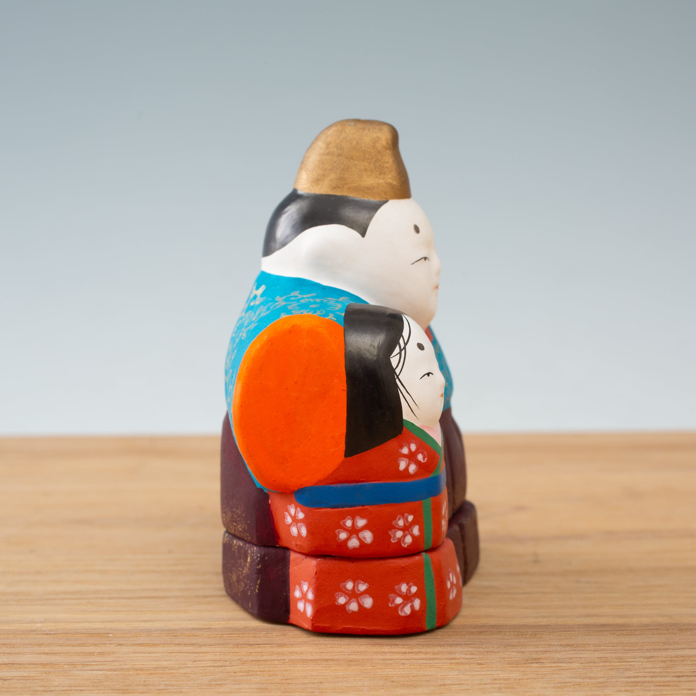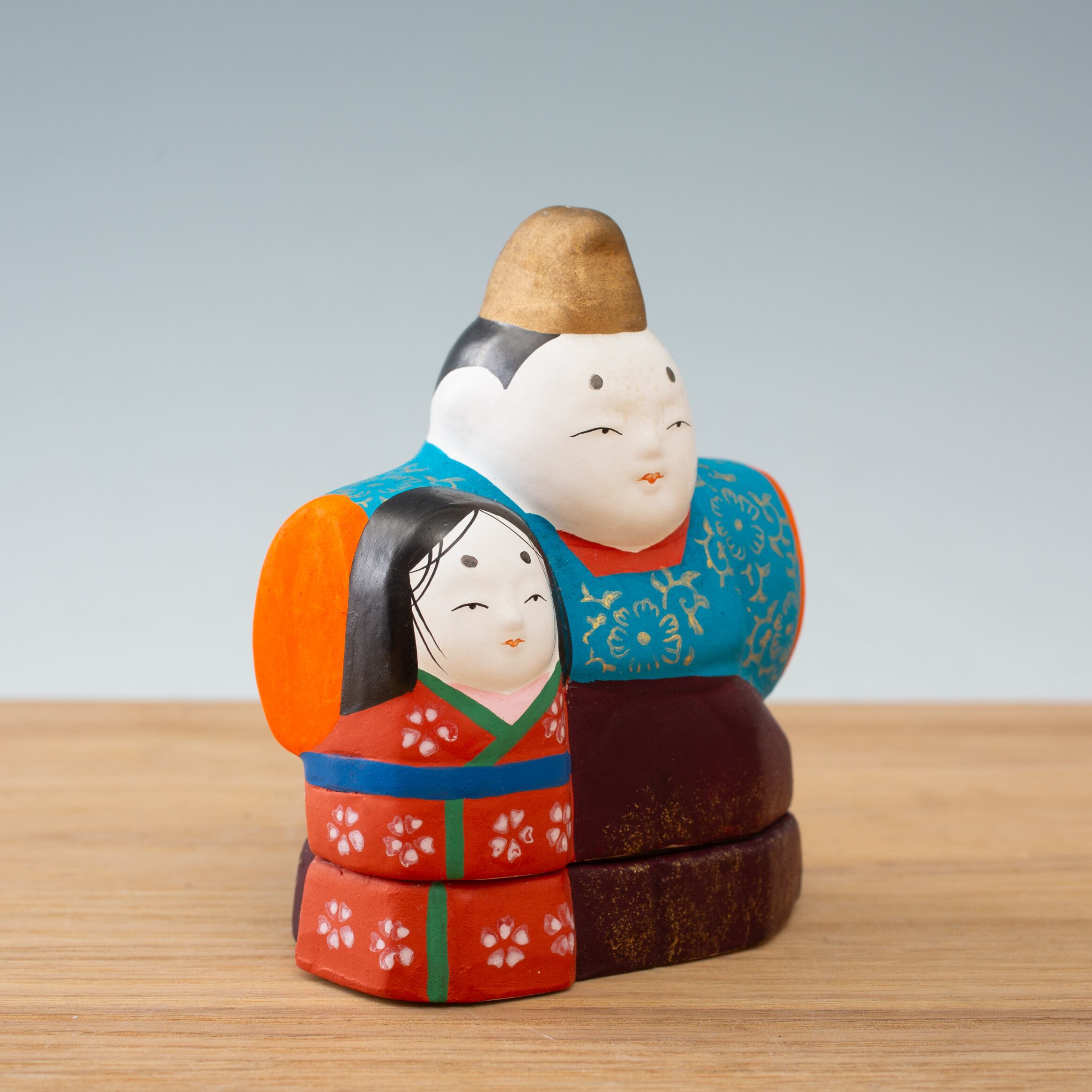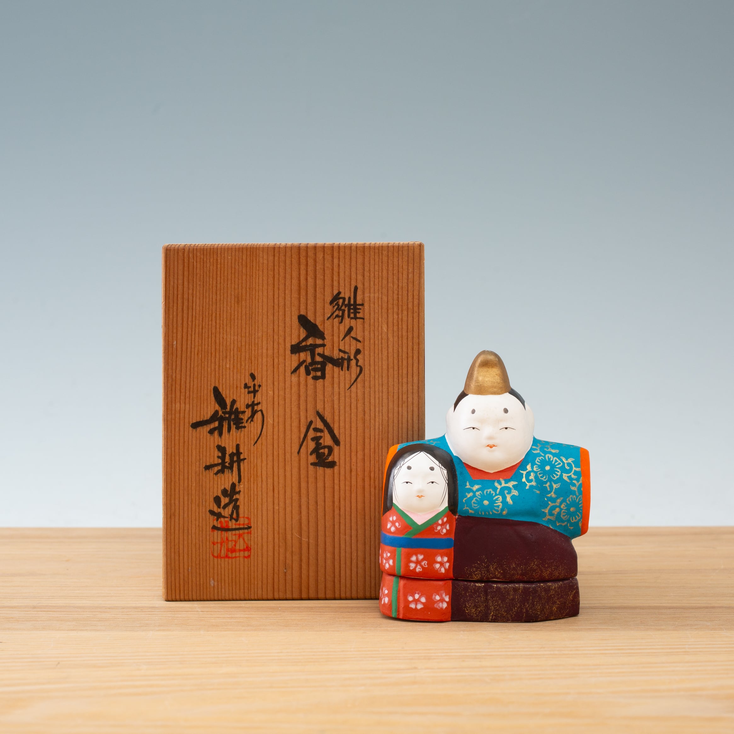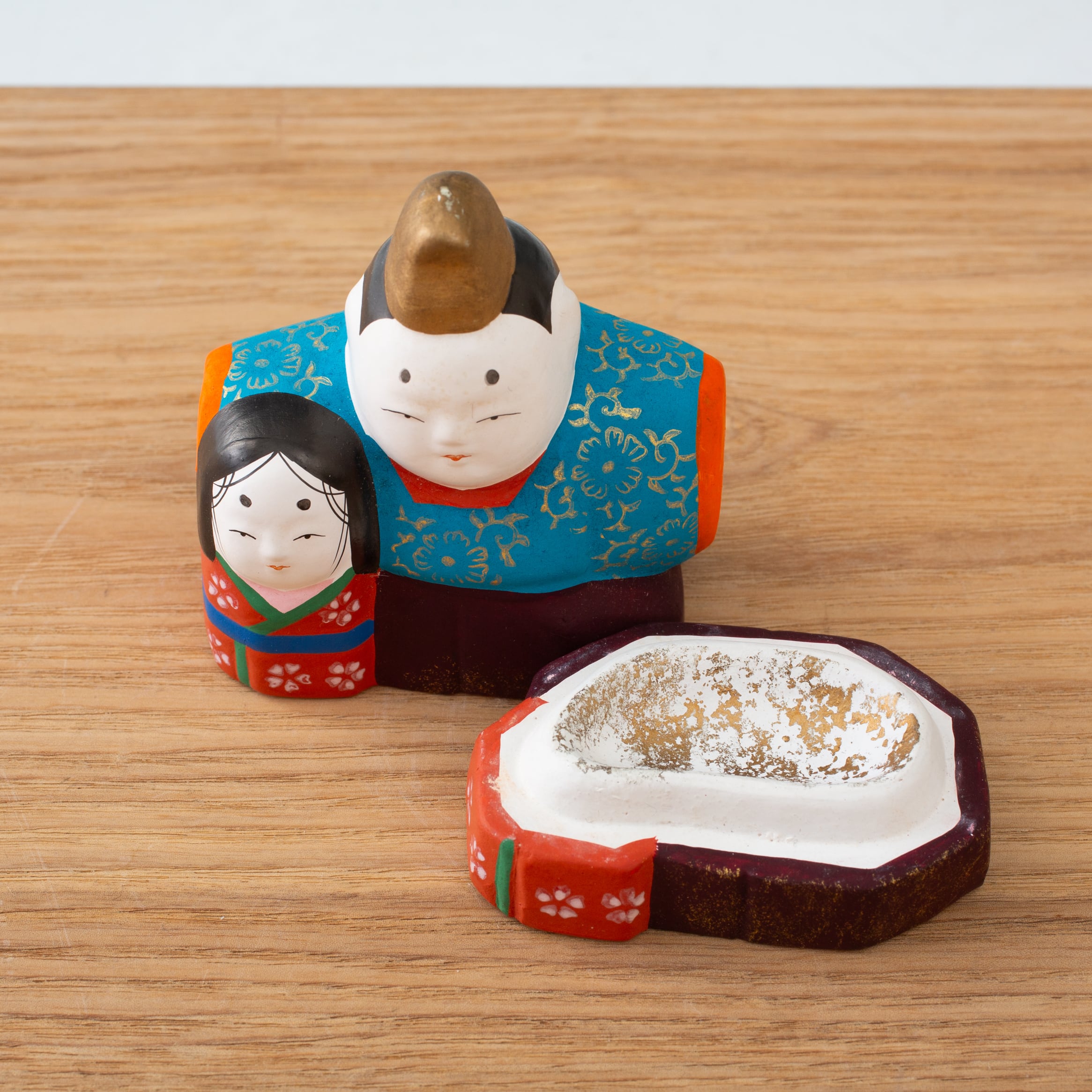 【スタッフから一言】カラフルで可愛いお雛様の香合です。少し彩色のカスレあり(男性の頭のあたり。画像ご確認ください)