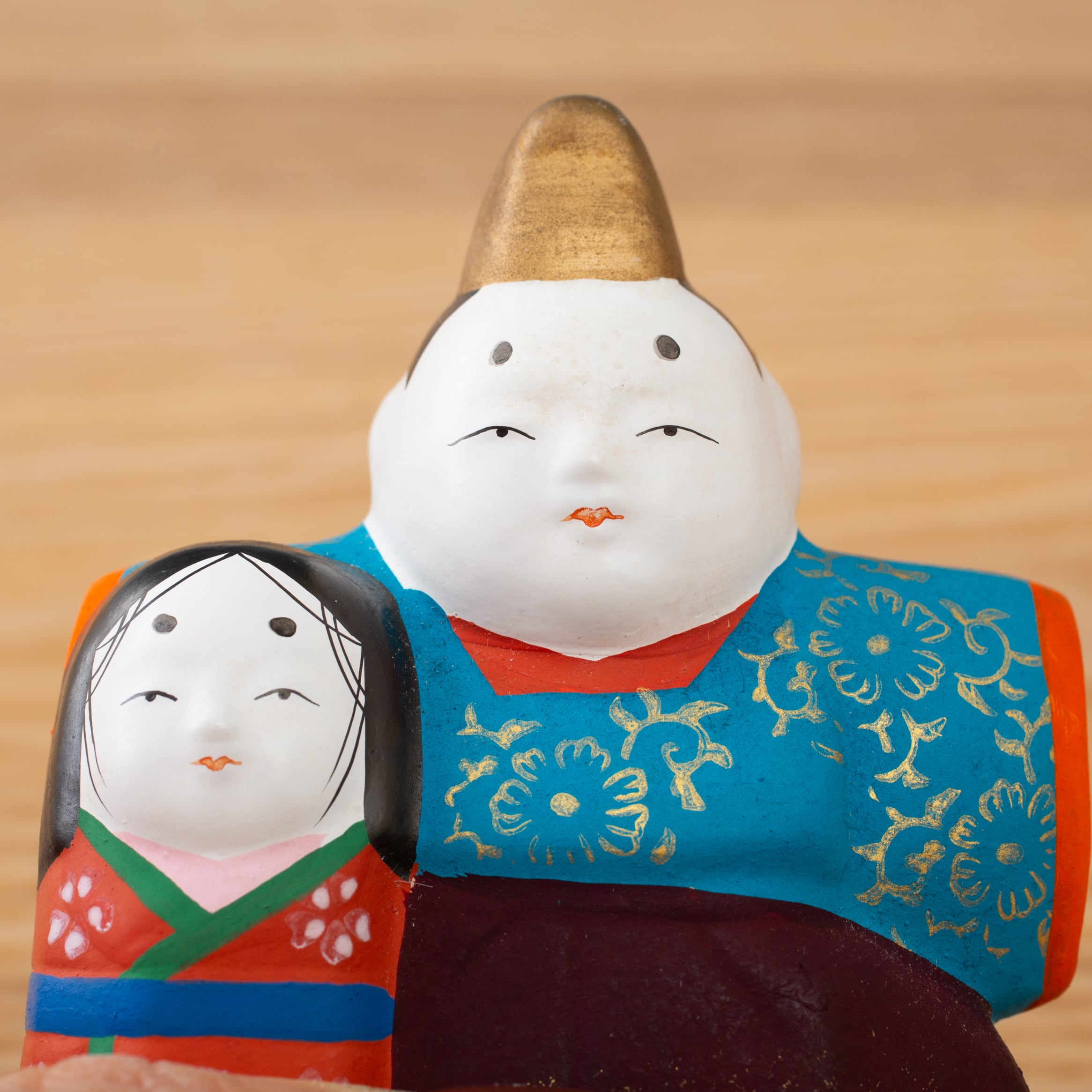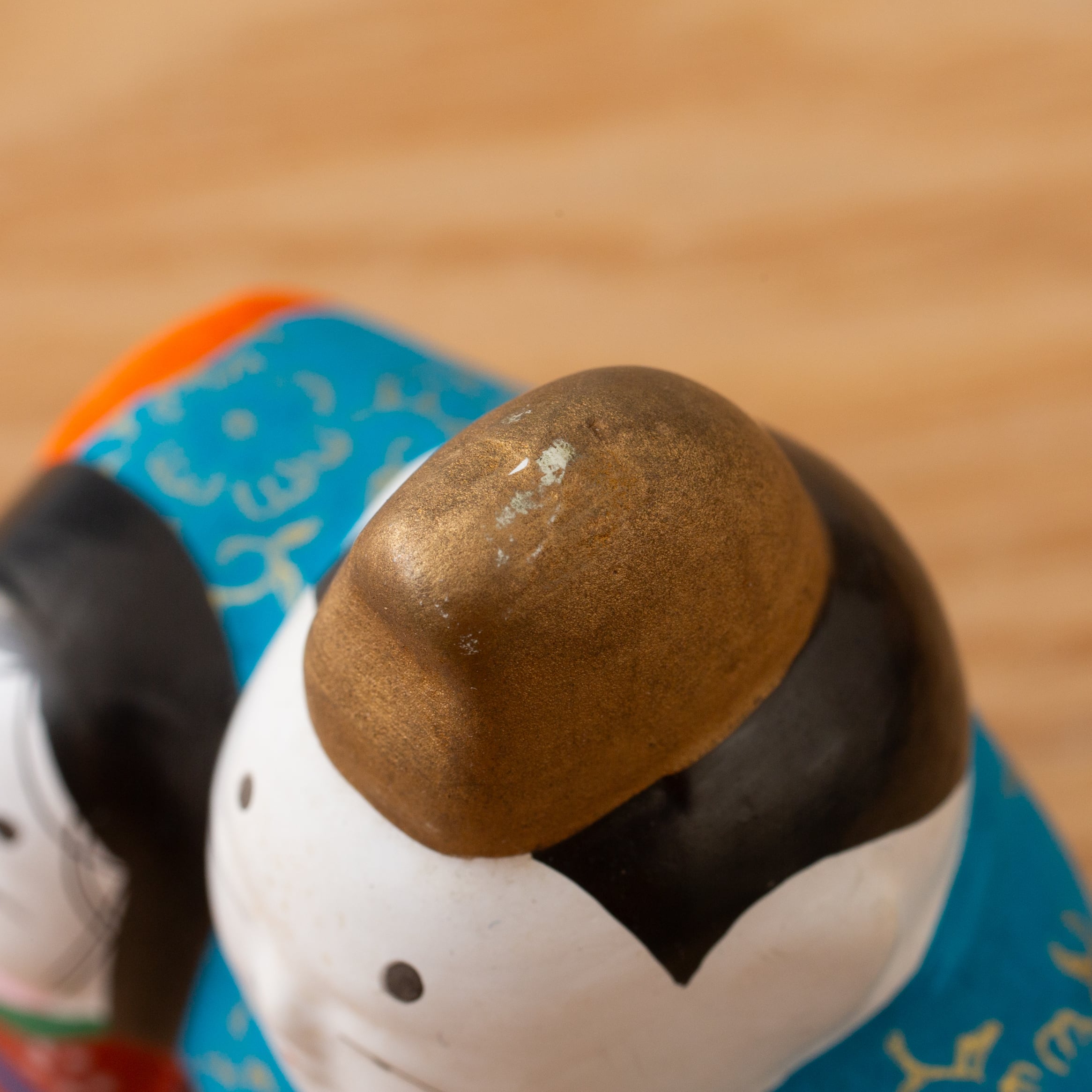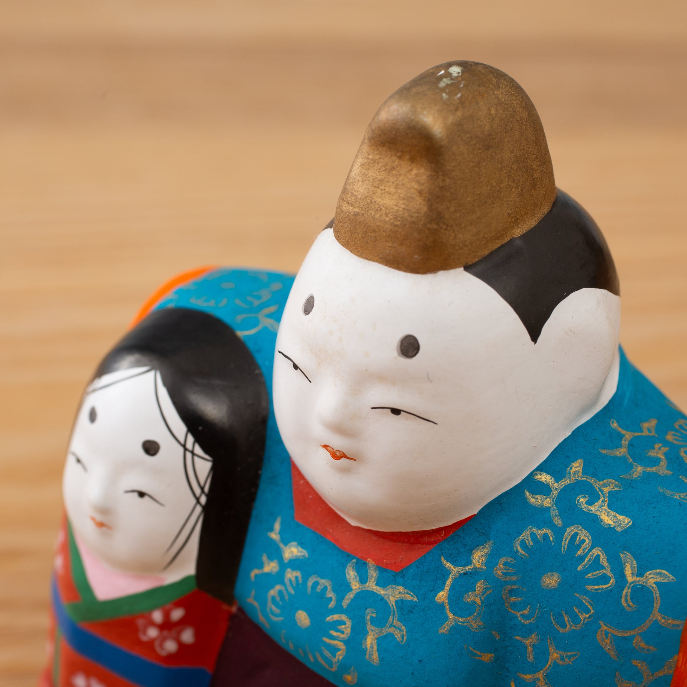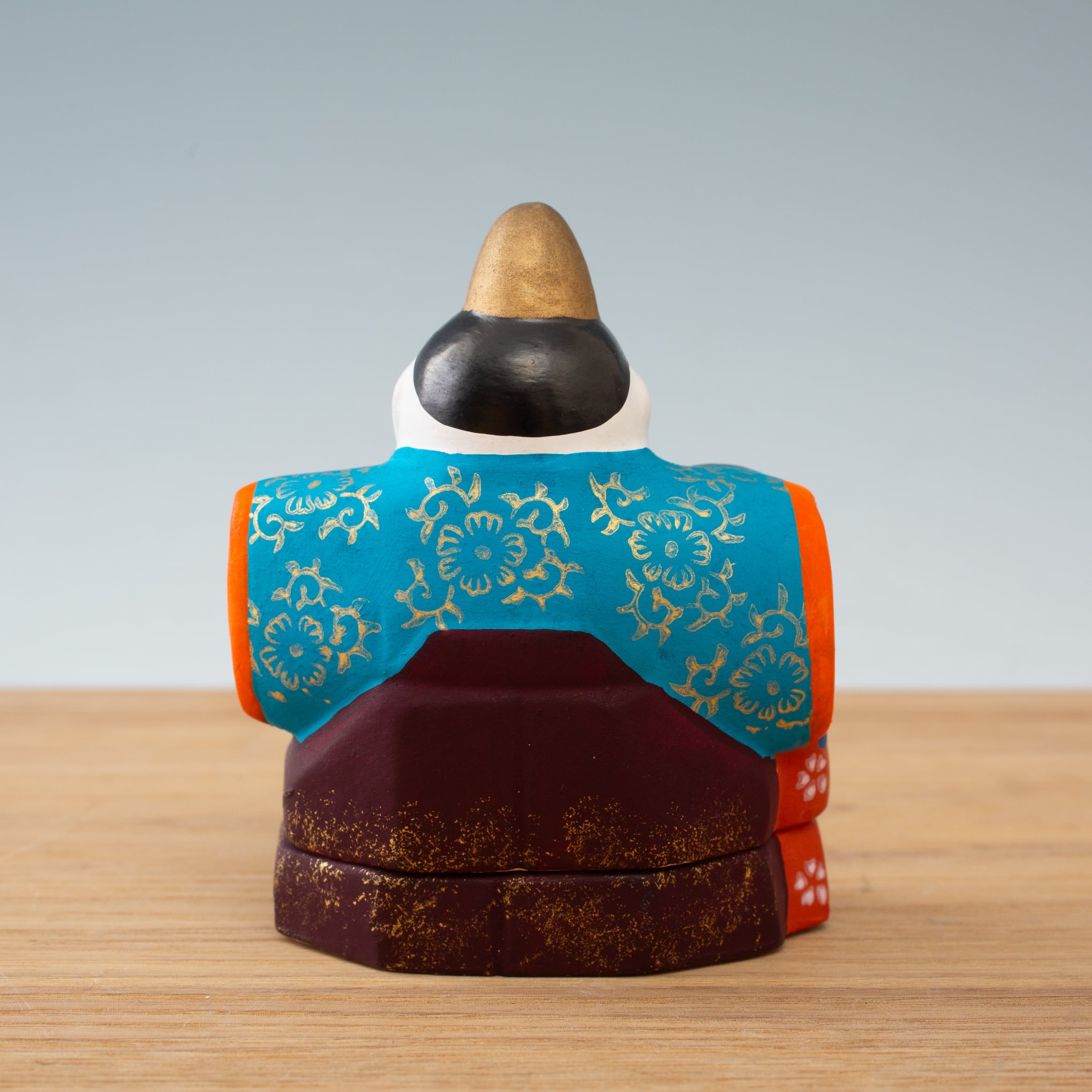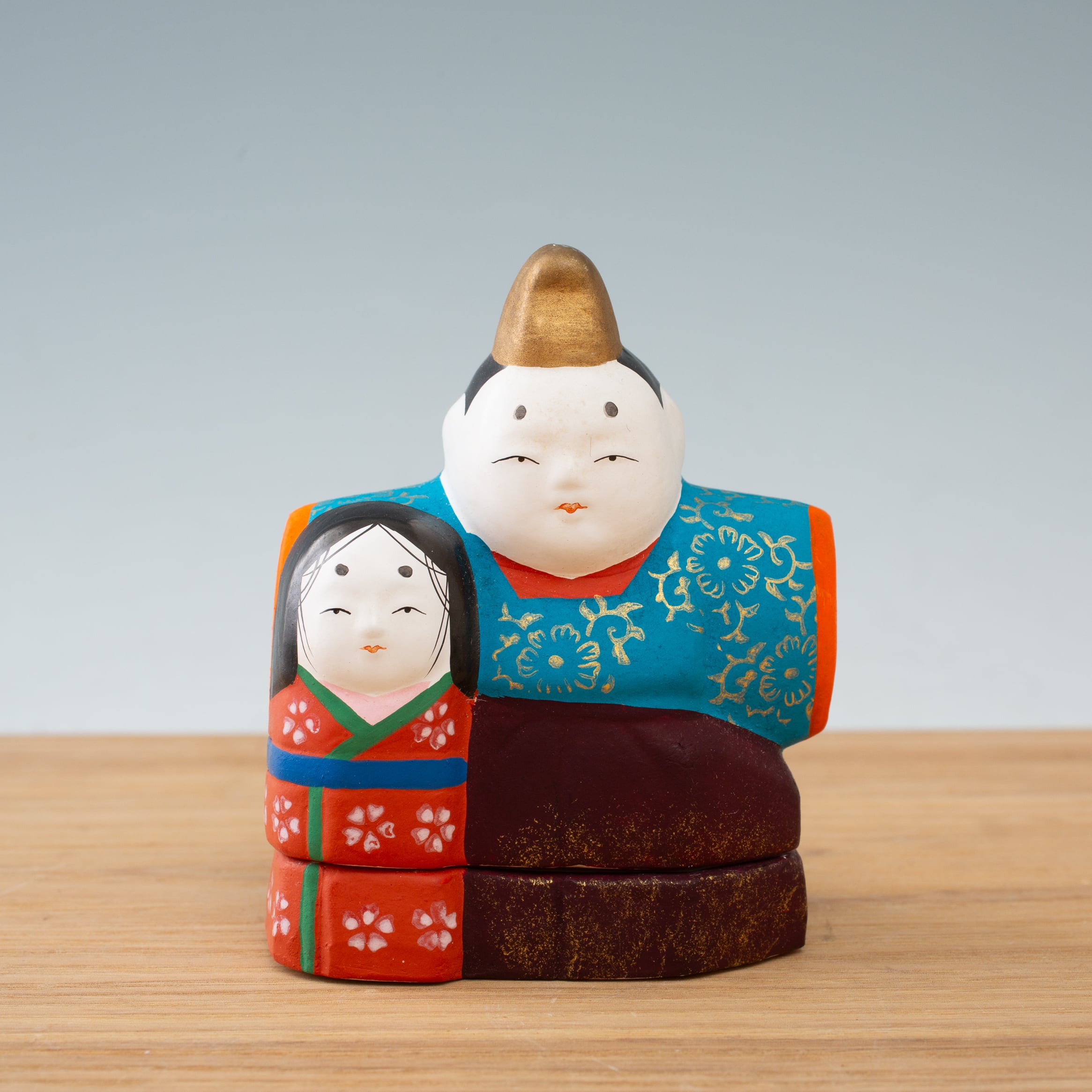 【スタッフから一言】カラフルで可愛いお雛様の香合です。少し彩色のカスレあり(男性の頭のあたり。画像ご確認ください)