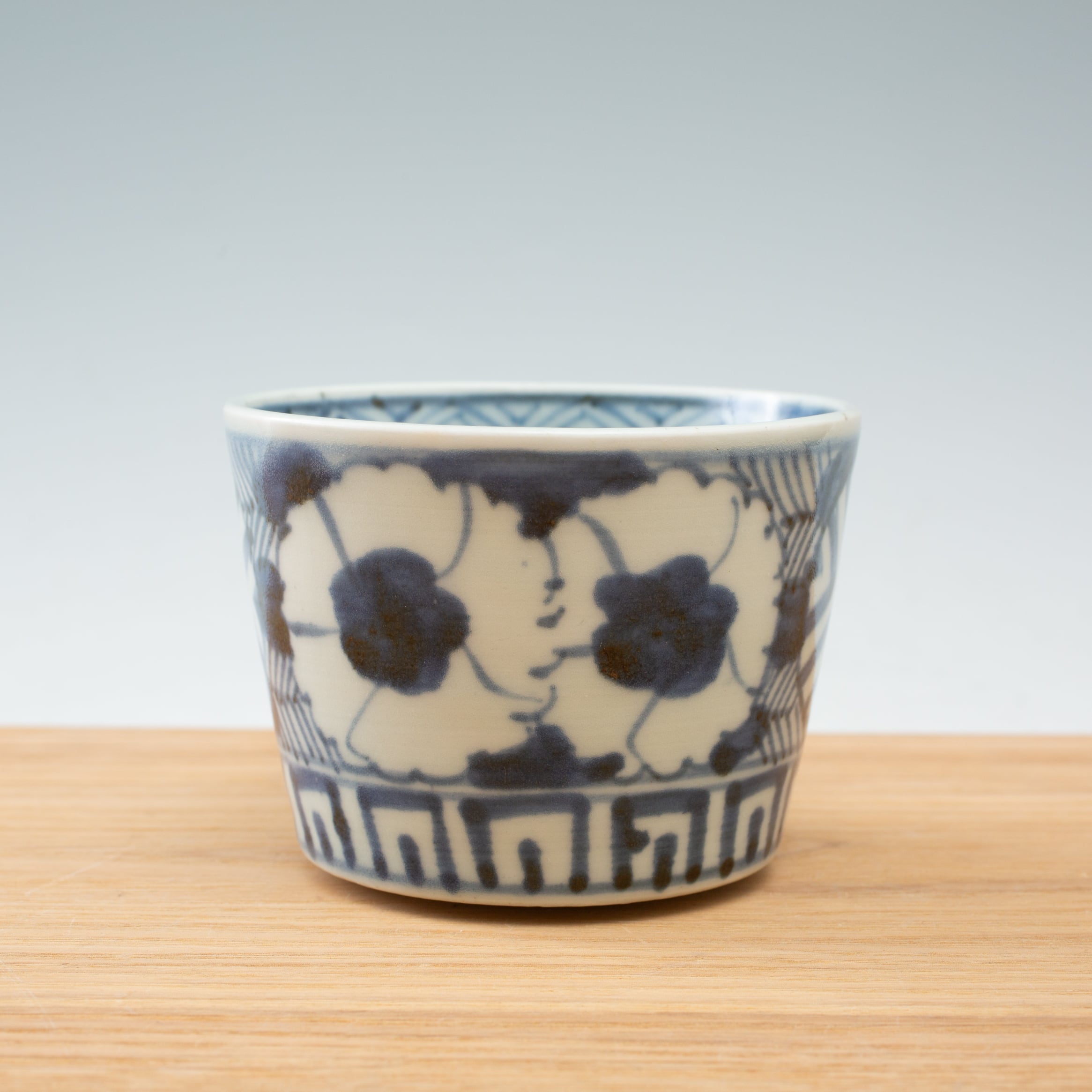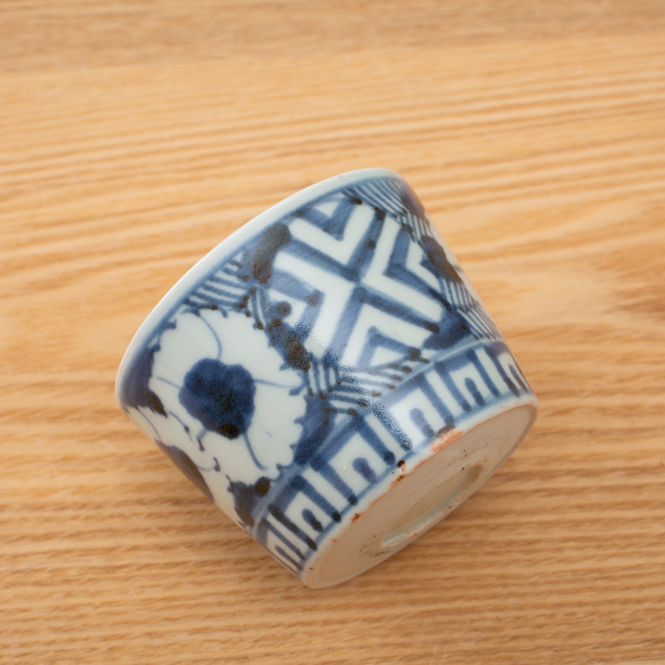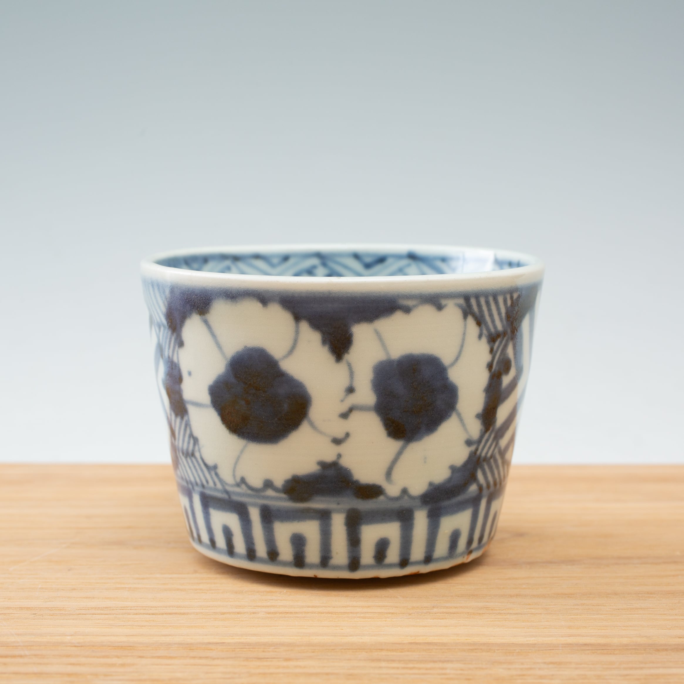 "三髭堂オンラインショップをご覧頂きまして誠にありがとうございます。こちらの商品は、古伊万里 染付 撫子文 蕎麦猪口 見込み五弁花 そば猪口 経菱 四方襷 向付 小鉢 蛇の目高台 江戸時代 江戸後期 日本古陶磁 酒器 ぐい呑 暮らしの骨董 生活骨董 用の美 アンティーク コレクション 和骨董 伊万里 有田 和食器 吉祥文様【BS16】です。時代なりの汚れなどございますので画像にてご確認下さい。
