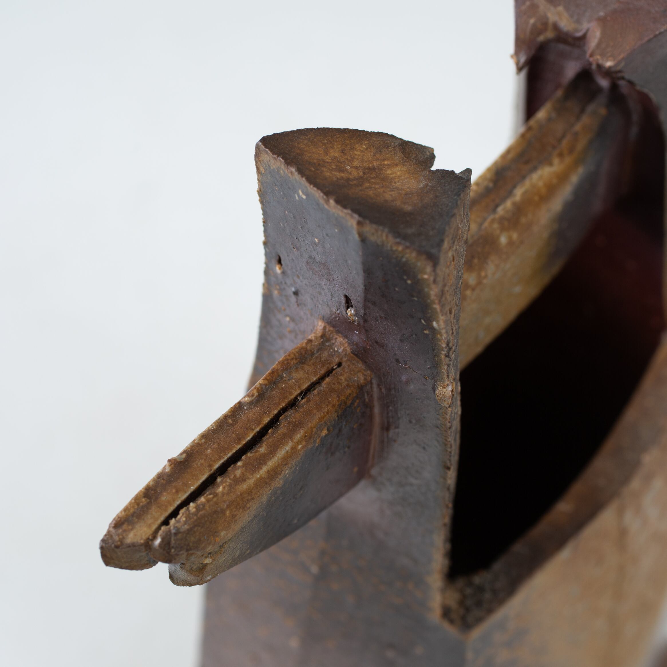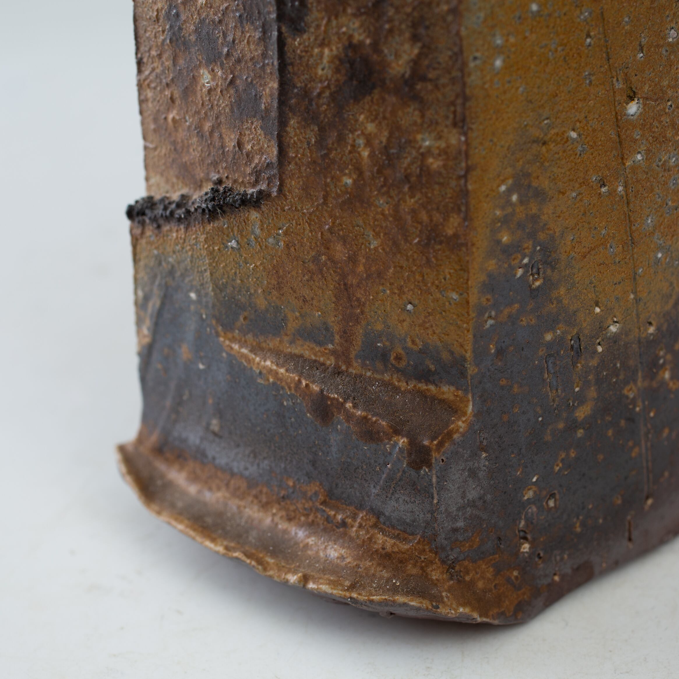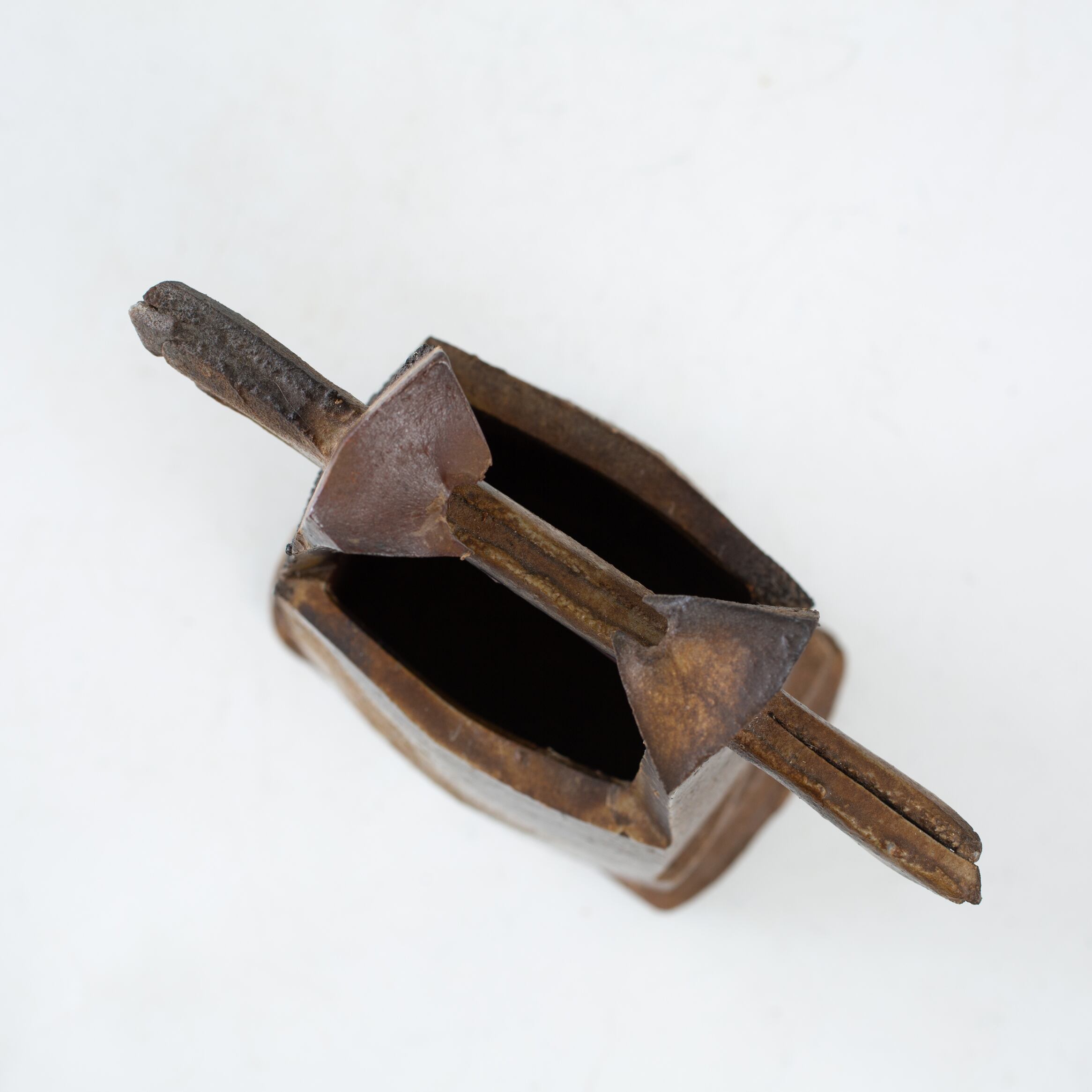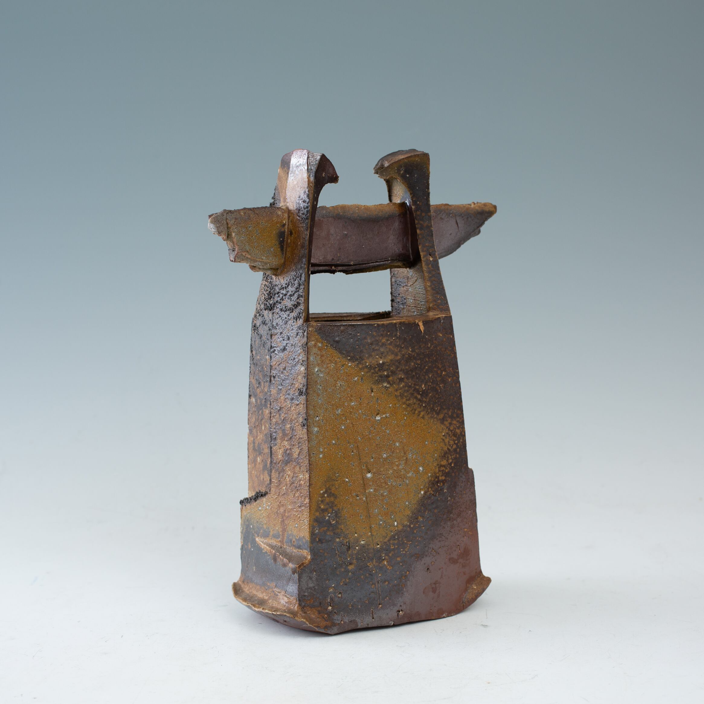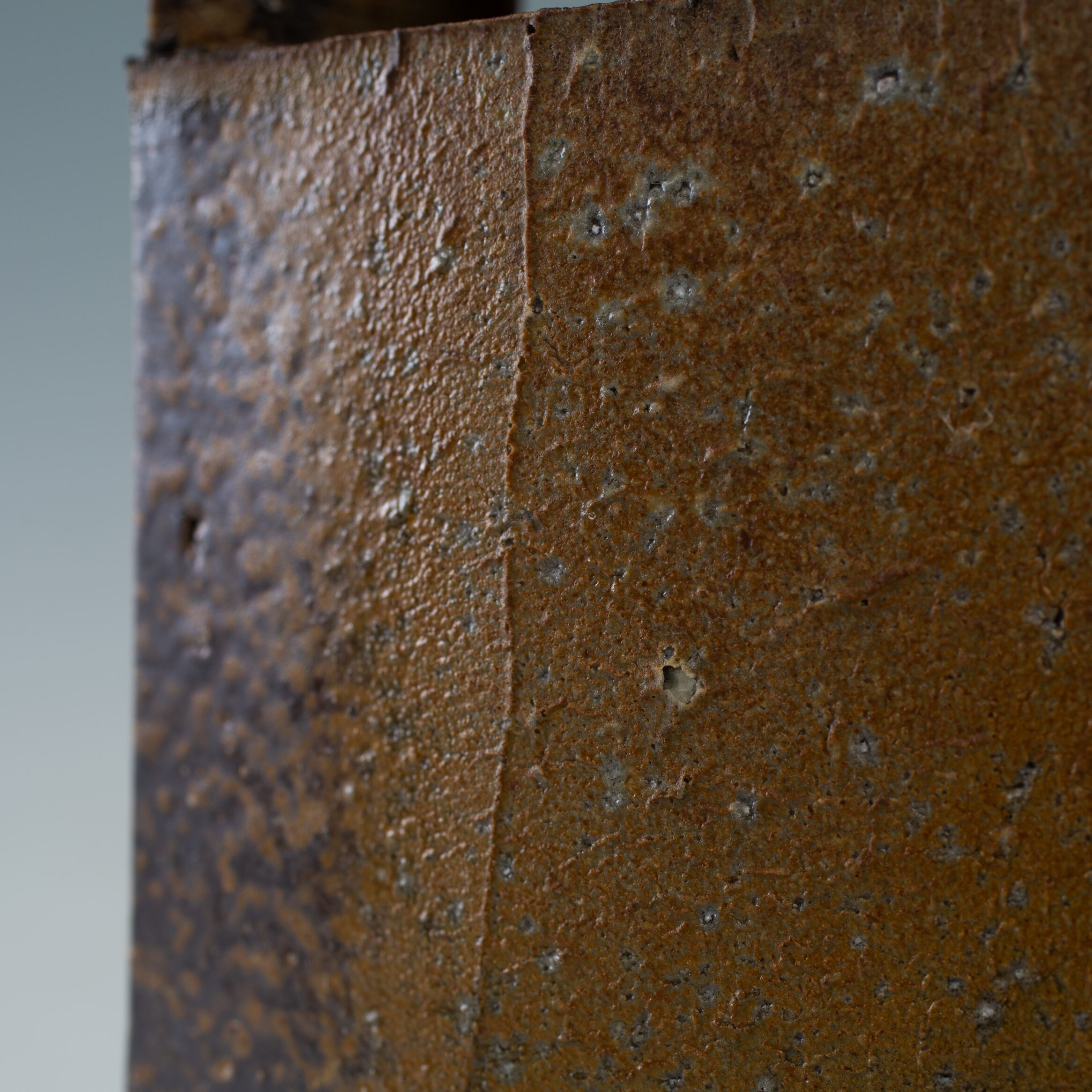 備前焼 手桶 花入 隠崎隆一 花瓶 花器 持ち手 桶形 共箱 茶道具 茶会 床飾り 玄関飾り フラワーベース オブジェ インテリア 置物 日本の陶芸家 日本美術 現代アート 現代陶芸【BA405】