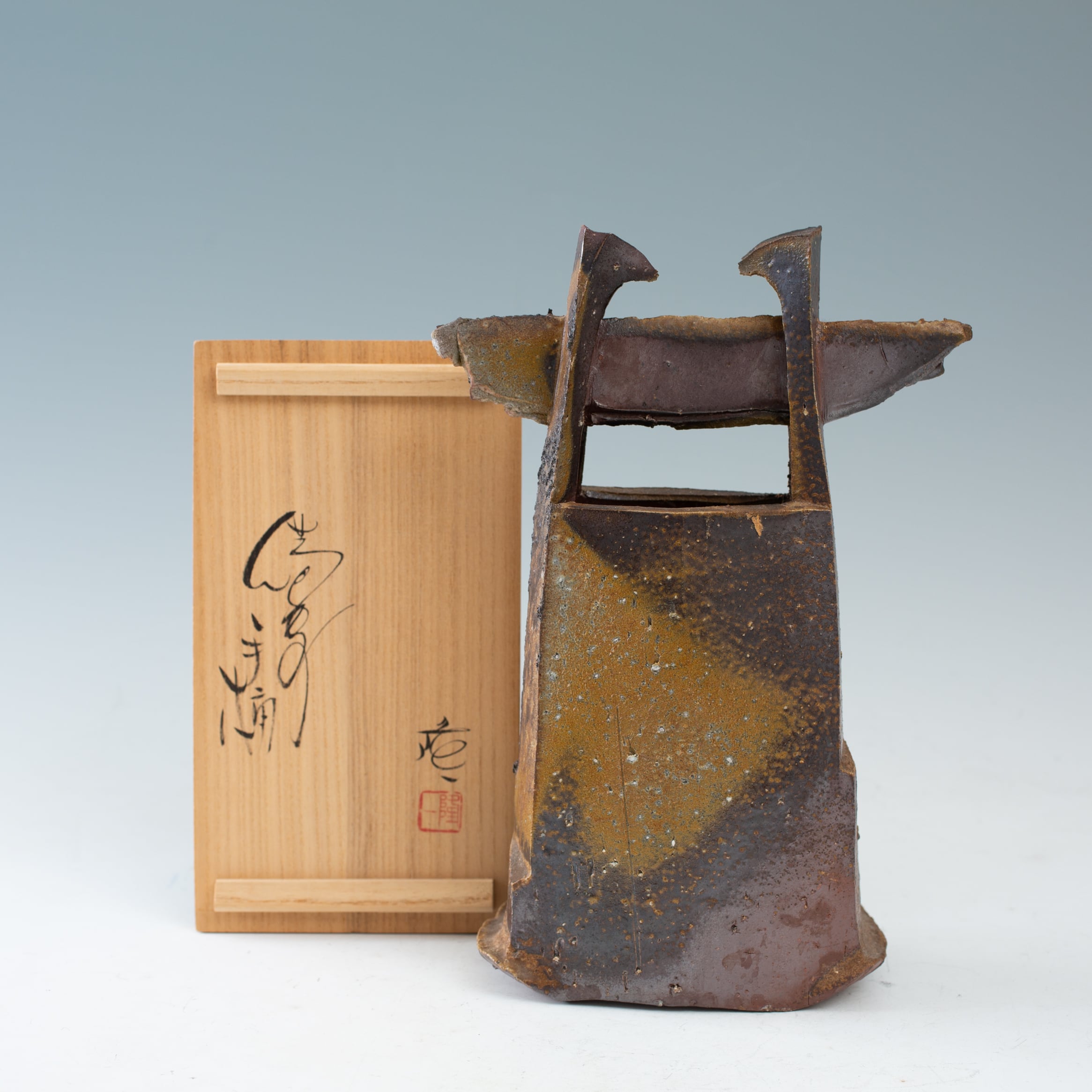 ◆隠崎隆一 (かくれざきりゅういち 1950-)長崎県生まれの陶芸家。1973年に大阪芸術大学卒業、グラフィックデザイナーから転身し、1976年以降伊勢崎淳らに師事。伝統の技術を継承しつつ、自由な発想と独自の表現で備前焼の新たな道を切り開いた陶芸作家として知られる。