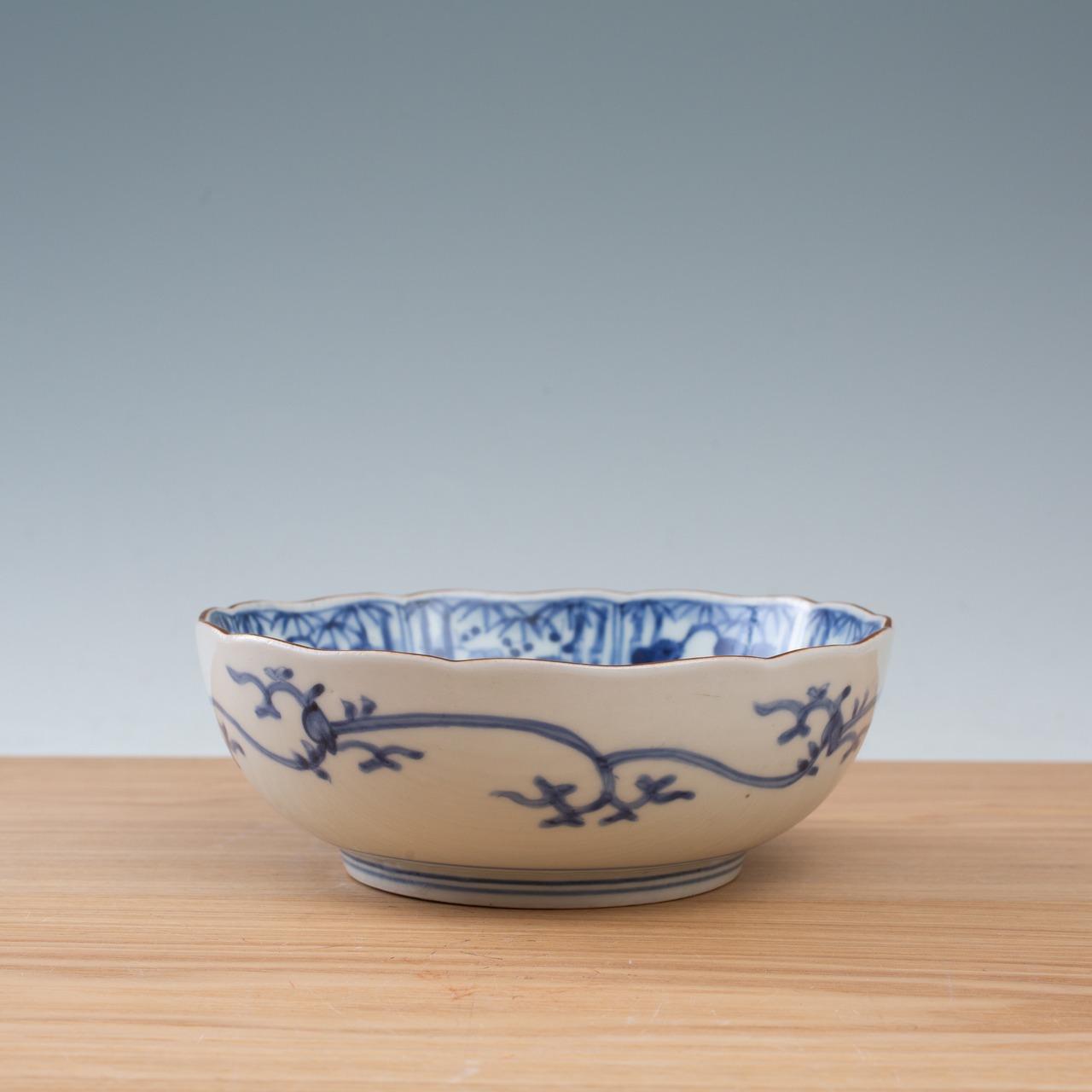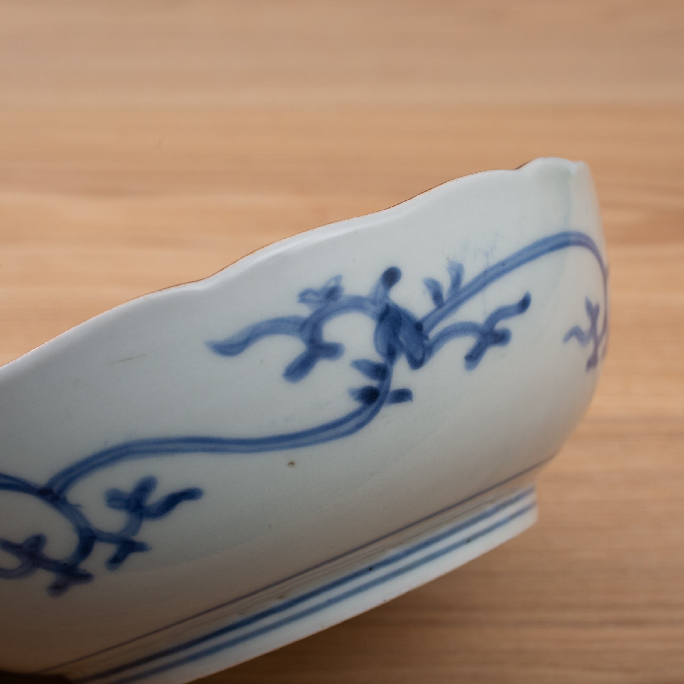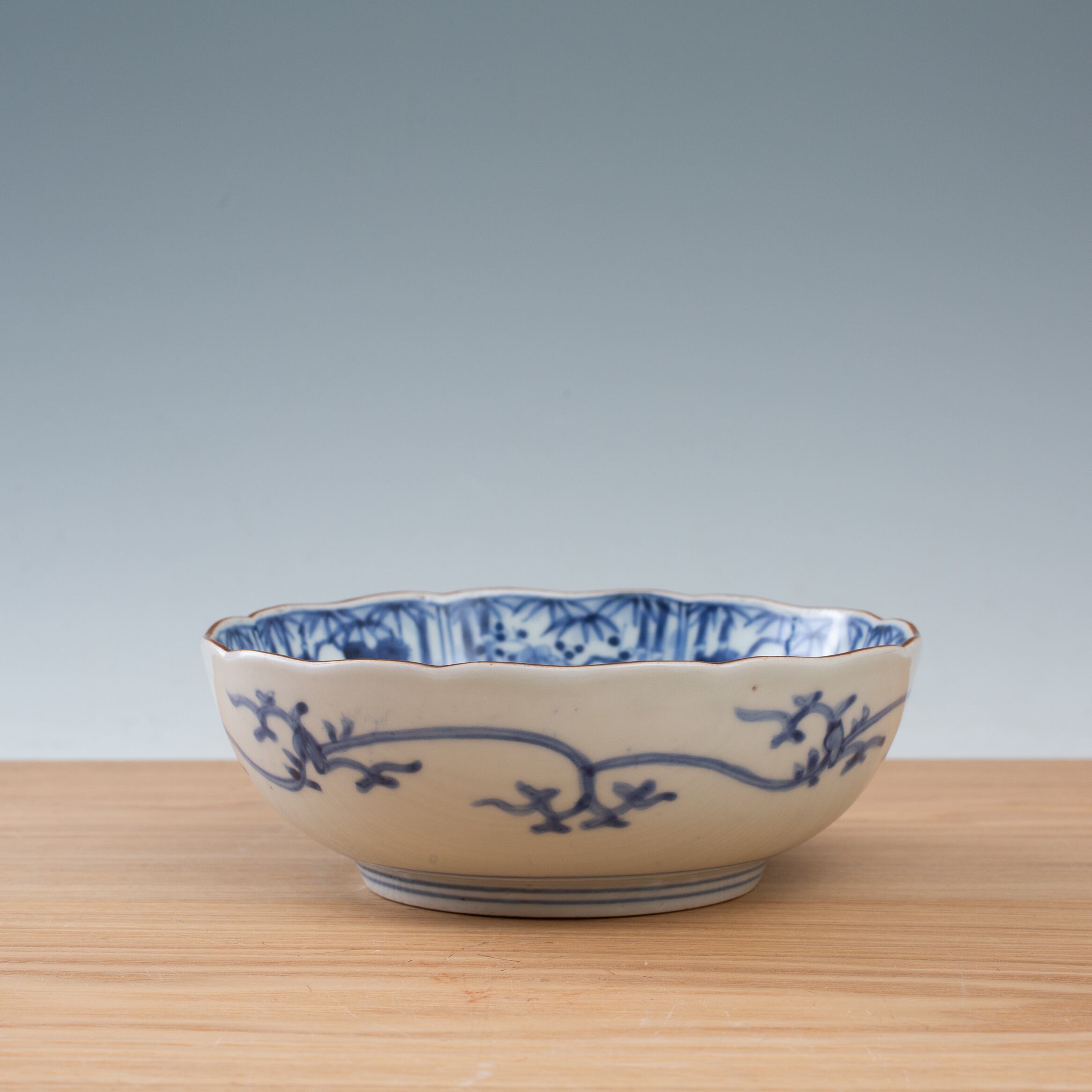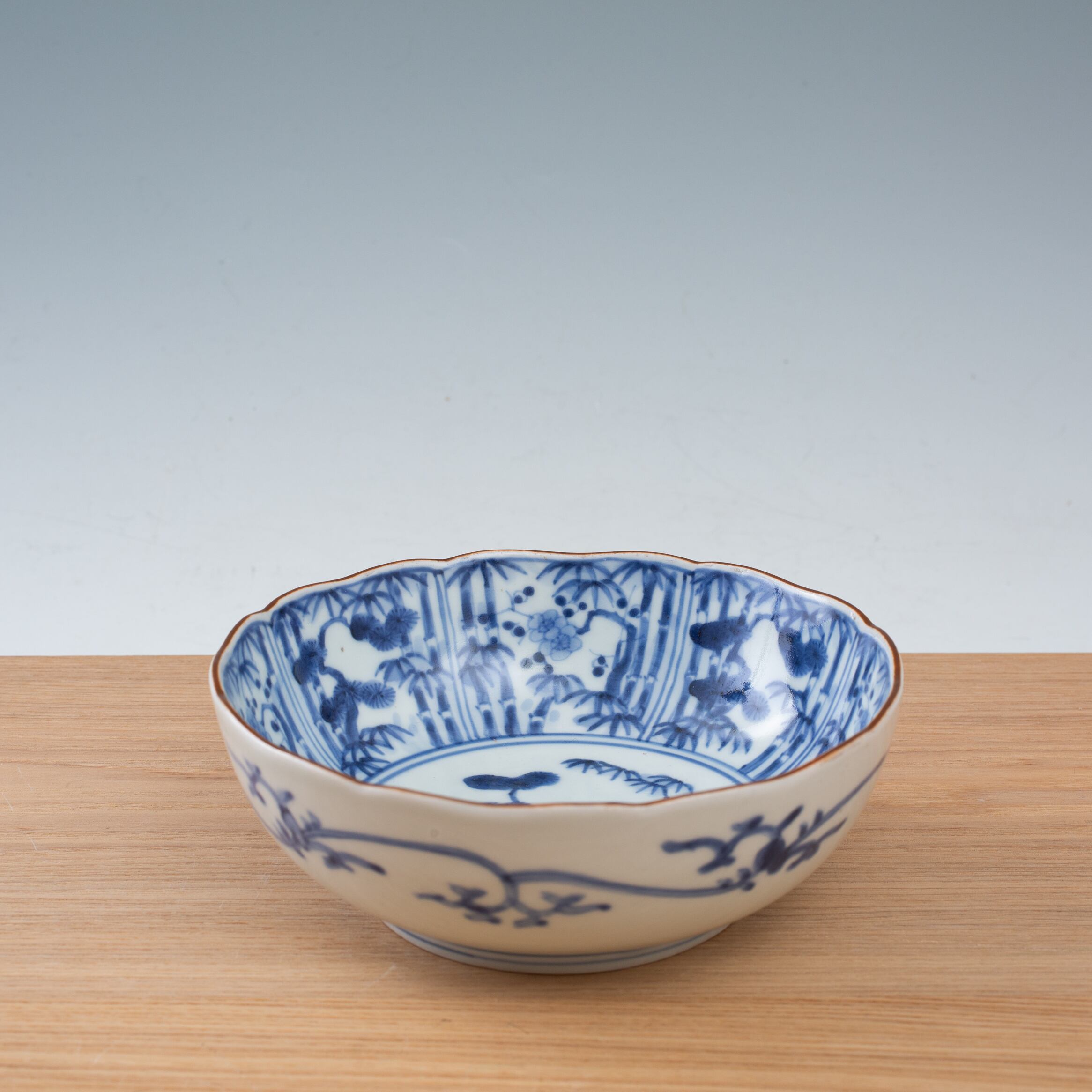 伊万里 古伊万里 染付 松竹梅文 膾皿 なます皿 輪花 二重角福 渦福 唐草 向付 深皿 映える器 日本古陶磁 江戸時代 和食器 和骨董 日本の美 日本古陶磁 暮らしの骨董 生活骨董 用の美 アンティーク コレクション【BC232】