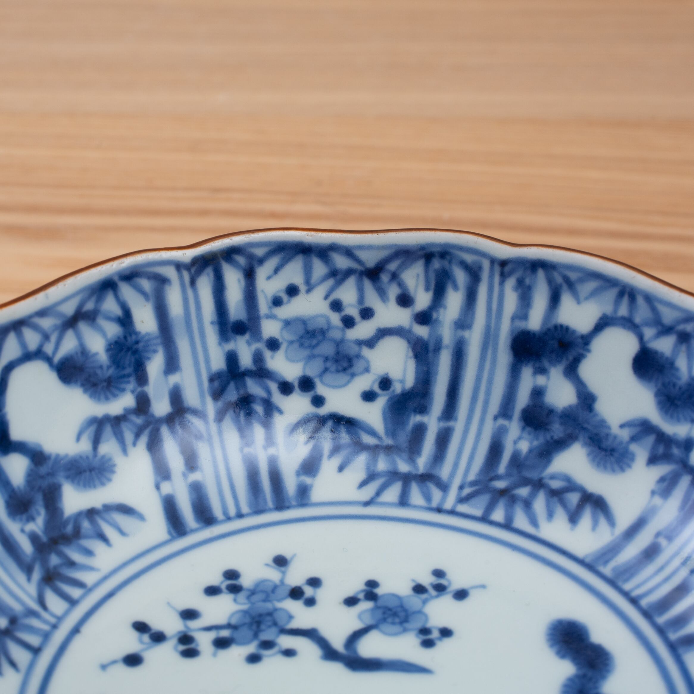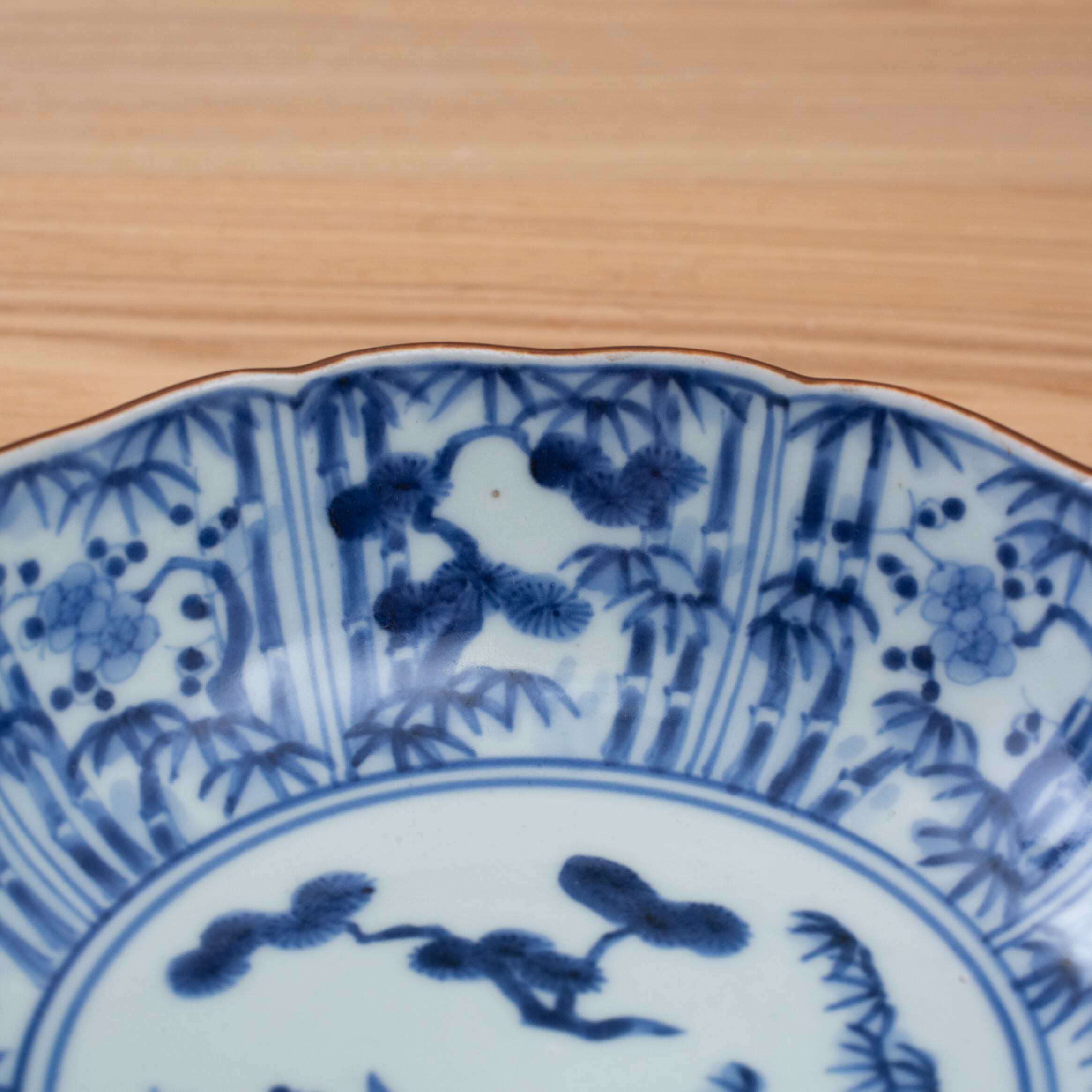 【スタッフから一言】縁が輪花、上品な松竹梅文です。