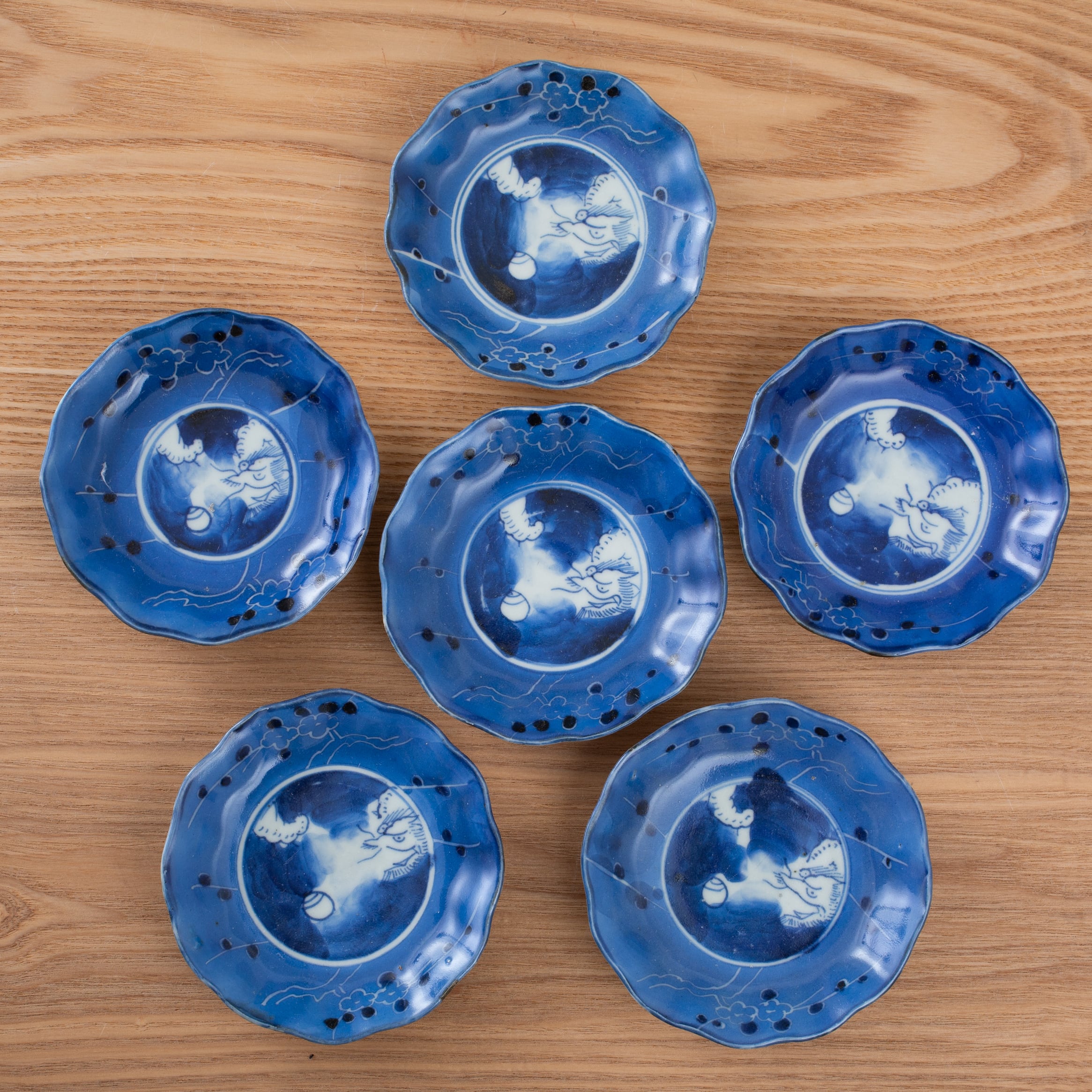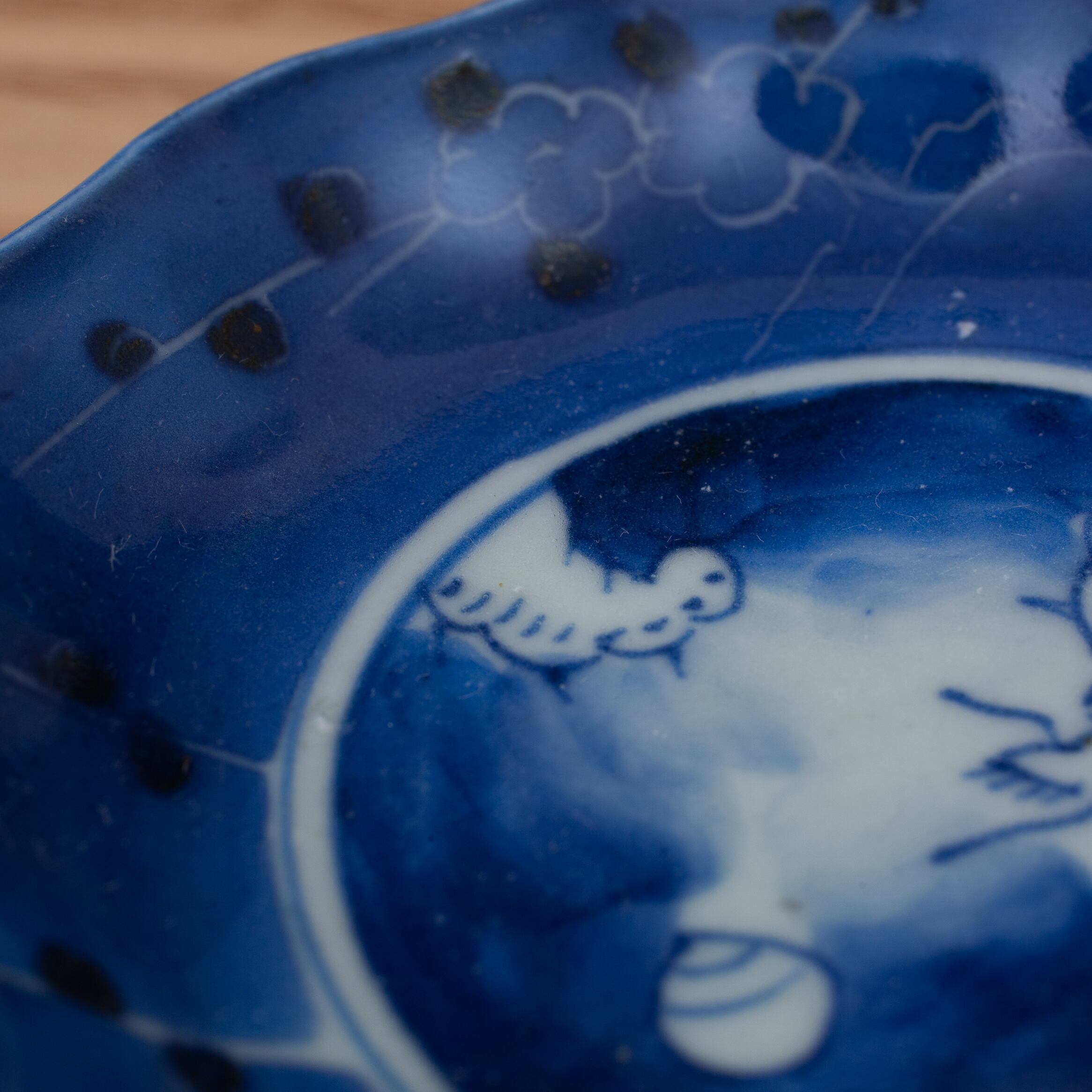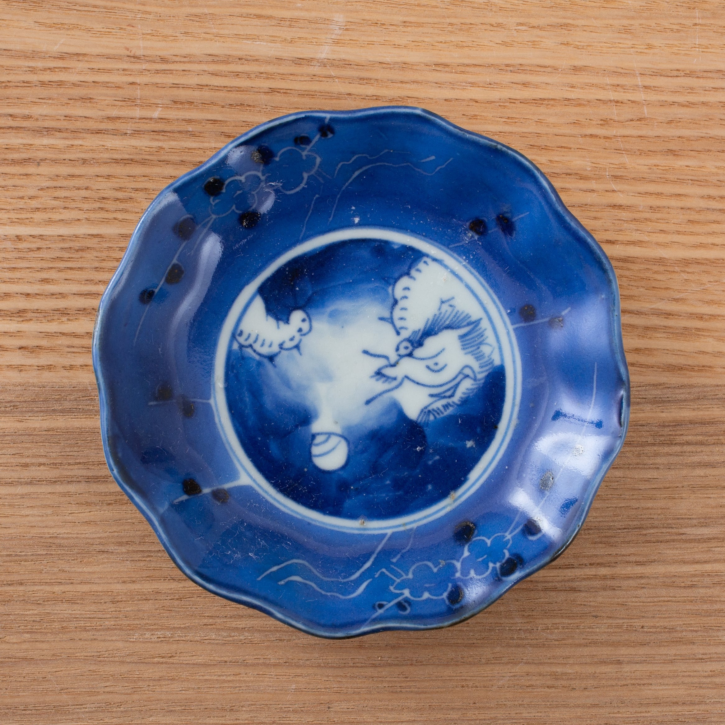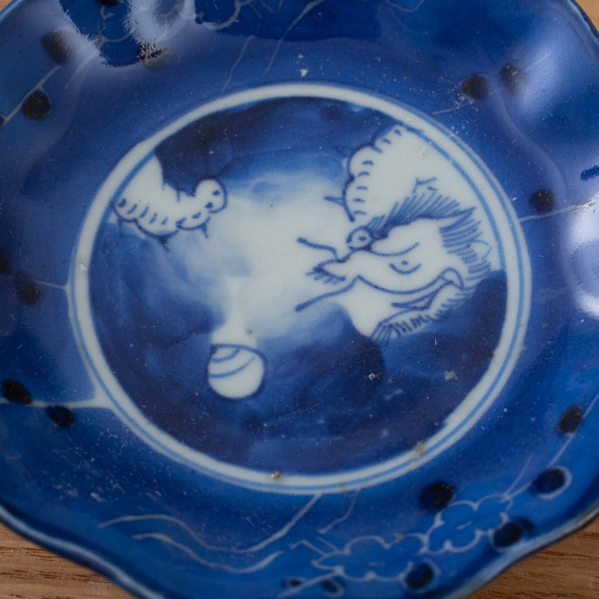 古伊万里 染付 墨はじき 墨弾き 白抜 龍 宝珠 梅 小皿 雨龍 槍梅 枝梅 吉祥文様 アンティーク 有田焼 伊万里焼 鍋島焼 手塩皿 醤油皿 珍味皿 日本古陶磁 生活骨董【BS53】