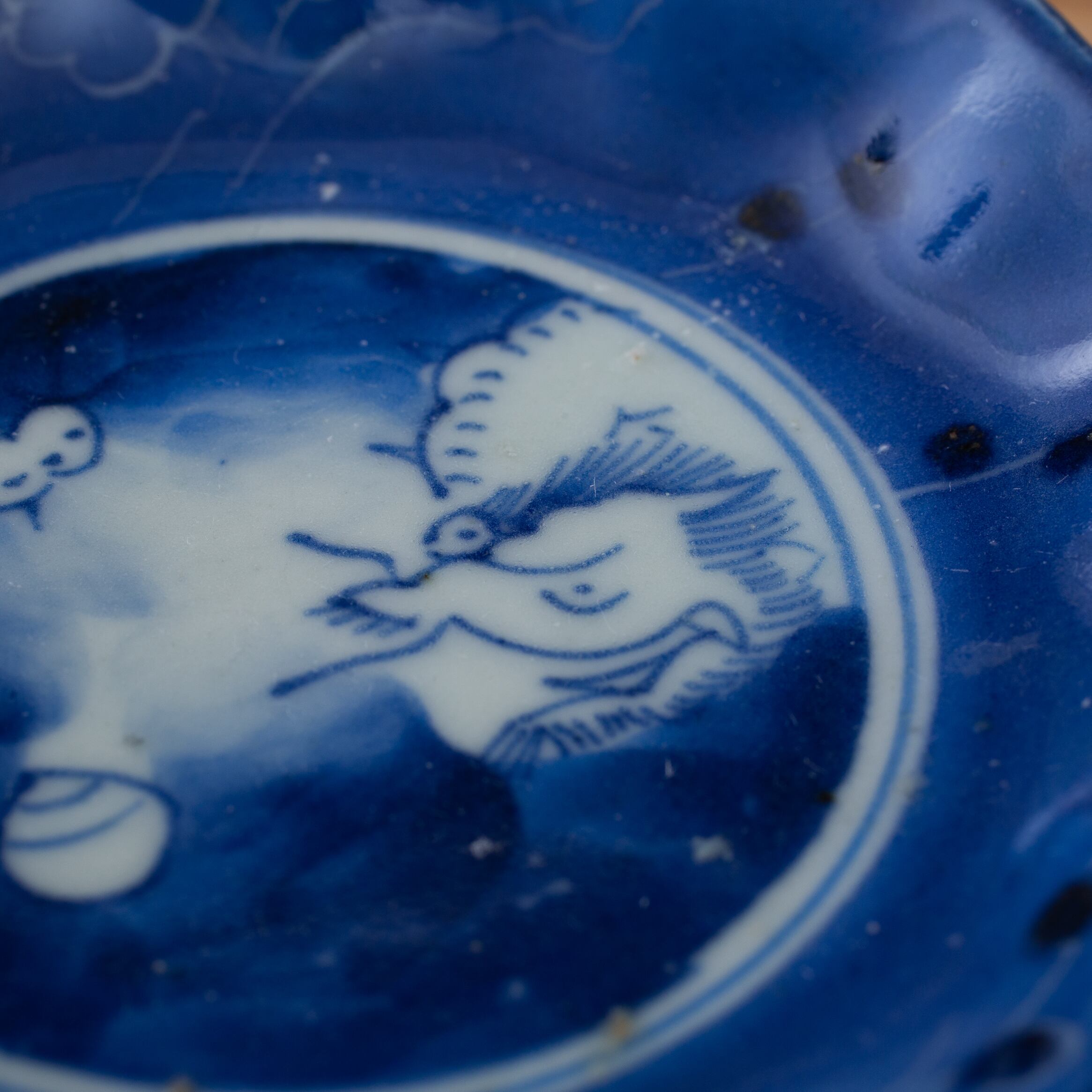 "三髭堂オンラインショップをご覧頂きまして誠にありがとうございます。こちらの商品は、古伊万里 染付 墨はじき 墨弾き 白抜 龍 宝珠 梅 小皿 雨龍 槍梅 枝梅 吉祥文様 アンティーク 有田焼 伊万里焼 鍋島焼 手塩皿 醤油皿 珍味皿 日本古陶磁 生活骨董【BS53】です。時代なりの汚れなどございますので画像にてご確認下さい。