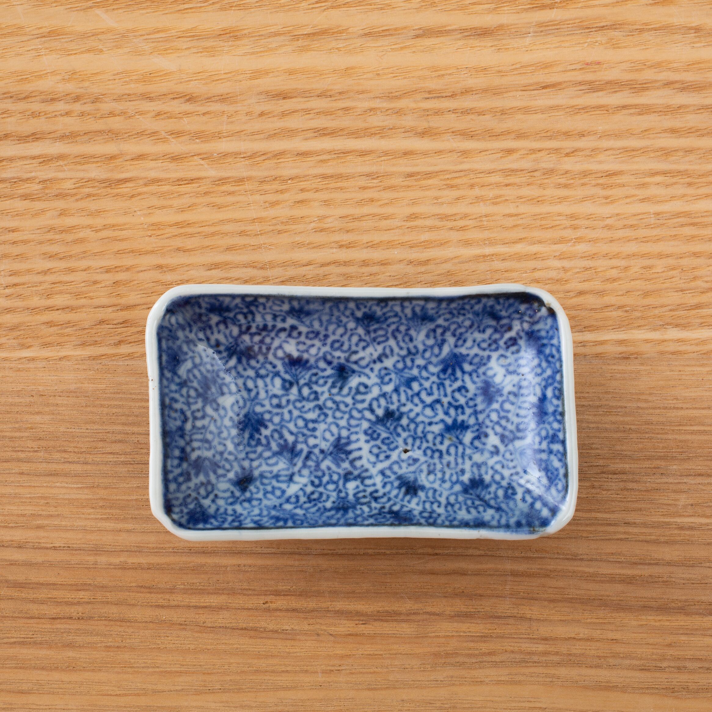 "三髭堂オンラインショップをご覧頂きまして誠にありがとうございます。こちらの商品は、古伊万里 染付 微塵唐草 みじん唐草 角皿 四角 小皿 豆皿 豆ざら まめ皿 成化年製銘 掌の骨董 江戸時代 映える器 日本古陶磁 暮らしの骨董 生活骨董 用の美 アンティーク コレクション 和骨董 伊万里 有田 和食器 【BS29】です。時代なりの汚れなどございますので画像にてご確認下さい。