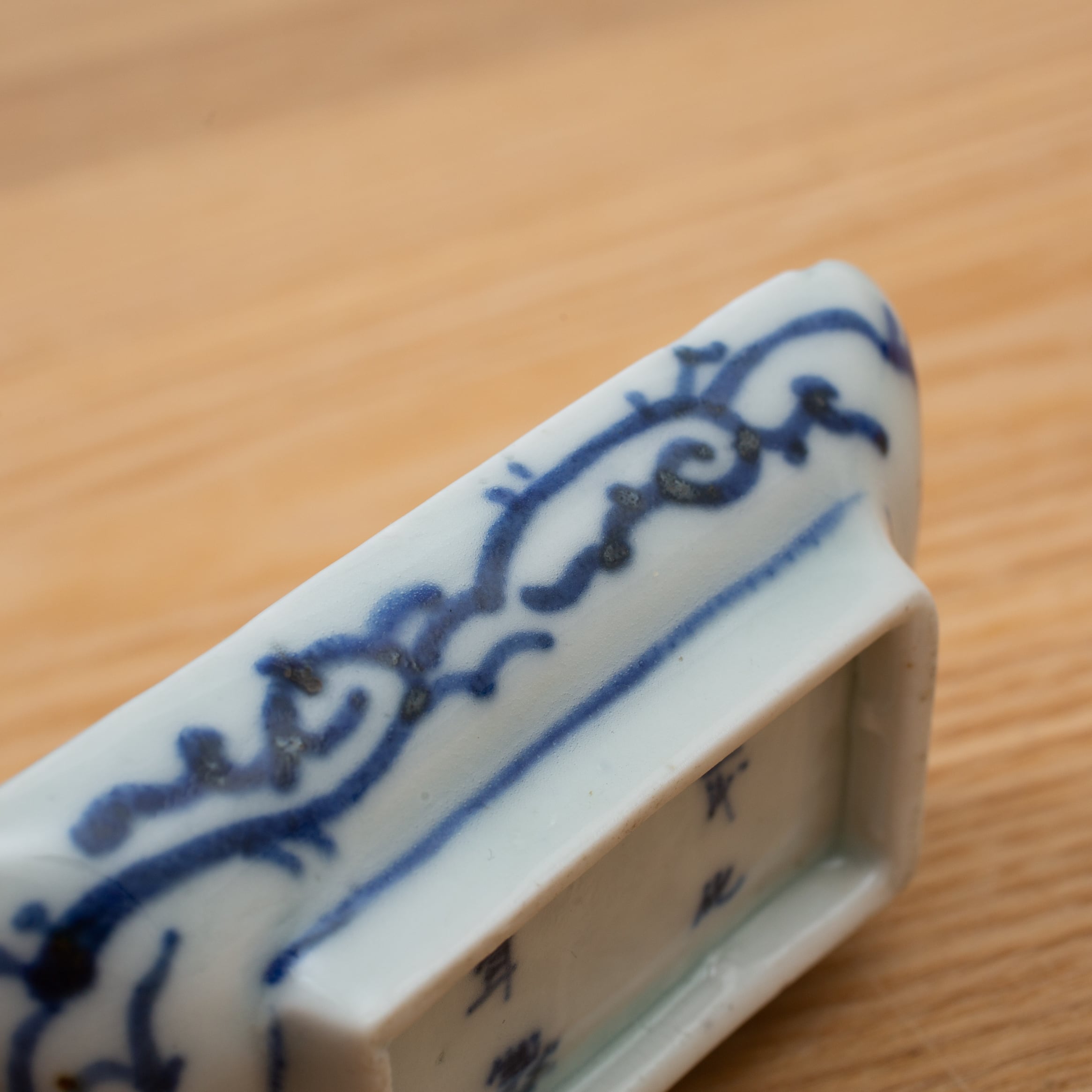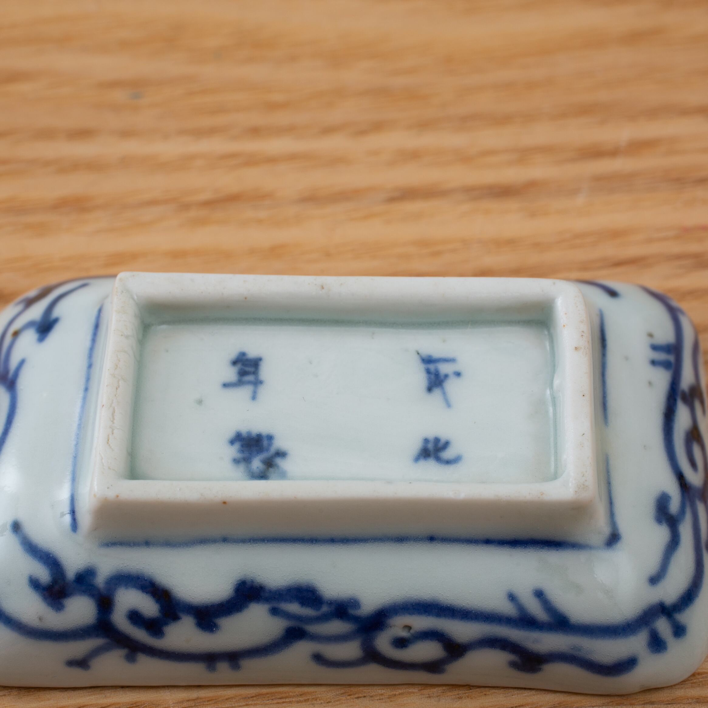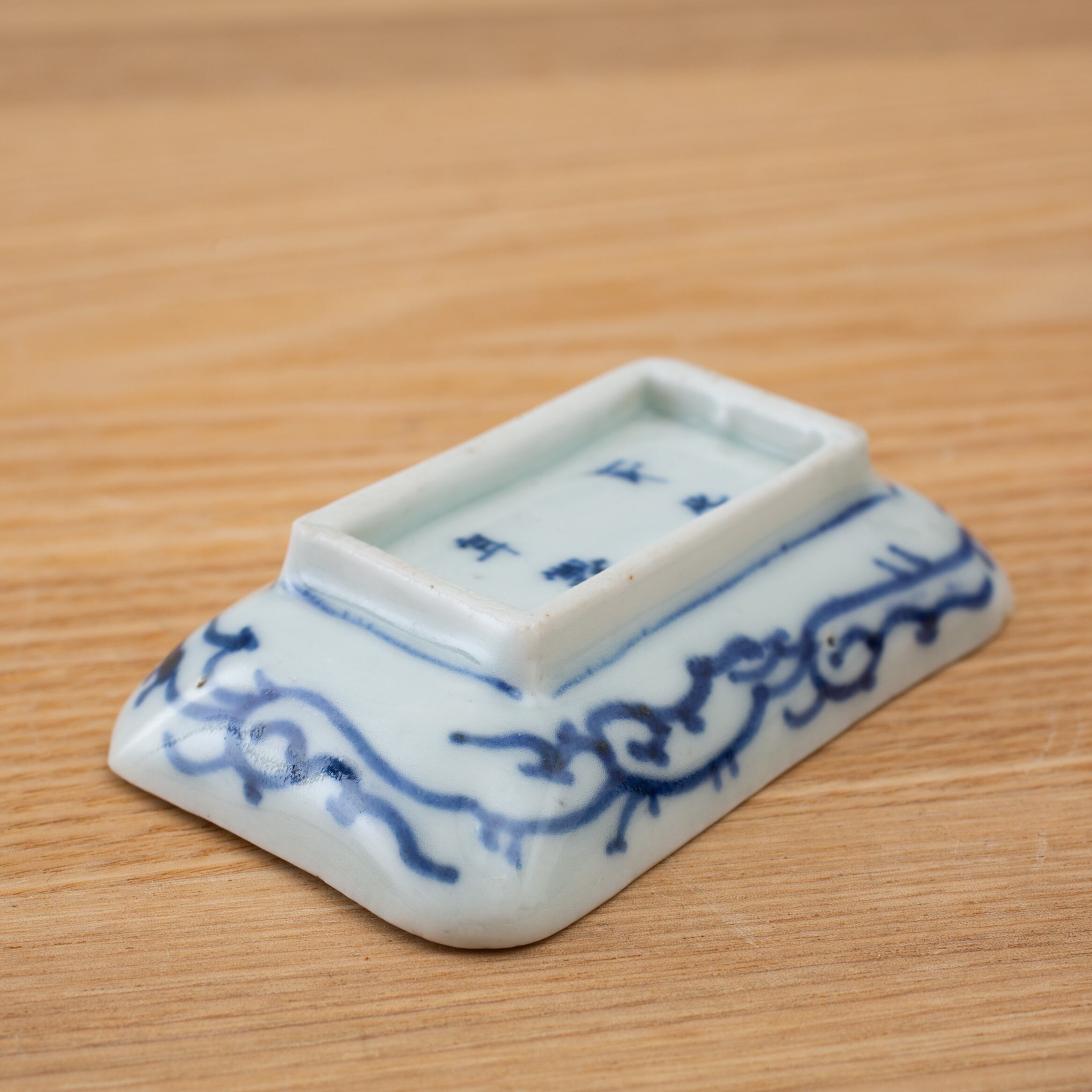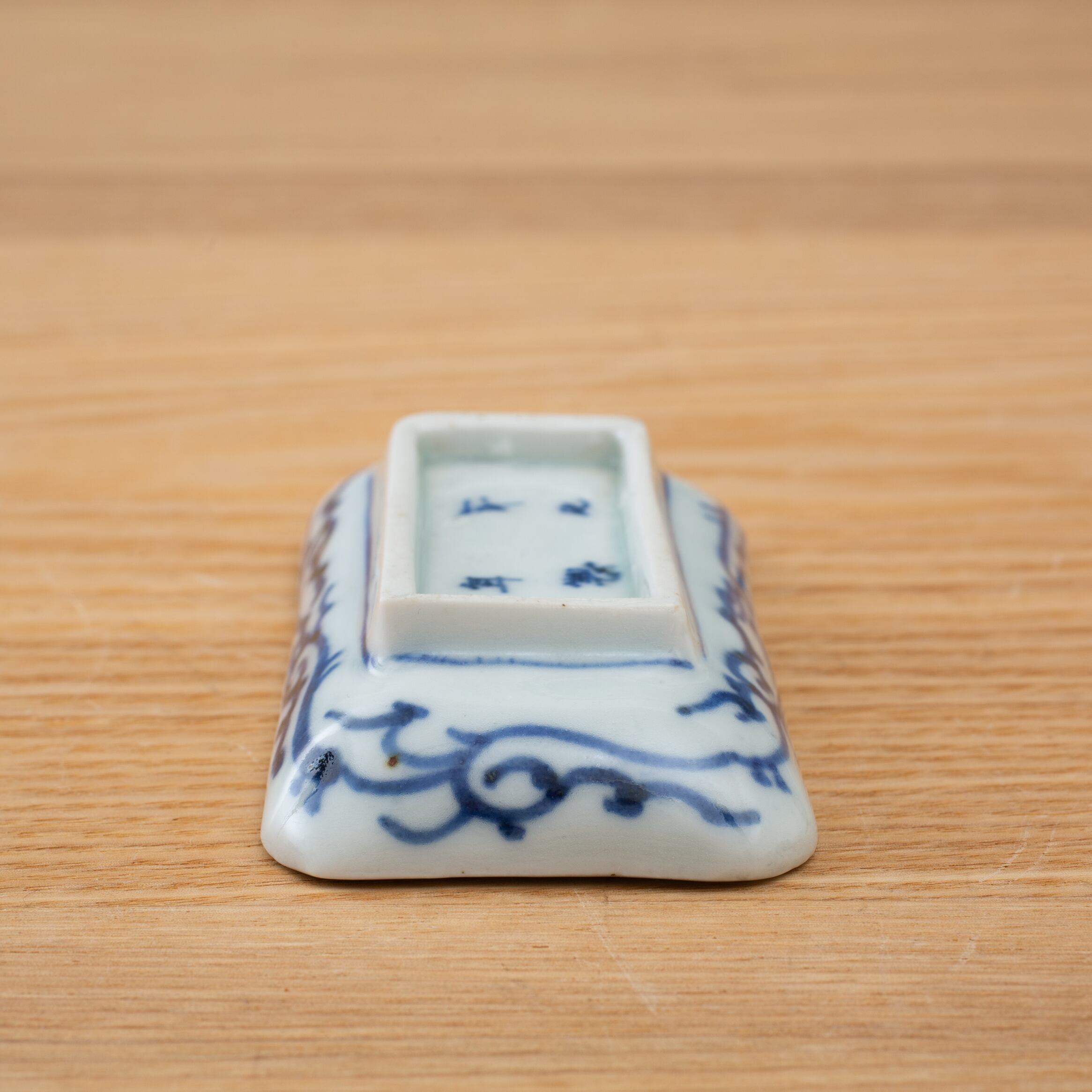 古伊万里 染付 微塵唐草 みじん唐草 角皿 四角 小皿 豆皿 豆ざら まめ皿 成化年製銘 掌の骨董 江戸時代 映える器 日本古陶磁 暮らしの骨董 生活骨董 用の美 アンティーク コレクション 和骨董 伊万里 有田 和食器 【BS29】