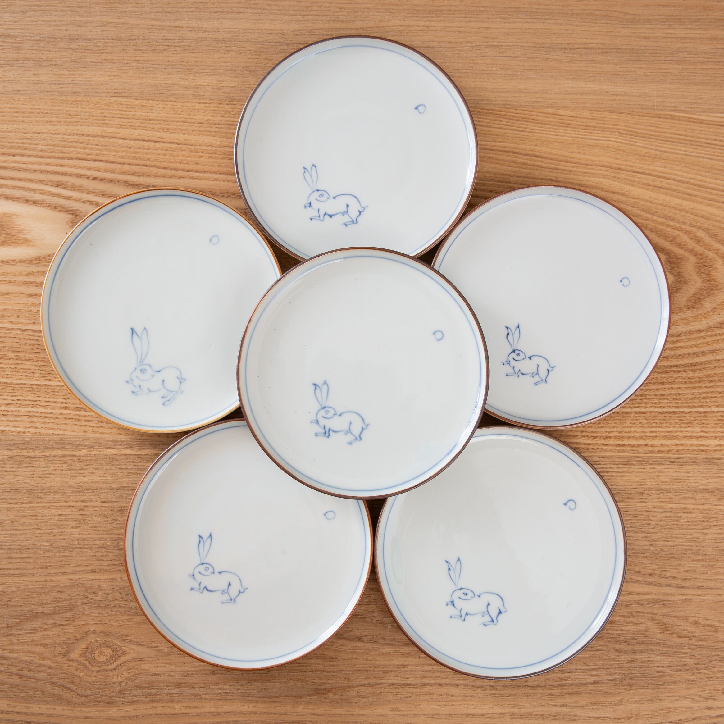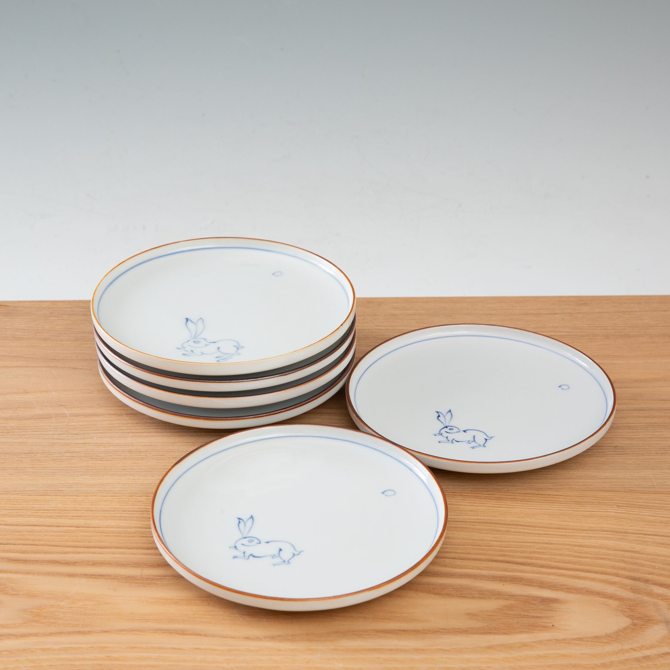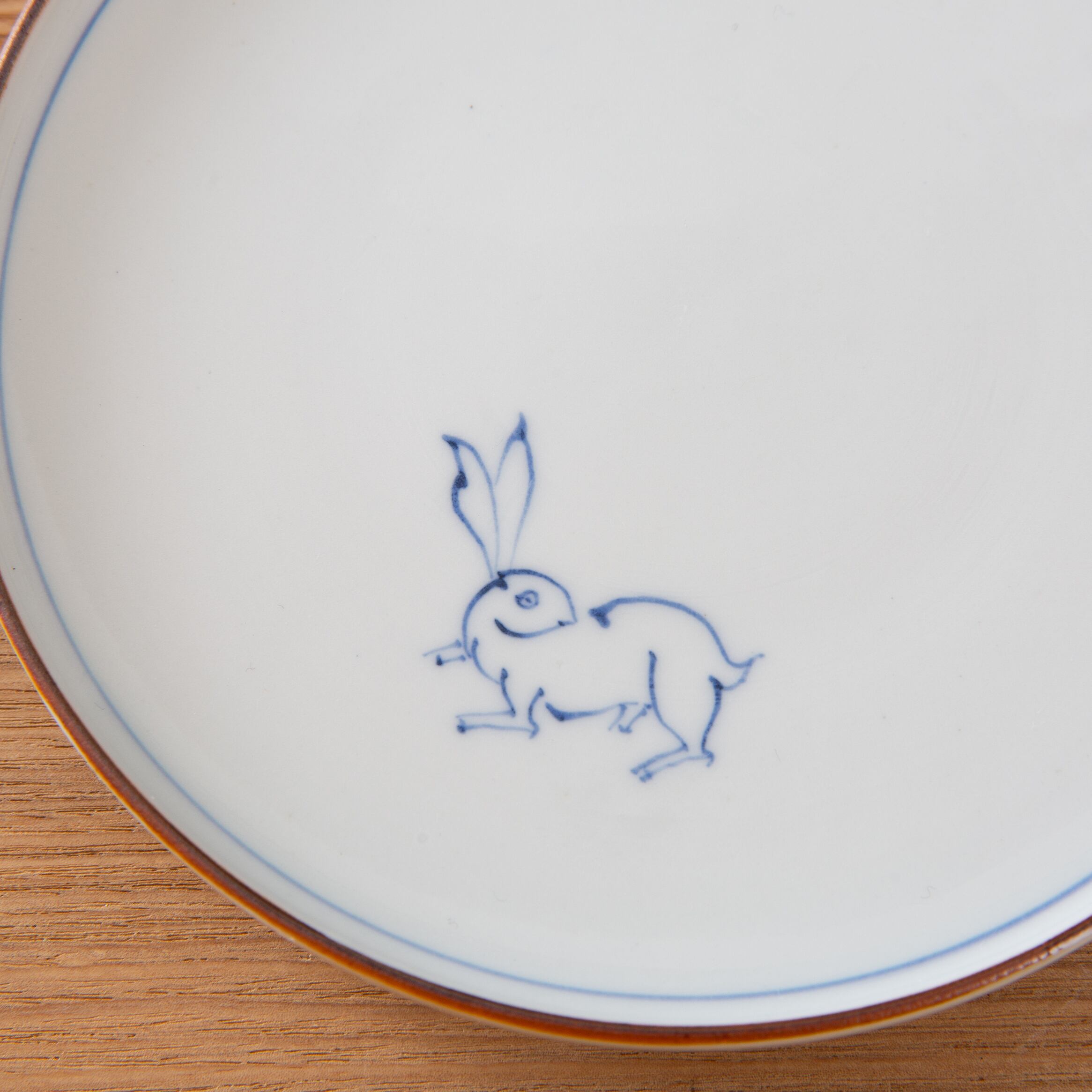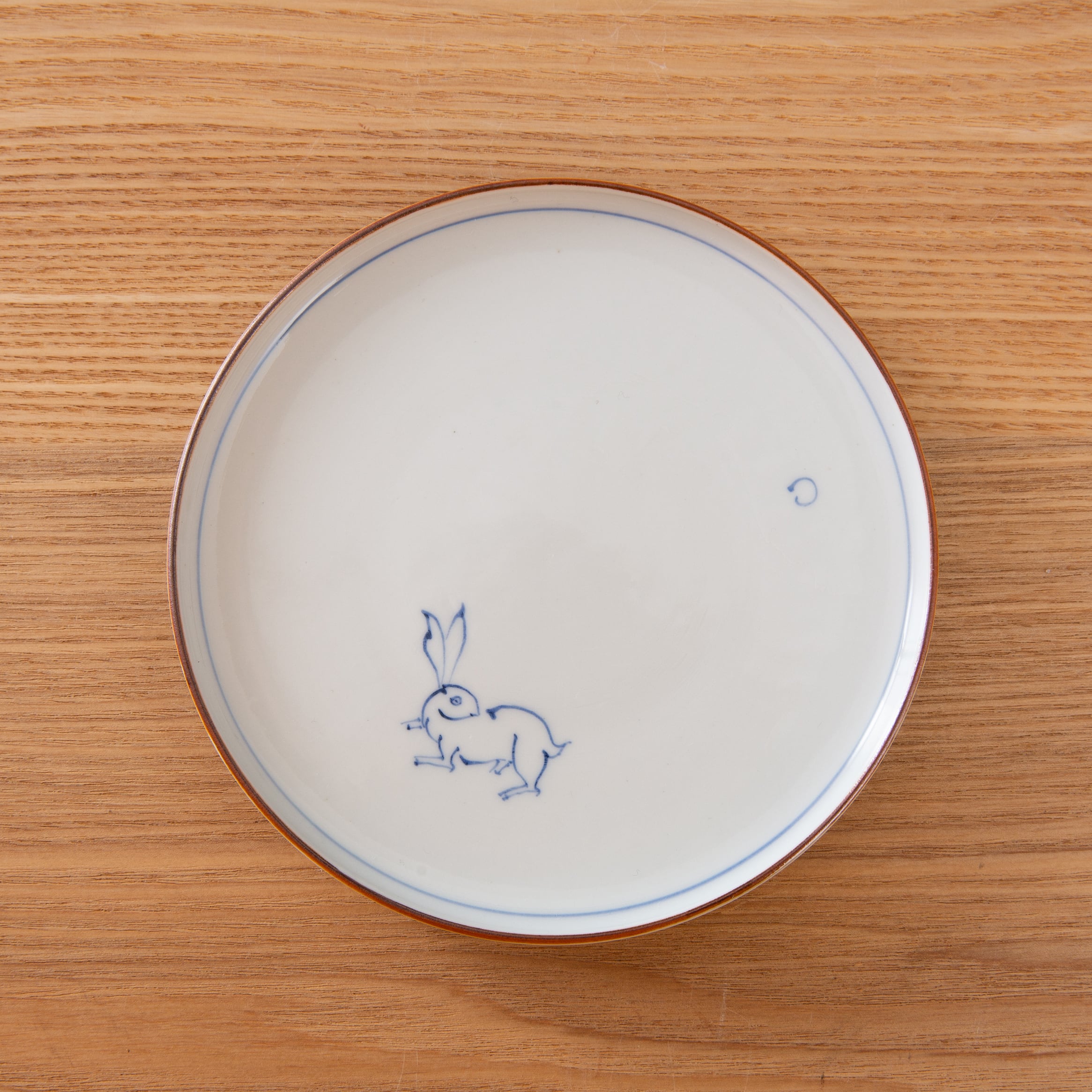 月に兎 染付 取り皿 手塩皿 日本陶磁 かわいいお皿 昭和レトロ 和骨董 伊万里写 京焼 初期伊万里写【BS58】