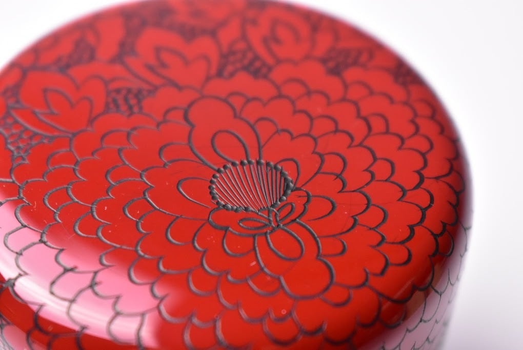 【状態】沈金の技法で丹念に作られた棗。美品です。牡丹は百花の王。季語としての牡丹は夏ですが、春牡丹・寒牡丹・冬牡丹など季節を問わず楽しめ、「牡丹の芽」が春の季語でるあるように、茶会のもてなしの趣向にあわせてお使いいただきたいです。状態もよくおすすめの一品。