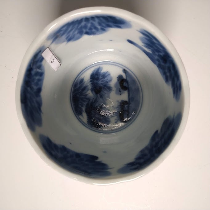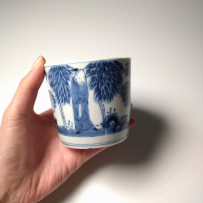 古伊万里 竹林の七賢図 染付 蕎麦猪口 そば猪口 見込みに竹林文 蛇の目高台 向付 日本骨董陶磁 おおぶり 酒器 ぐい呑 暮らしのなかの骨董 コーヒーにも 生活骨董 用の美 江戸時代【BE187】 | 3hige antique store | 京都・古門前の古美術店 | 三髭堂