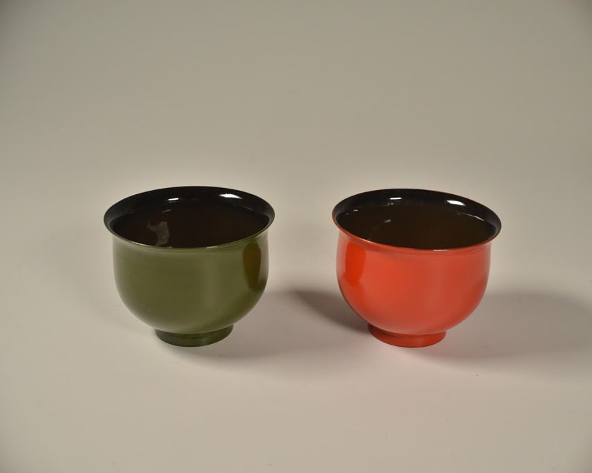 【OUTLET】塗小蓋椀 2客組 小さいお椀 赤と緑のセット ペア 漆器 漆 小吸物椀 お汁粉椀 漆器 漆 生活骨董 用の美 アンティーク 【BE191】 | 3hige antique store | 京都・古門前の古美術店 | 三髭堂